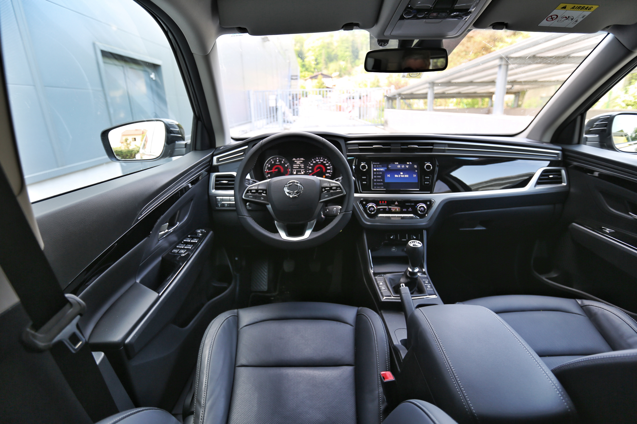 Malce robato oblikovana armaturna plošča je pregledna in sprejemljivo bogata z informacijami, sredinski (na dotik občutljiv) zaslon multimedijske naprave pa ponuja le nekaj osnovnih funkcij prek ne prav intuitivnega uporabniškega vmesnika. A po našem mnenju več štejejo dobra ergonomija, udobna prednja sedeža in udoben položaj za volanom. Tudi nad kakovostjo izdelave in vgrajenih materialov ne vihamo nosu; korando je solidno izdelan in sestavljen avto.