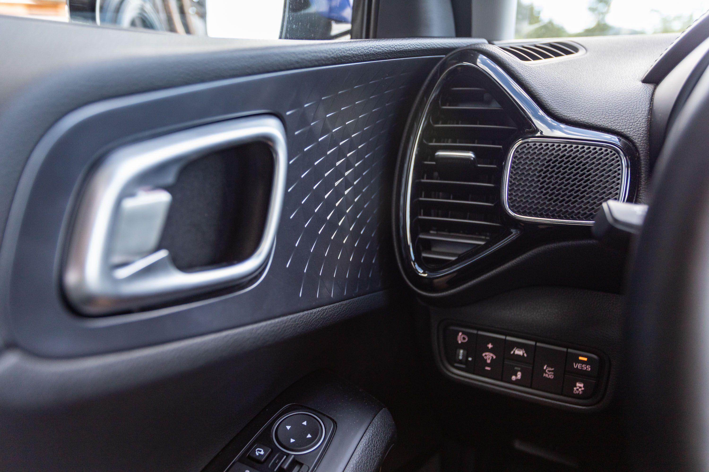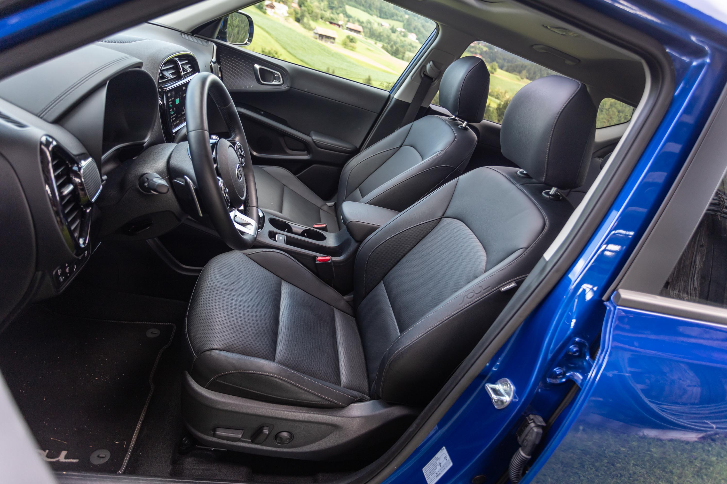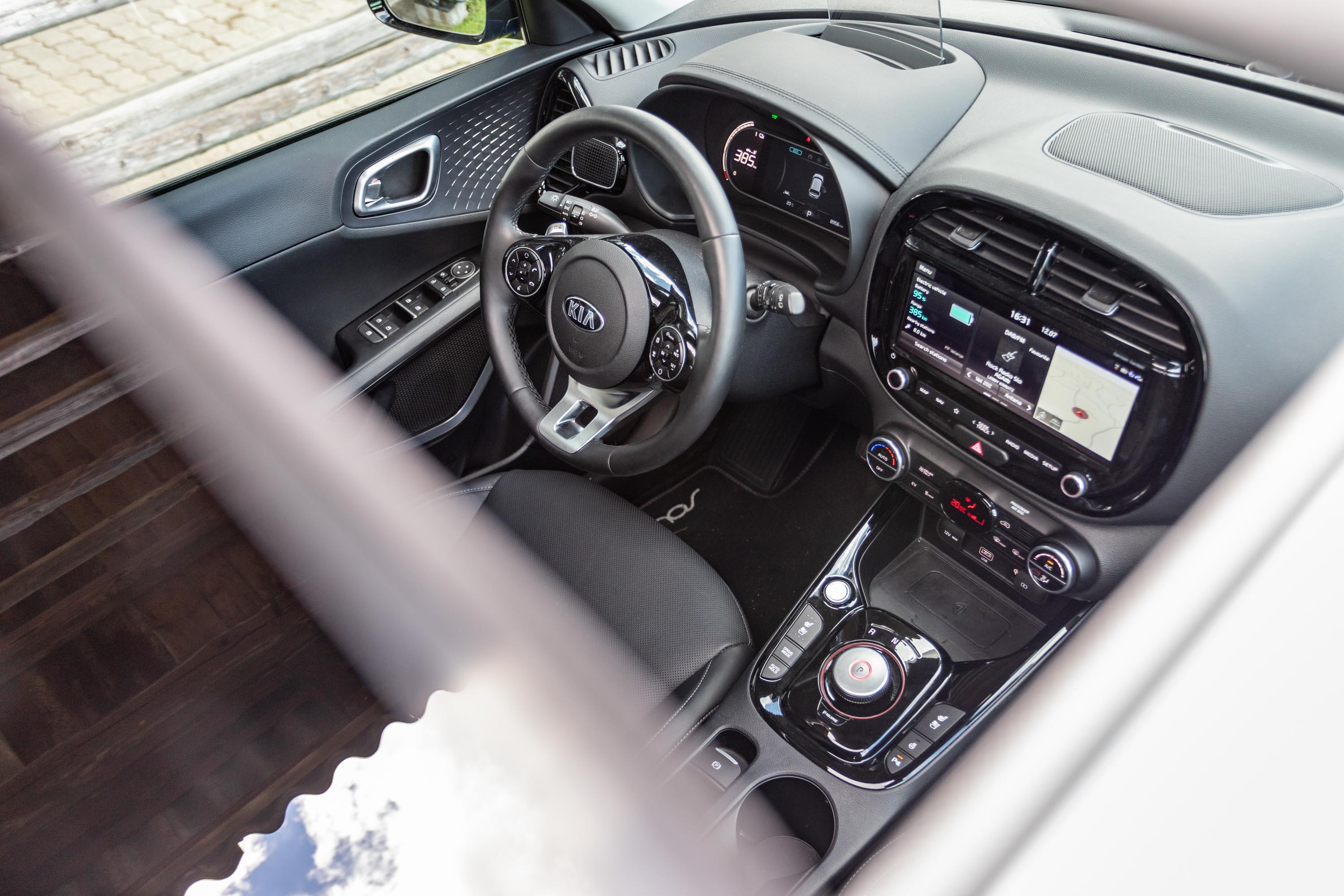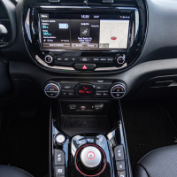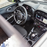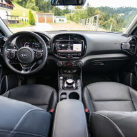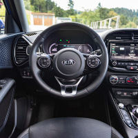 Notranjost električnega soula je sicer povsem nova, a deluje nekoliko starinsko; zaobljen nadstrešek armaturne plošče in zaobljeno ohišje osrednjega zaslona na dotik v kombinaciji s črno lakirano plastiko pomeni odmik od minimalističnih oblikovalskih trendov soulovih tekmecev. Se pa v soulu sedi udobno, zaradi malce višje nasajenih sedežev je tudi vidljivost iz avta dobra.