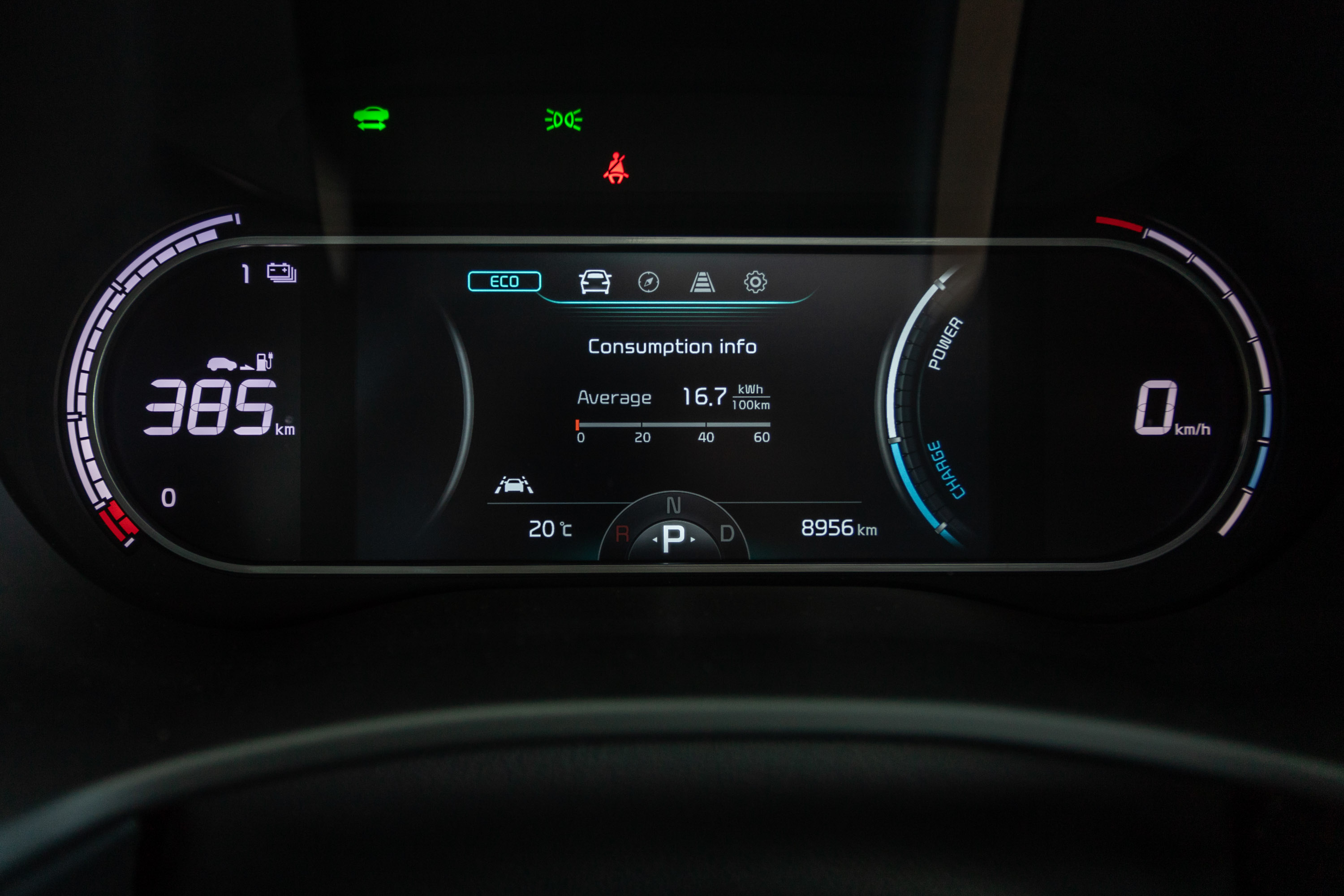 | Zmogljivosti in doseg: | največja hitrost: 167 km/h, pospešek od 0 do 100 km/h: 7,9 s, normna kombinirana poraba energije: 15,7 kWh/100 km, normni največji doseg: 452 km, poraba energije na testu: 16,7 kWh /100 km, povprečni doseg na testu: 380 km. |