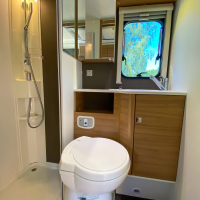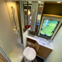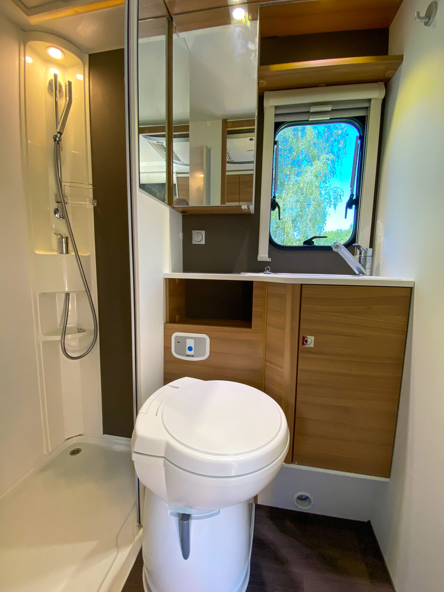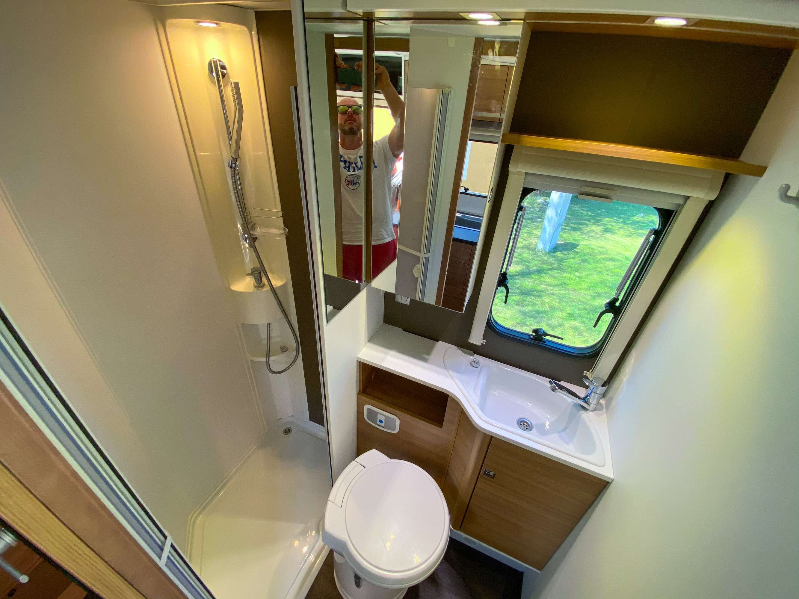 Veliko pohvalo si zasluži razpored bivalnega dela, v katerem lahko prespi celo 7 oseb. Na voljo je velika prostorna jedilnica z dvema mizama. Kuhinja sicer nima pečice, ima pa obilico predalov, štedilnik s tremi kuhališči in veliko uporabnih površin. Zlasti v času epidemije je velika prednost uporabna kopalnica z ločeno tuš kabino in učinkovito plinsko pečjo z grelnikom tople vode, ki štiričlanski družini brez težav zagotovi toplo prho. Ob 142-litrskem hladilniku, 100-litrski zalogi čiste vode, 85-litrski posodi za prestrezanje umazane vode, razsvetljavi v varčni LED tehniki in dvema jeklenkama plina coral na poti ponuja veliko svobode, saj je treba zaviti v kamp z ustrezno infrastrukturo za praznjenje stranišča in oskrbo z vodo le vsak tretji dan.