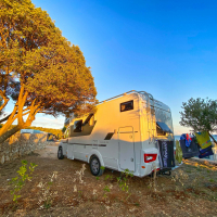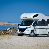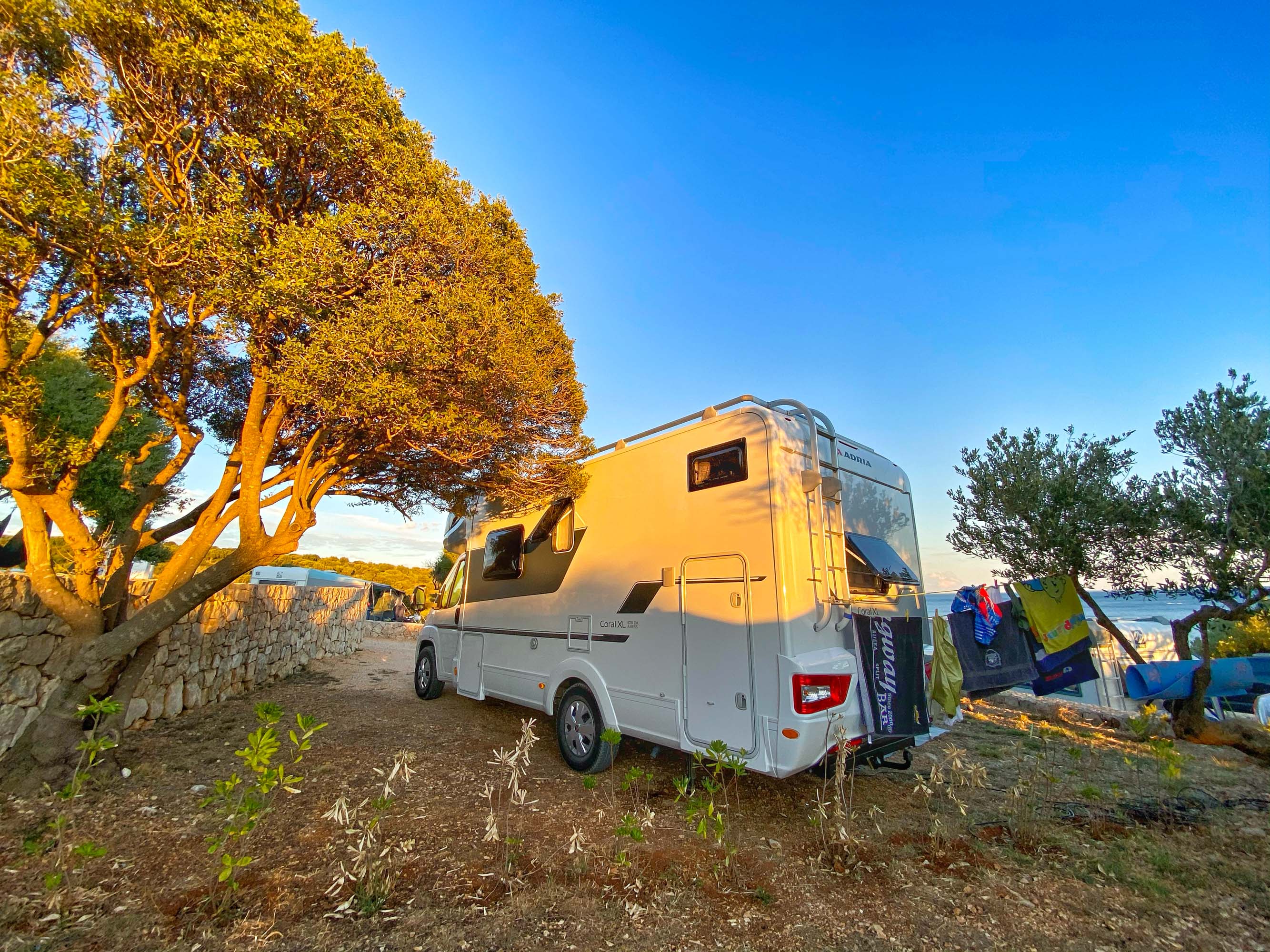 Kljub temu, da smo na strehi imeli klimatsko napravo bivalnega dela, ki deluje, ko je avtodom pripet na električno omrežje, je sredi julija ob jadranski obali nismo uporabljali. Malo zaradi tega, ker menimo, da mora biti kampiranje z okoljskega vidika energetsko veliko bolj prijazno kot počitnikovanje v hotelu, predvsem pa zaradi učinkovitega zračenja številnih oken na stenah in strehi corala. Vsaka postelja ima svoje okno in če v kampu parkirate v senco drevesnih, dobro zračen avtodom zagotavlja odlično naravno mikroklimo s kroženjem zraka. Malce maestrala na parceli s pogledom na morje ugodje le še poveča. Vsa okna in tudi 60 cm široka vhodna vrata imajo nameščene komarnike. Ob invaziji os ter drugih eskadriljah insektov smo se predvsem za kosilo ali malico nemalokrat izpod tende preselili za mizo v zračno dnevno sobo. Pogrešali smo le strešno okno v mansardnem ležišču, kjer za prezračevanje skrbita dve manjši bočni okni. Okno spodnjega ležišča pograda v zadnjem delu tudi odlično nadomešča vzvratno kamero, poleg tega pa pri vožnji vozniku omogoča uporabo notranjega vzvratnega ogledala, kar je velika prednost. Le zaveso je treba odstreti!