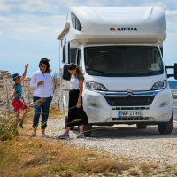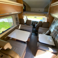 Predvsem pri naših zahodnih sosedih Italijanih, pa tudi v Skandinaviji je ta oblika bivalna nadgradnje še vedno zelo priljubljena izbira med družinami, ki prosti čas rade preživljajo v hišah na kolesih. Zlasti, če družina tudi med počitnicami potuje na velike razdalje, so štiri vedno pripravljene ločene postelje in velika dineta prednost, ker lahko potniki takoj, ko ugasne motor, ležejo k počitku ali pa na postankih, denimo na vetrovni palubi trajekta, udobno zadremajo. Velik jedilni kot z visokim stropom je tudi zelo priročen prostor, kadar je zunaj veter, slabo vreme ali mraz. Takrat bo cela družina v taki dnevni sobi brez težav kartala ali igrala družabne igre. Vsak se bo lahko s knjigo ali elektronsko napravo v roki lahko umaknil v “kajuto svojega ležišča”, zagrnil zaveso in užival svoj mir. Glede na družinsko vlogo smo bili znova malce razočarani, ker je za sedež z isofix sidriščem treba pripraviti dodatne evre. Le za doplačilo je na voljo tudi dodatni varnostni pas oziroma sedež prilagojen sedmemu potniku. Veseli pa dejstvo, da kolikor je na voljo postelj, toliko je - sicer za doplačilo - na voljo tudi varnostnih pasov za varno vožnjo. Nadzorna plošča nad vhodnimi vrati z zaslonom na dotik omogoča enostavno upravljanje bivalnega dela s podatki o razpoložljivi energiji hišnega akumulatorja in zalogi vode.