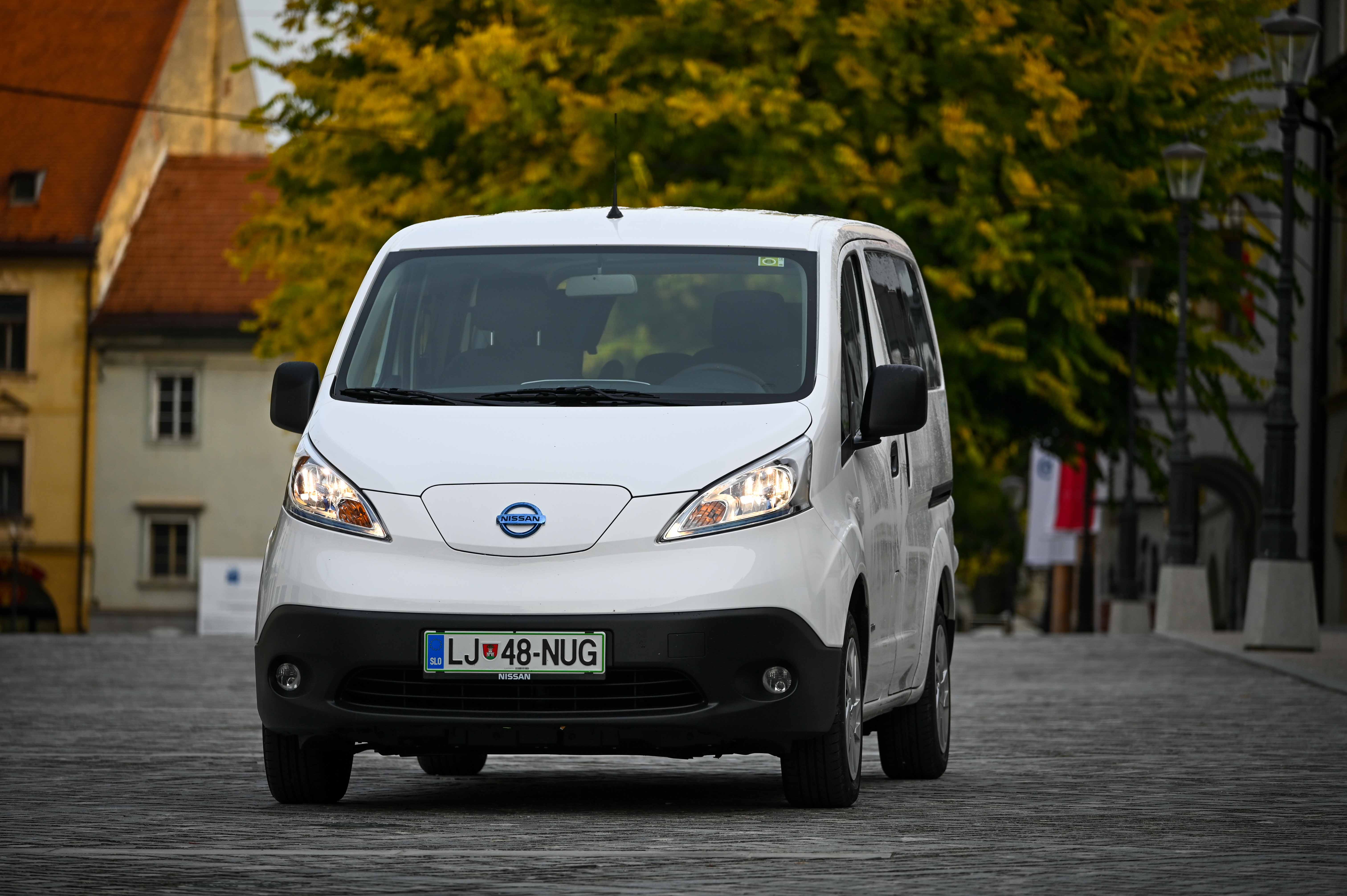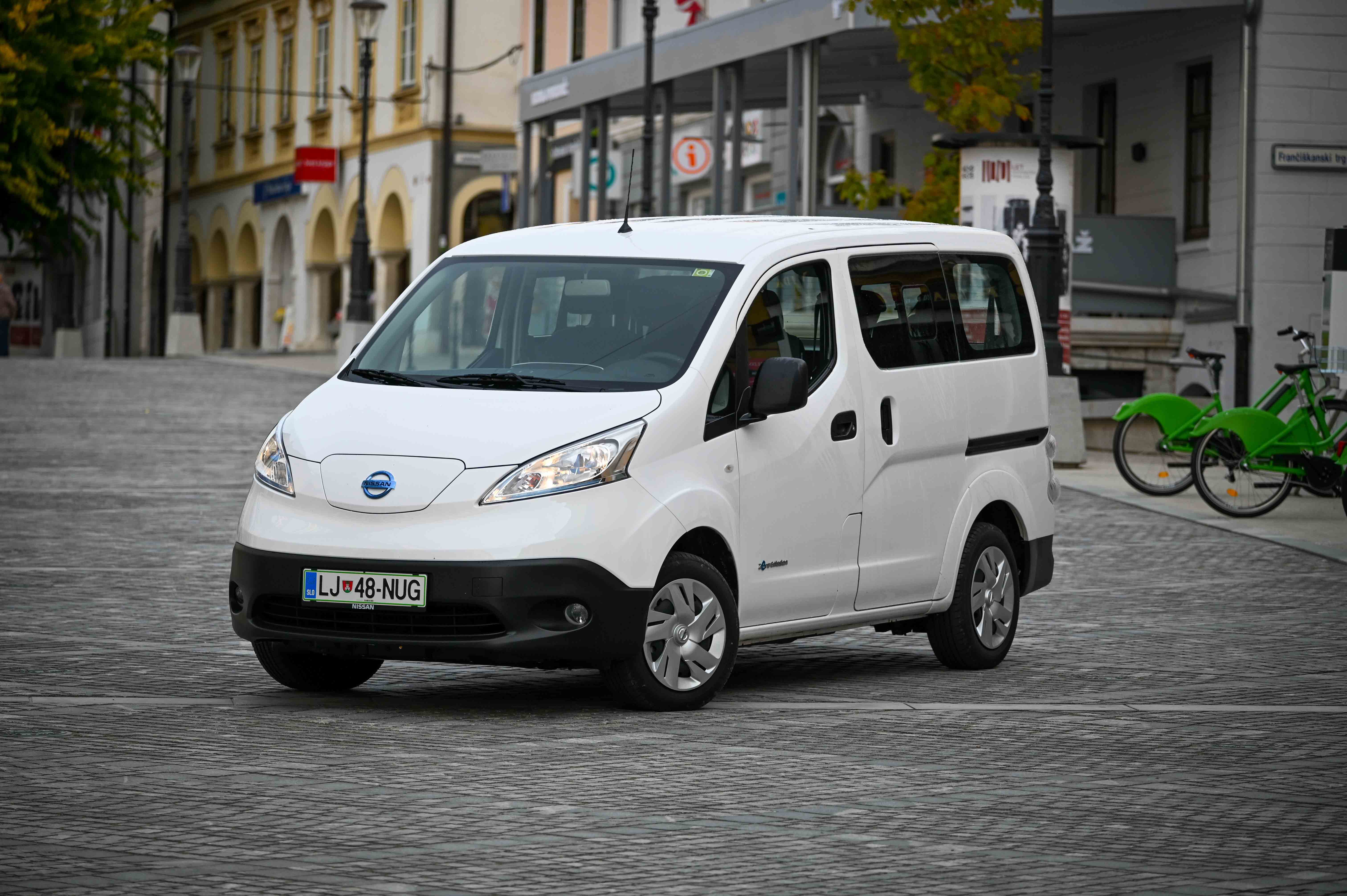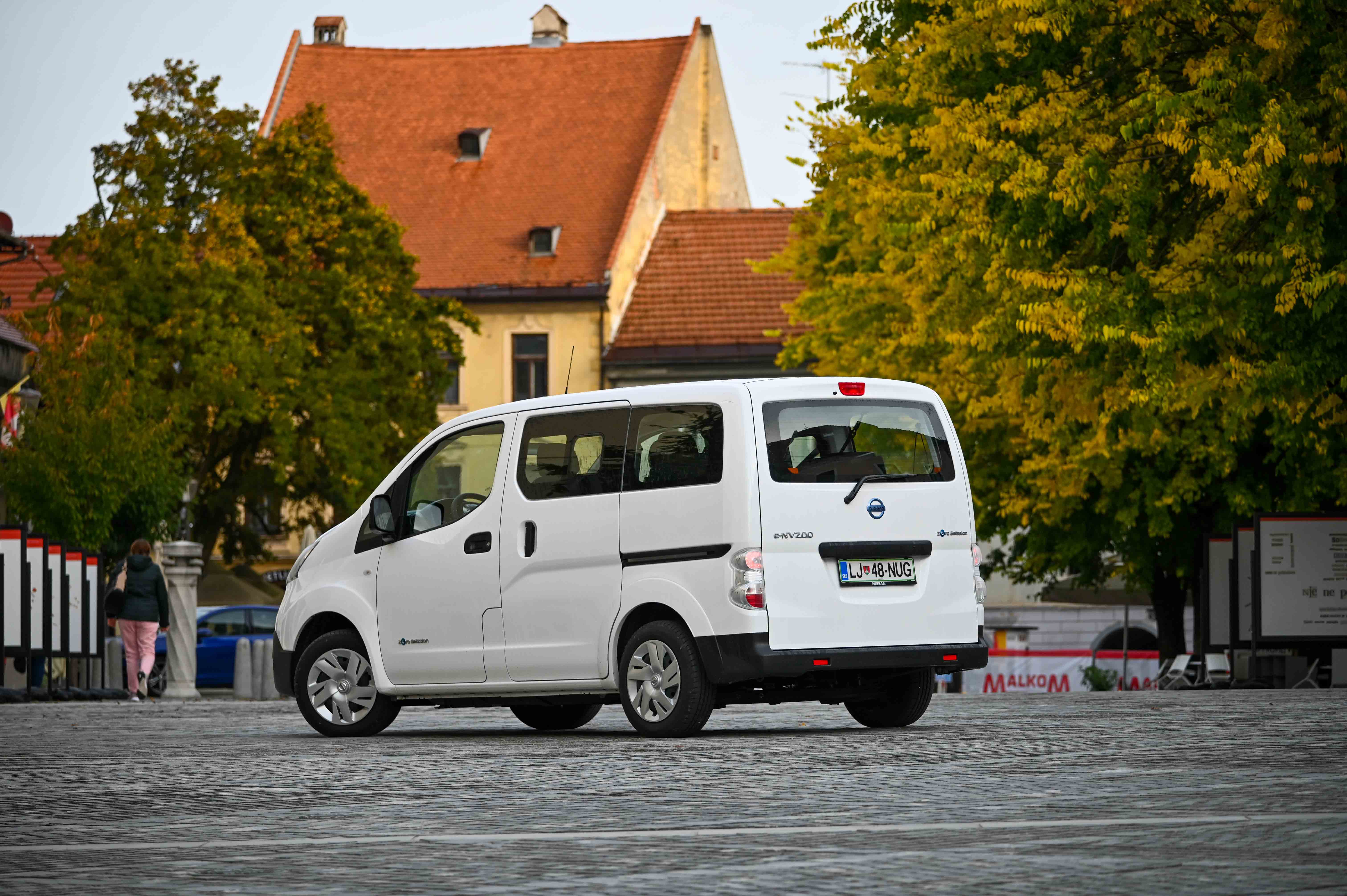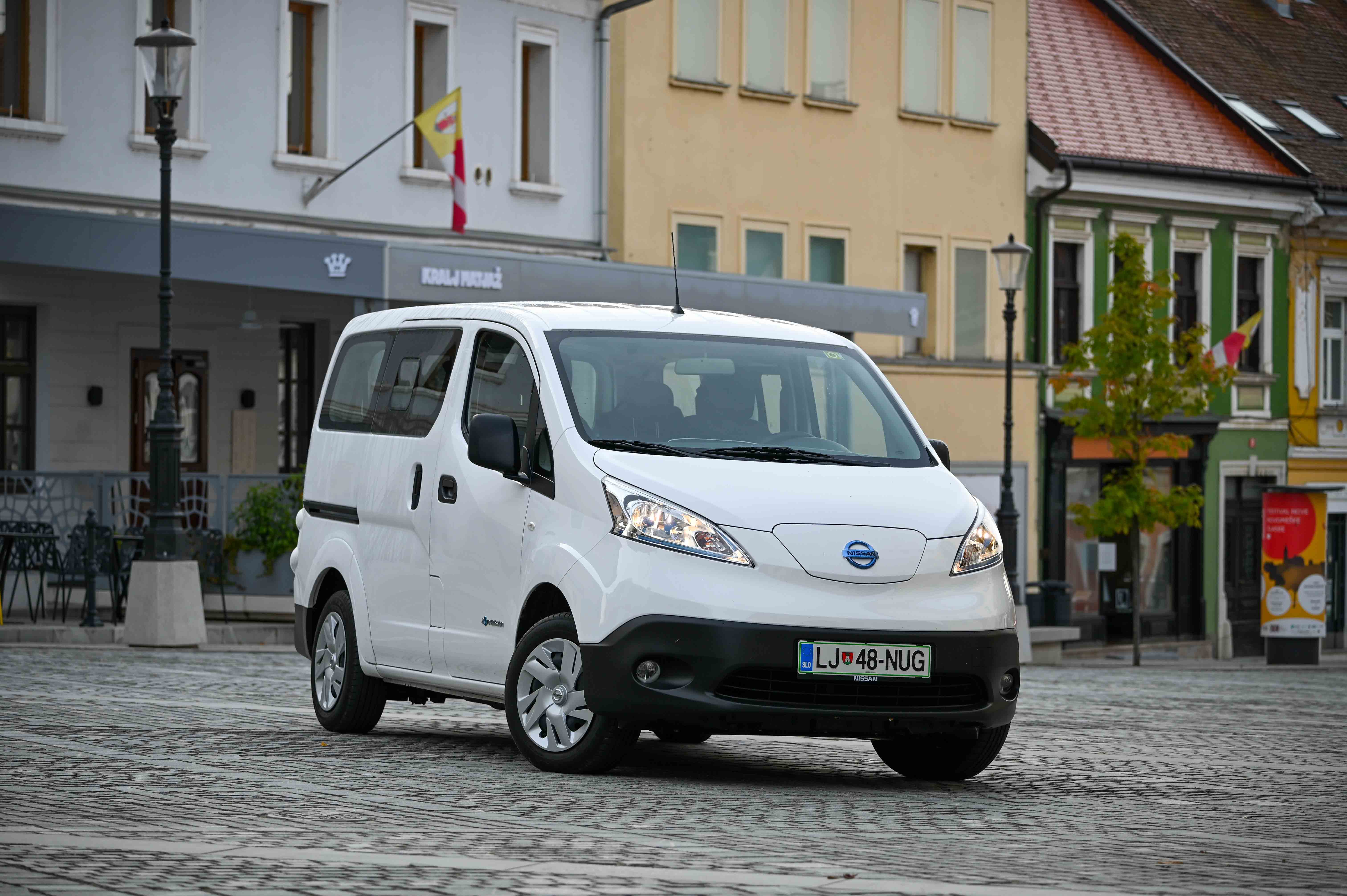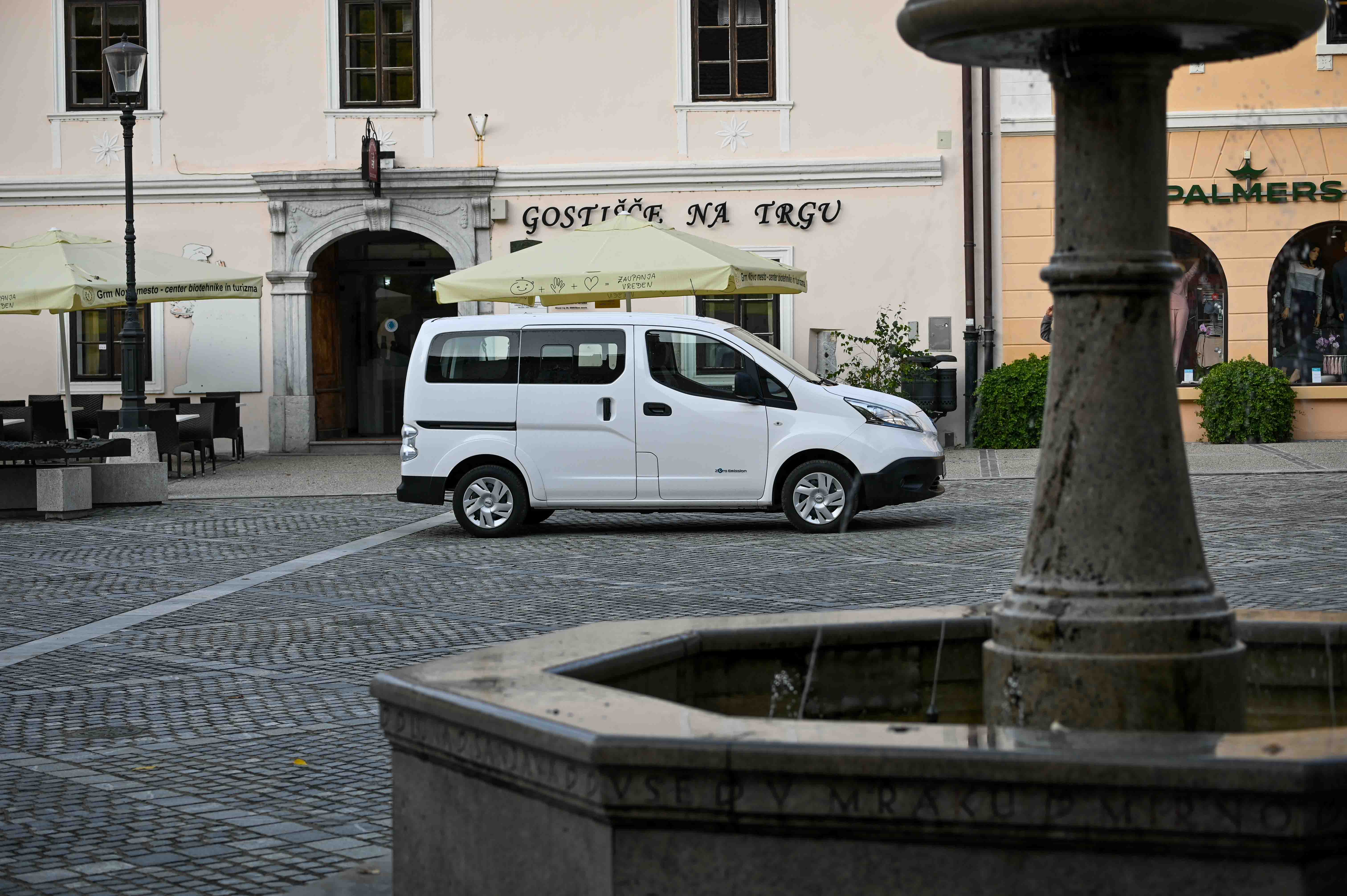 Nissan e-NV 200 že na videz ne spada v razredno povprečje - je ozek in visok, kar evropske oči vidijo kot oblikovno neskladje. A e-NV 200 v resnici odlikuje usklajeno razmerje med prostornostjo, prilagodljivostjo in vozniško okretnostjo. Na strmih in ozkih ulicah novomeškega Brega, starega jedra nad Krko, smo v zgodnjem jutru preverili, kako učinkovit je kot taksi ali kot dostavnik. Tiho in lahkotno je drsel po zelo ozkih ulicah z ostrimi zavoji. Je odlično pregleden in za sklenjen obračalni krog od robnika do robnika rabi le 10,6 metra. Električni kombiji bodo slej kot prej tudi pri nas v strnjenih mestnih središčih dobili svoj življenjski prostor. V kabino se vstopa udobno. Prostoren prtljažnik (870 l) ob petih sedežih z nizko postavljenim pragom, ki je le dobrega pol metra nad tlemi, brez težav pospravi tudi velike kovčke ali nahrbtnike. Za drugo presenečenje poskrbi podvozje: avto je vozniško zelo prijeten, blaženje odlično prestreza udarce s ceste in jih tudi zvočno dobro zaduši.