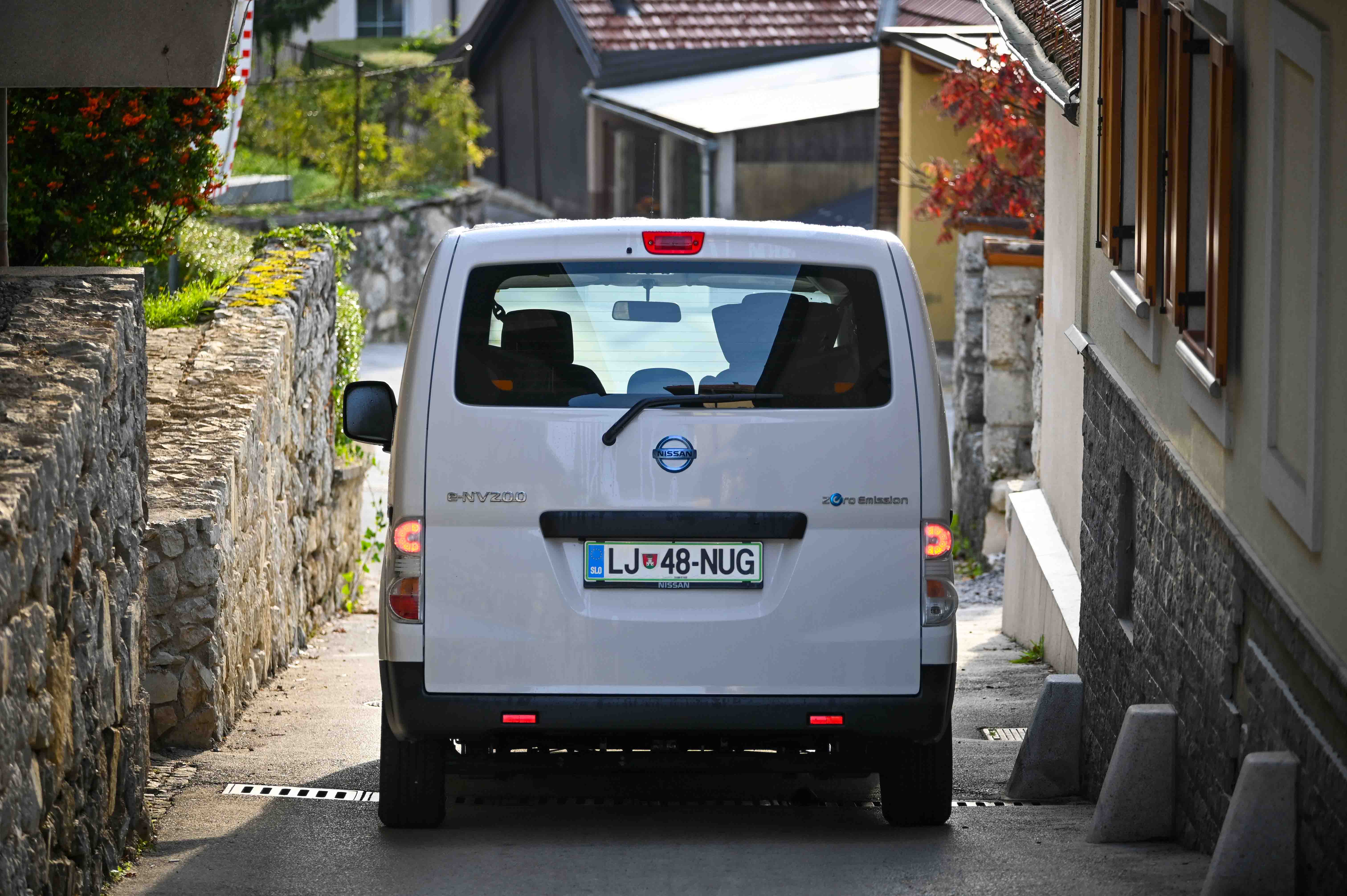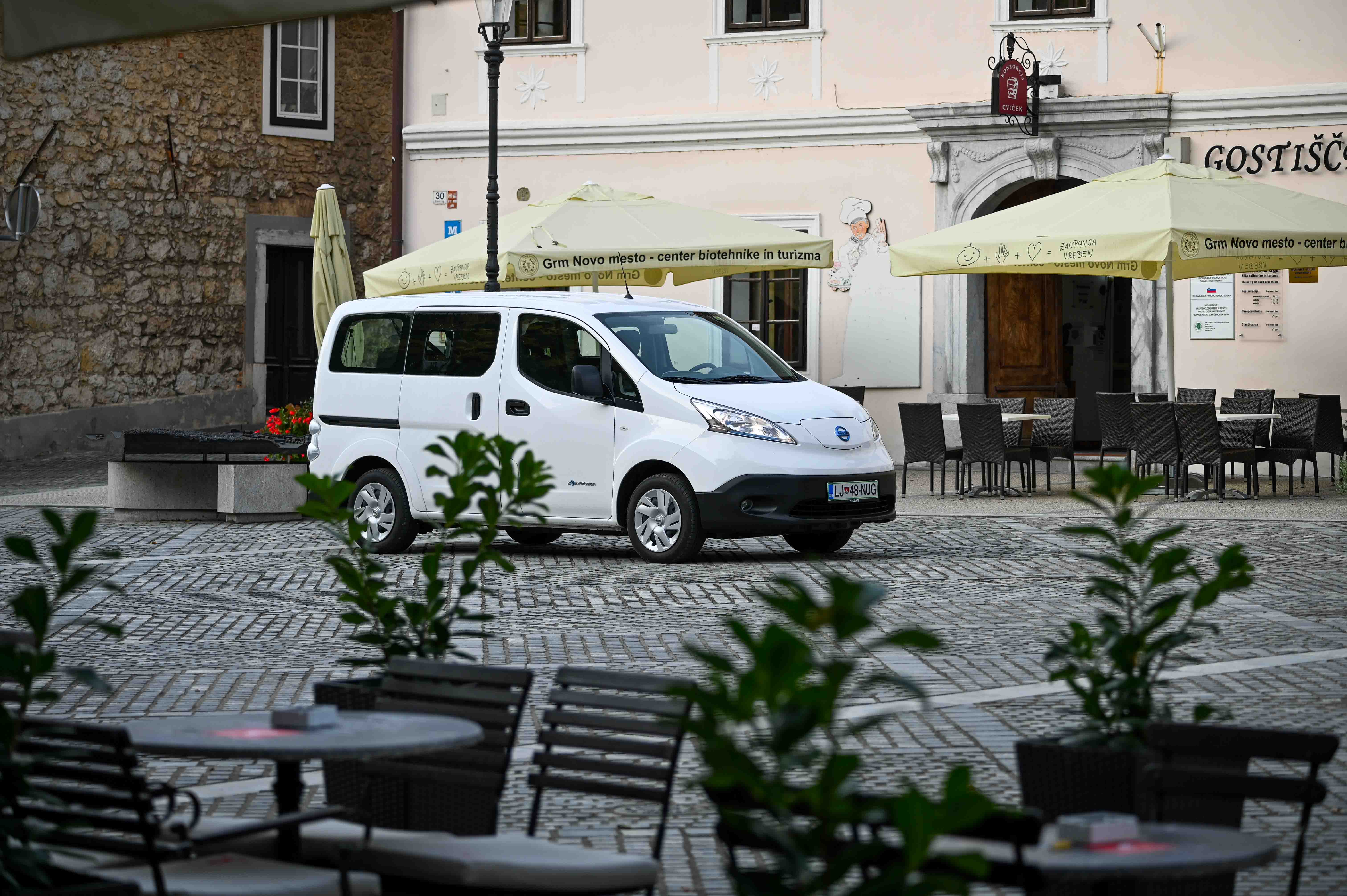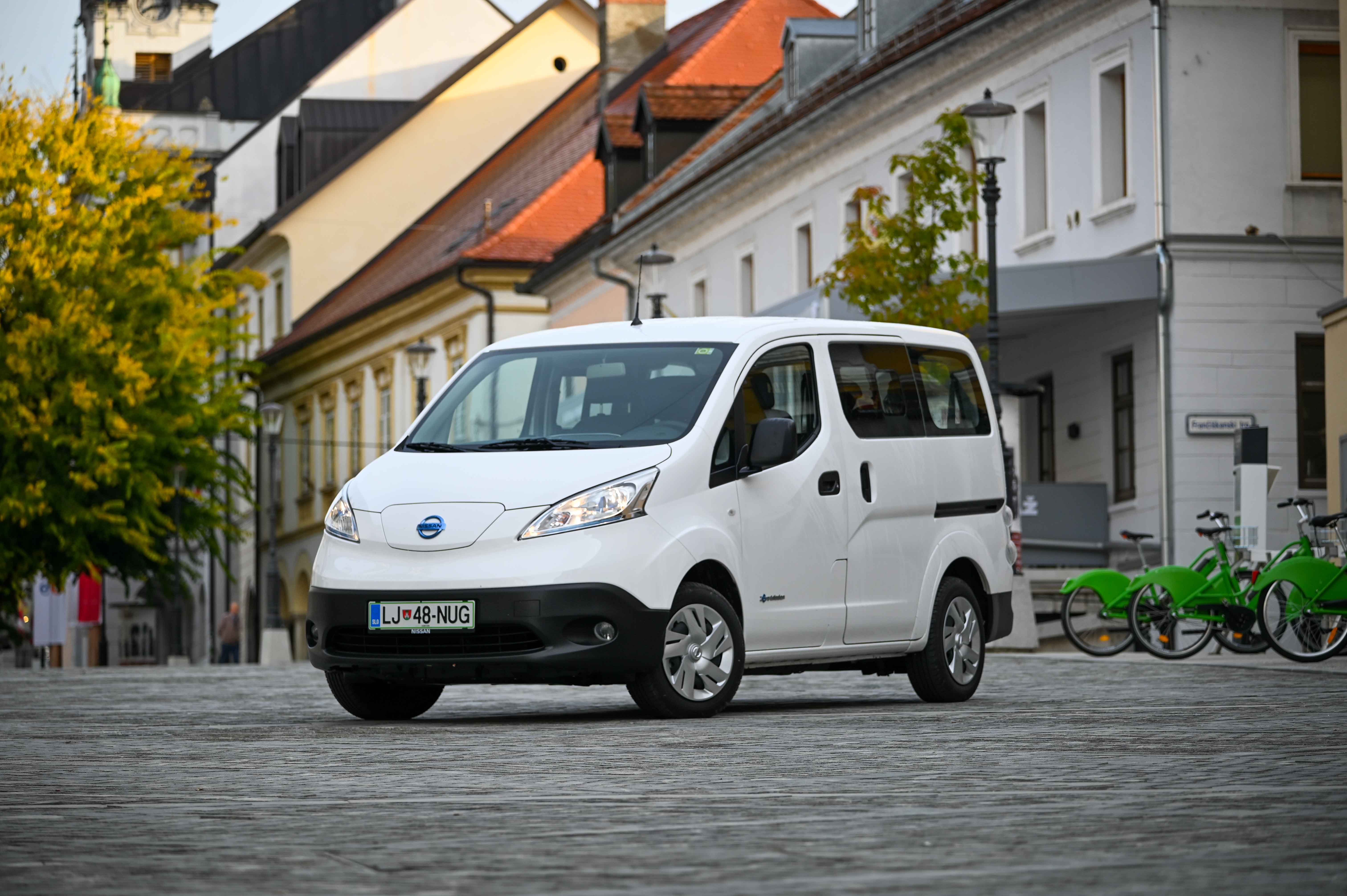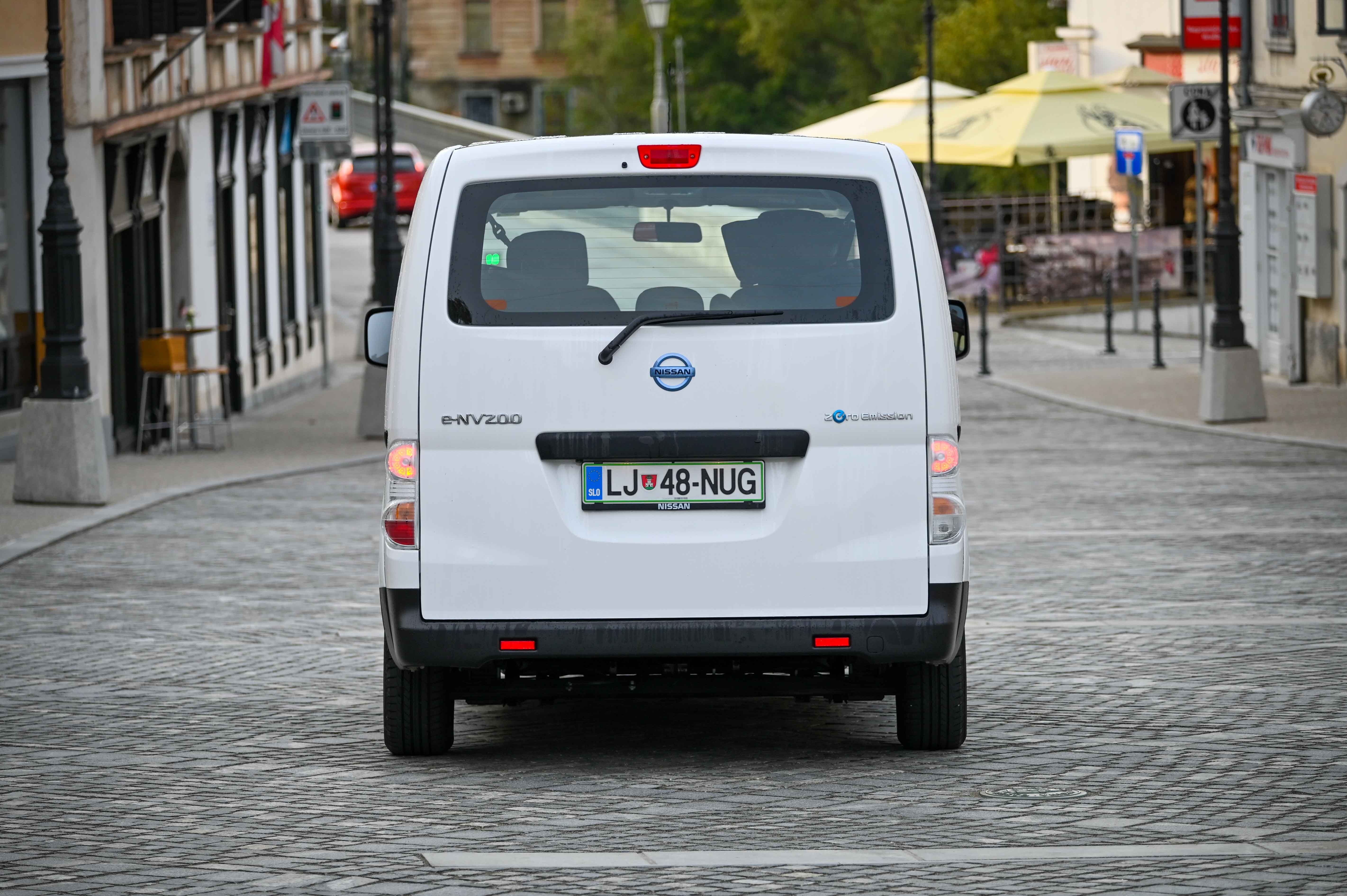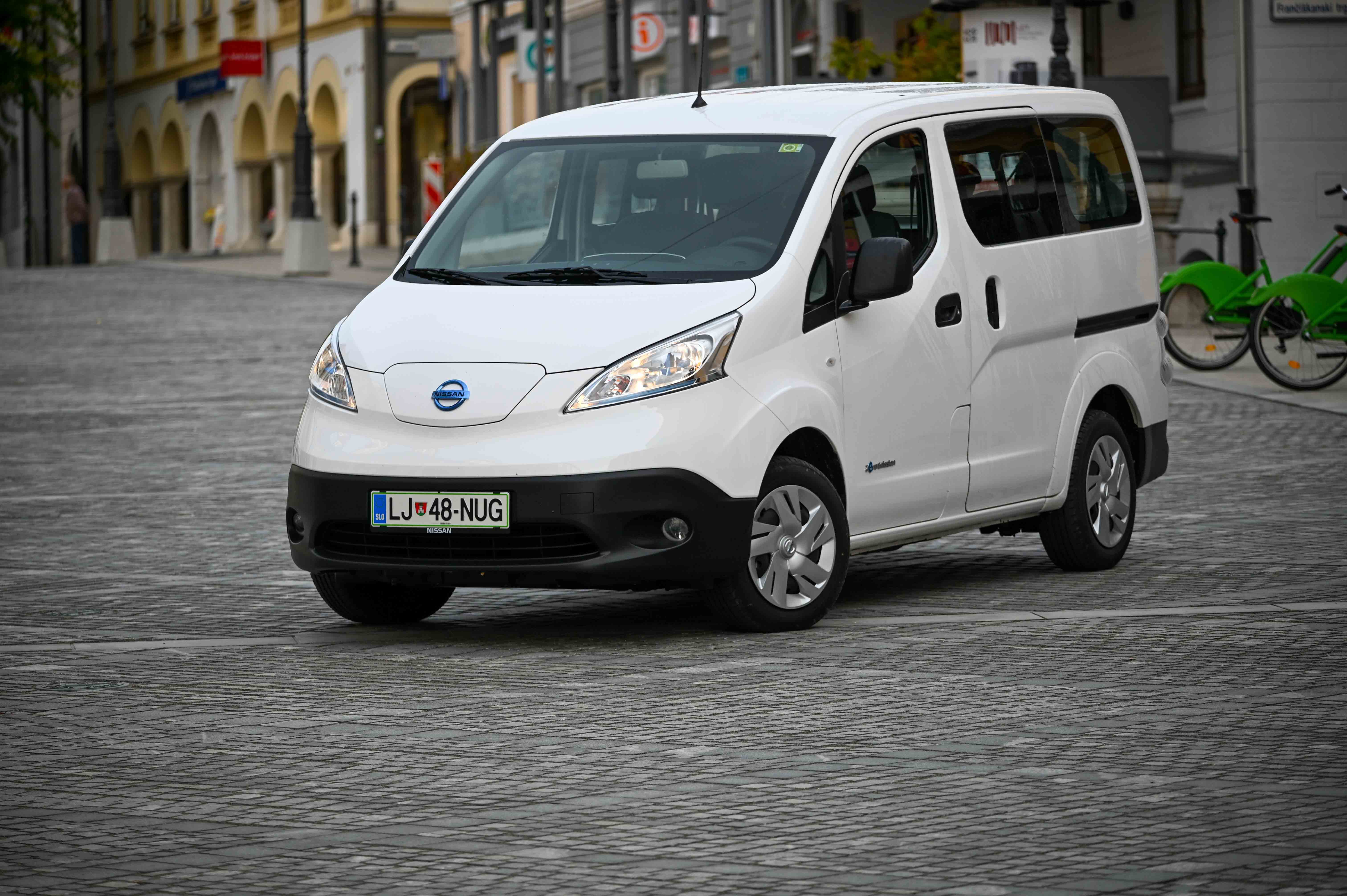 Nissan e-NV 200 že na videz ne spada v razredno povprečje - je ozek in visok, kar evropske oči vidijo kot oblikovno neskladje. A e-NV 200 v resnici odlikuje usklajeno razmerje med prostornostjo, prilagodljivostjo in vozniško okretnostjo. Na strmih in ozkih ulicah novomeškega Brega, starega jedra nad Krko, smo v zgodnjem jutru preverili, kako učinkovit je kot taksi ali kot dostavnik. Tiho in lahkotno je drsel po zelo ozkih ulicah z ostrimi zavoji. Je odlično pregleden in za sklenjen obračalni krog od robnika do robnika rabi le 10,6 metra. Električni kombiji bodo slej kot prej tudi pri nas v strnjenih mestnih središčih dobili svoj življenjski prostor. V kabino se vstopa udobno. Prostoren prtljažnik (870 l) ob petih sedežih z nizko postavljenim pragom, ki je le dobrega pol metra nad tlemi, brez težav pospravi tudi velike kovčke ali nahrbtnike. Za drugo presenečenje poskrbi podvozje: avto je vozniško zelo prijeten, blaženje odlično prestreza udarce s ceste in jih tudi zvočno dobro zaduši.