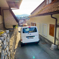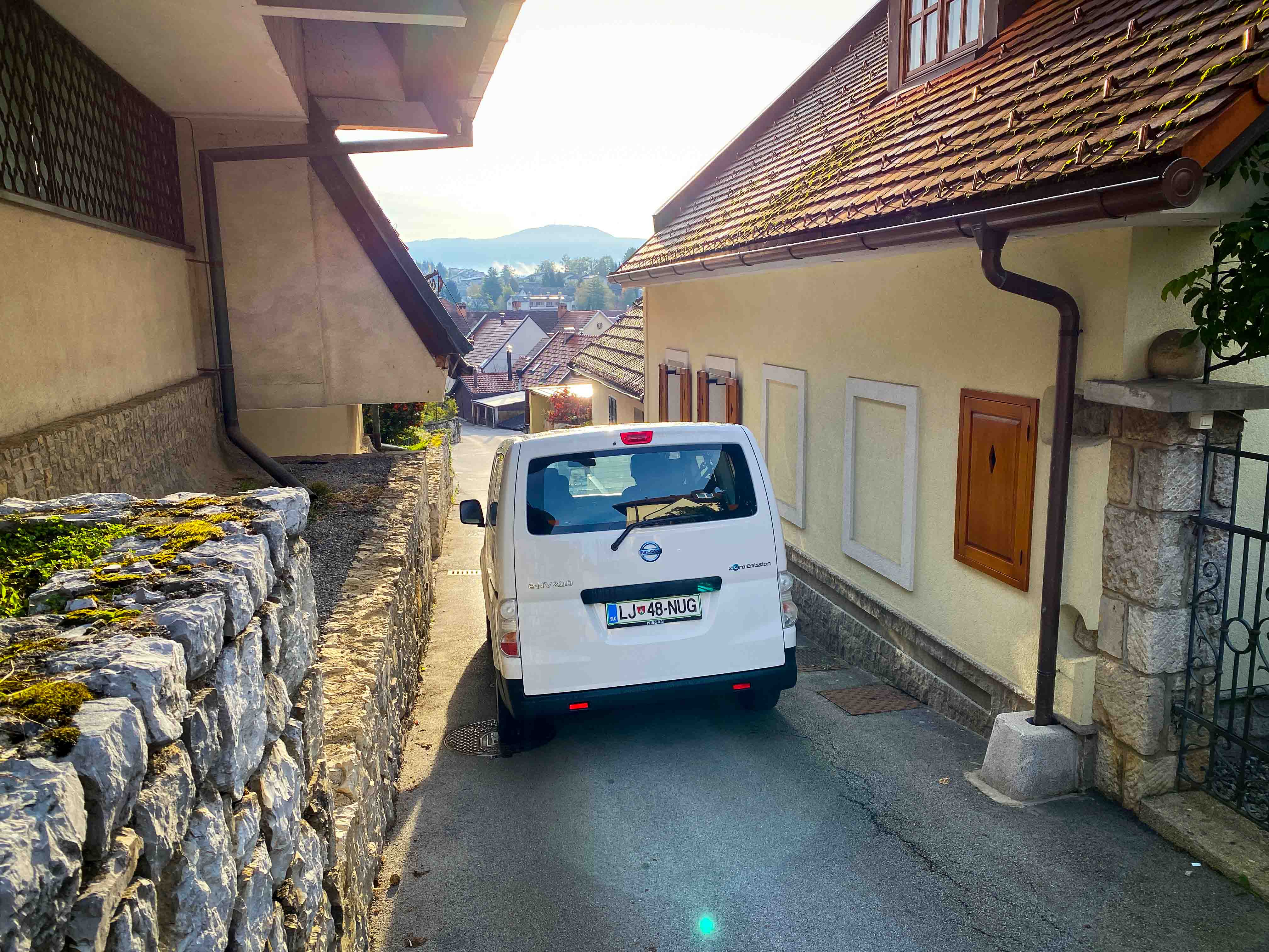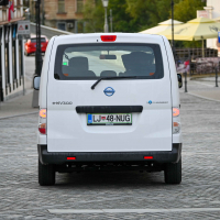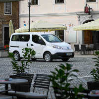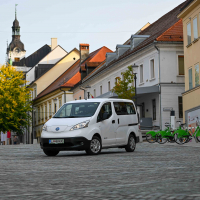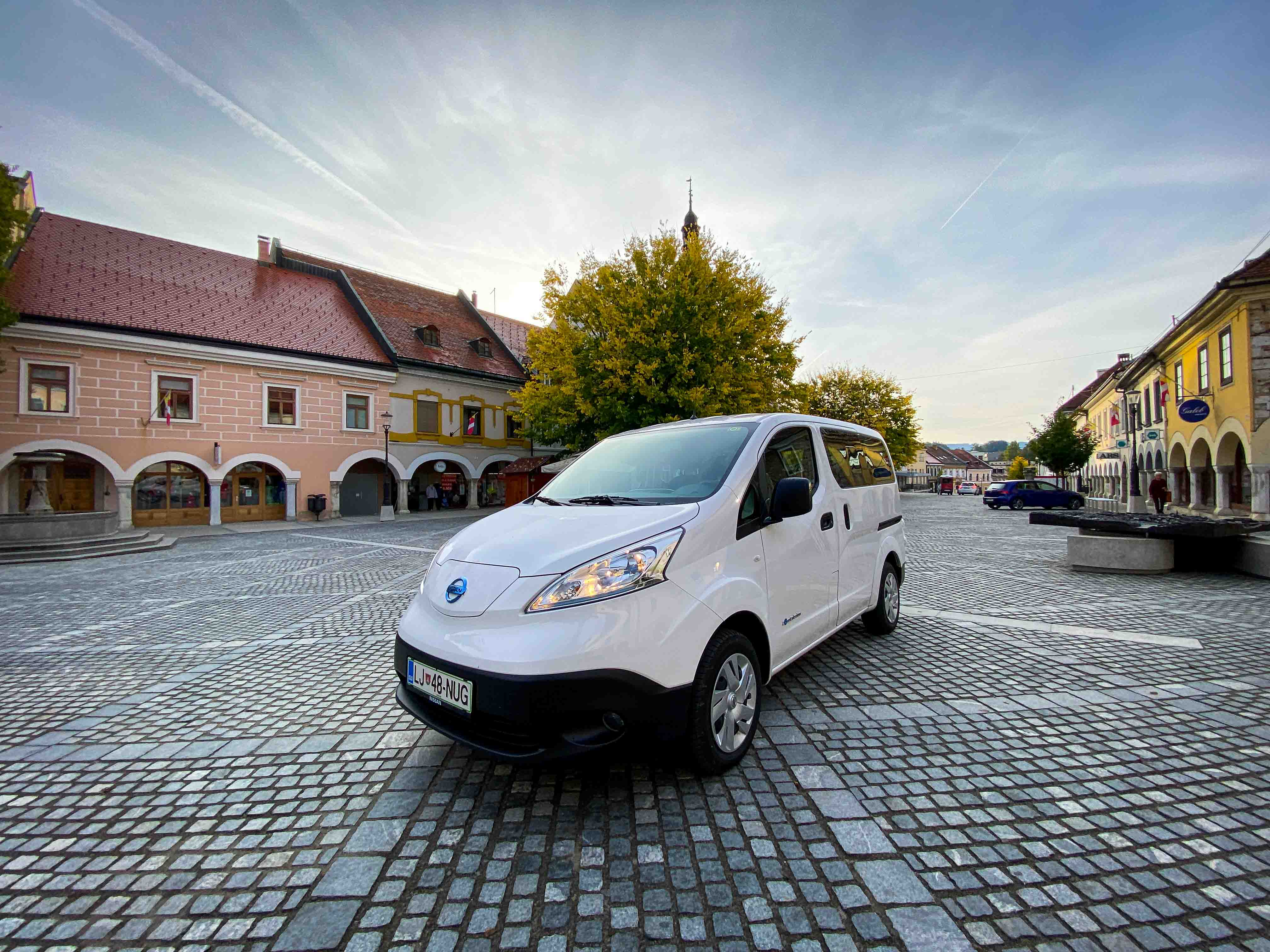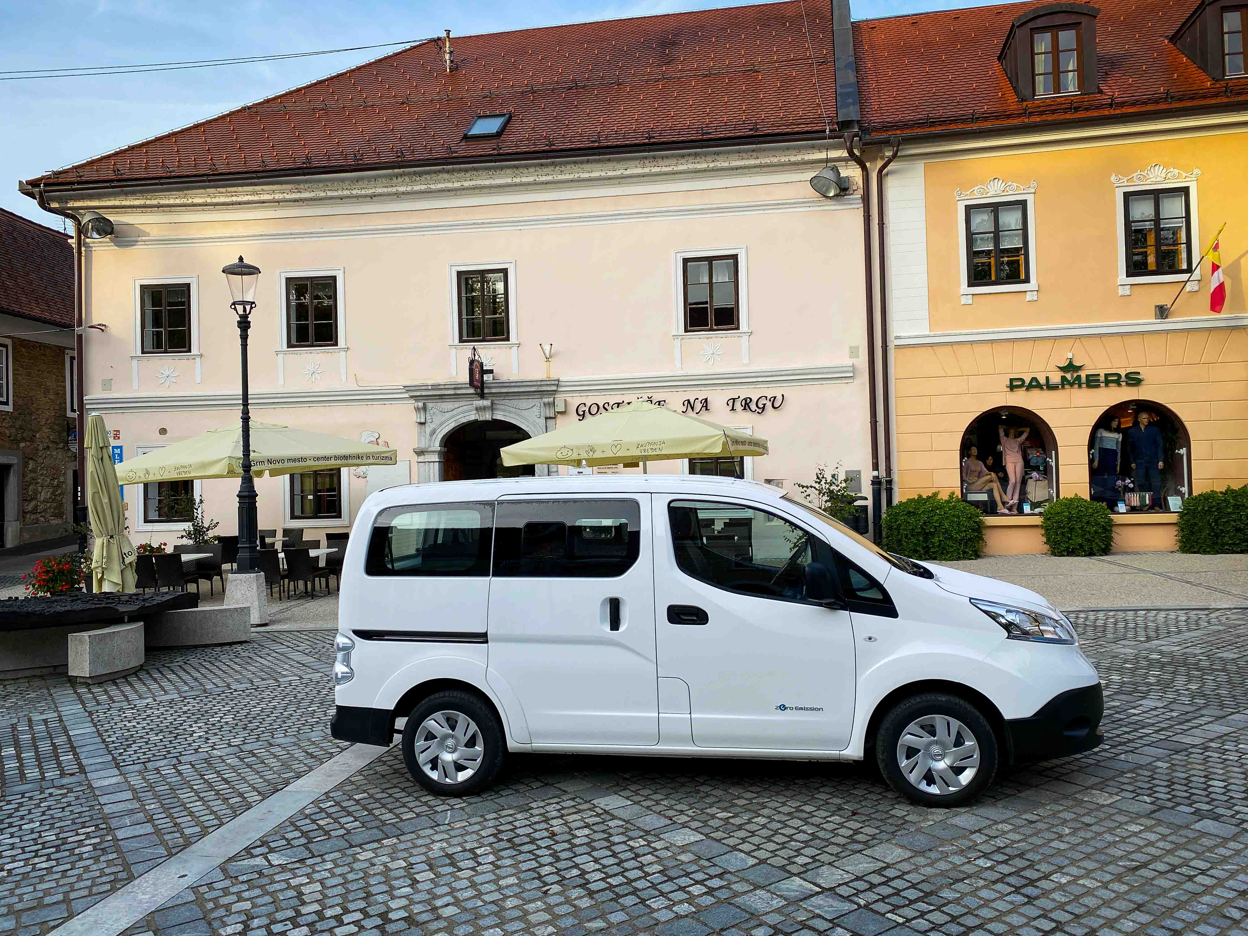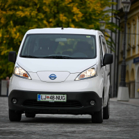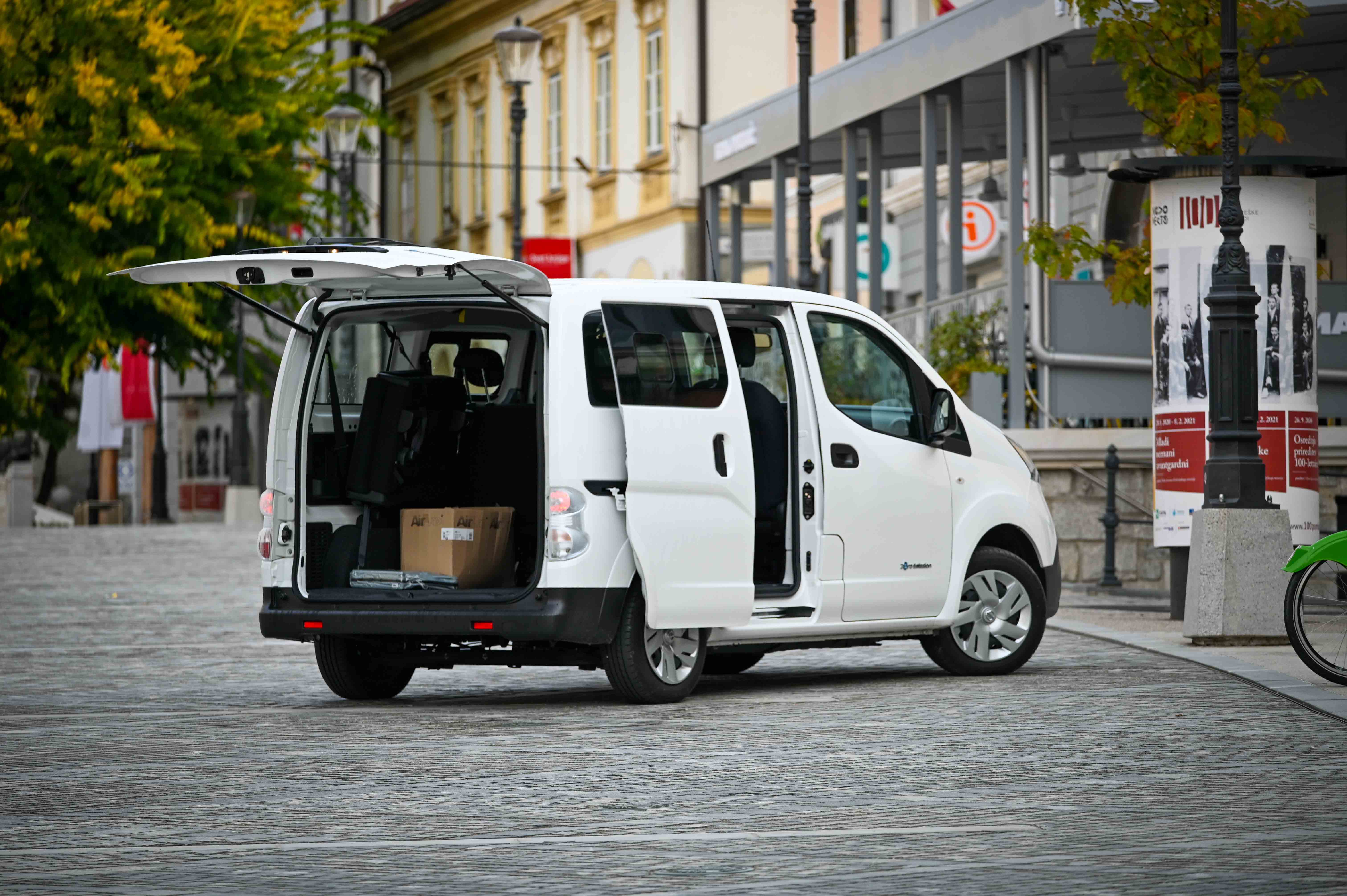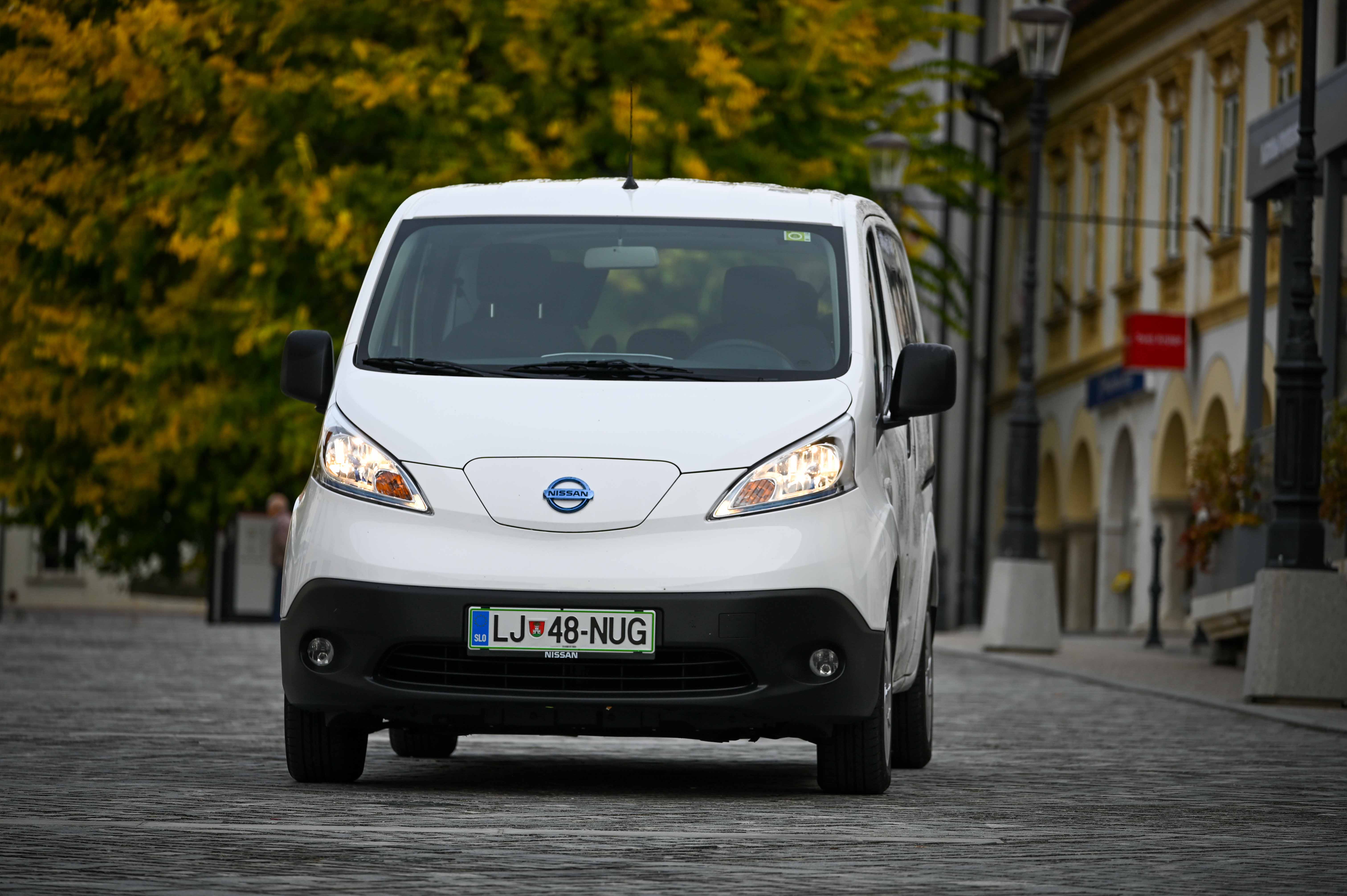 Nissan e-NV 200 že na videz ne spada v razredno povprečje - je ozek in visok, kar evropske oči vidijo kot oblikovno neskladje. A e-NV 200 v resnici odlikuje usklajeno razmerje med prostornostjo, prilagodljivostjo in vozniško okretnostjo. Na strmih in ozkih ulicah novomeškega Brega, starega jedra nad Krko, smo v zgodnjem jutru preverili, kako učinkovit je kot taksi ali kot dostavnik. Tiho in lahkotno je drsel po zelo ozkih ulicah z ostrimi zavoji. Je odlično pregleden in za sklenjen obračalni krog od robnika do robnika rabi le 10,6 metra. Električni kombiji bodo slej kot prej tudi pri nas v strnjenih mestnih središčih dobili svoj življenjski prostor. V kabino se vstopa udobno. Prostoren prtljažnik (870 l) ob petih sedežih z nizko postavljenim pragom, ki je le dobrega pol metra nad tlemi, brez težav pospravi tudi velike kovčke ali nahrbtnike. Za drugo presenečenje poskrbi podvozje: avto je vozniško zelo prijeten, blaženje odlično prestreza udarce s ceste in jih tudi zvočno dobro zaduši.