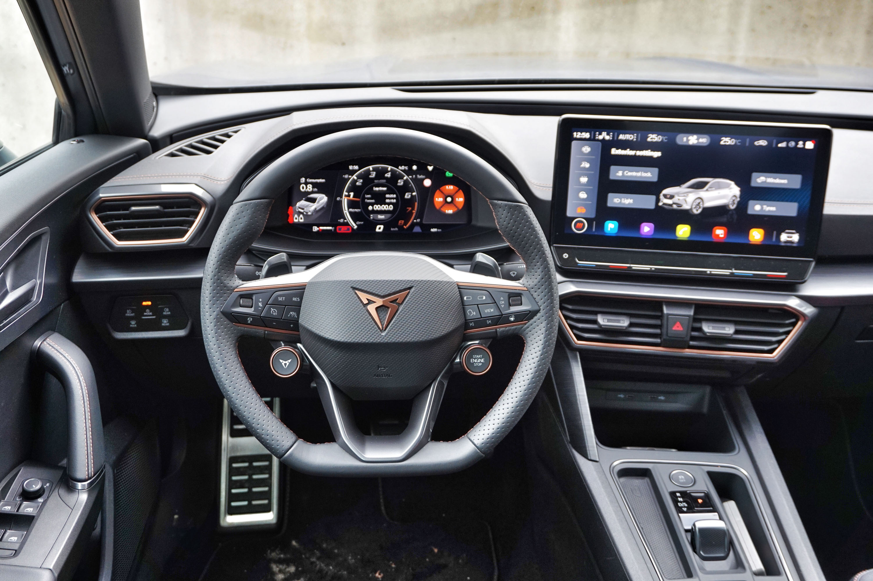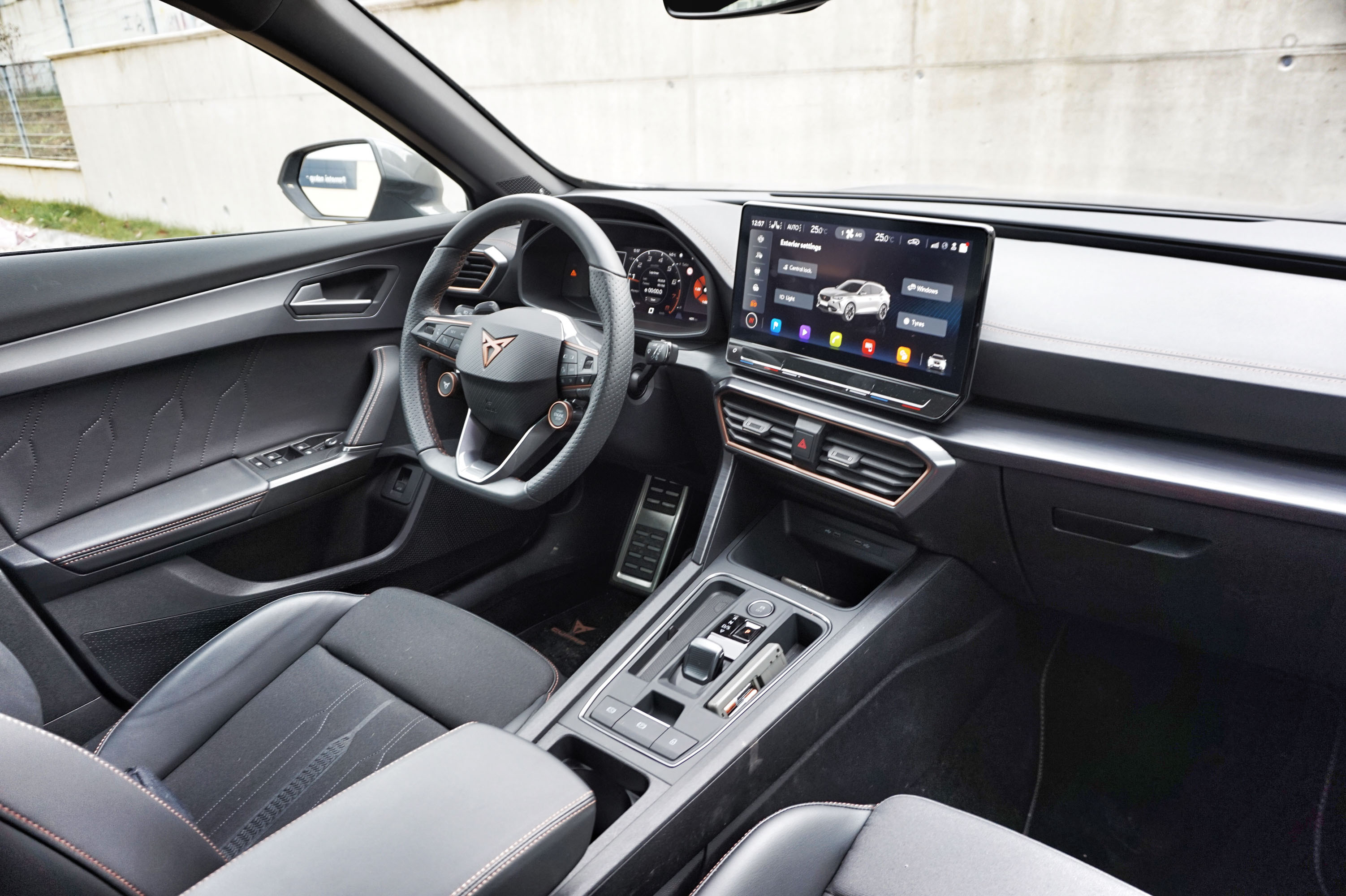 Širok nabor dobro delujočih varnostnih sistemov pomirja, saj umetna inteligenca suvereno ohranja varnostno razdaljo, upošteva hitrostne omejitev, bere prometne znake, dobro nadzira smer v mejah talnih oznak, nadzira mrtve kote in spremlja gibanje pešcev in kolesarjev - če je treba tudi zavira v sili. Manj prepričljiv je formentor v digitalnem svetu: velik 12-palčni zaslon ima nepregledne izbirnike in predvsem veliko rezerve v programski opremi, kar se najbolj očitno kaže v občasni slabši odzivnosti ali izpadu bluetooth povezave z mobilnikom.