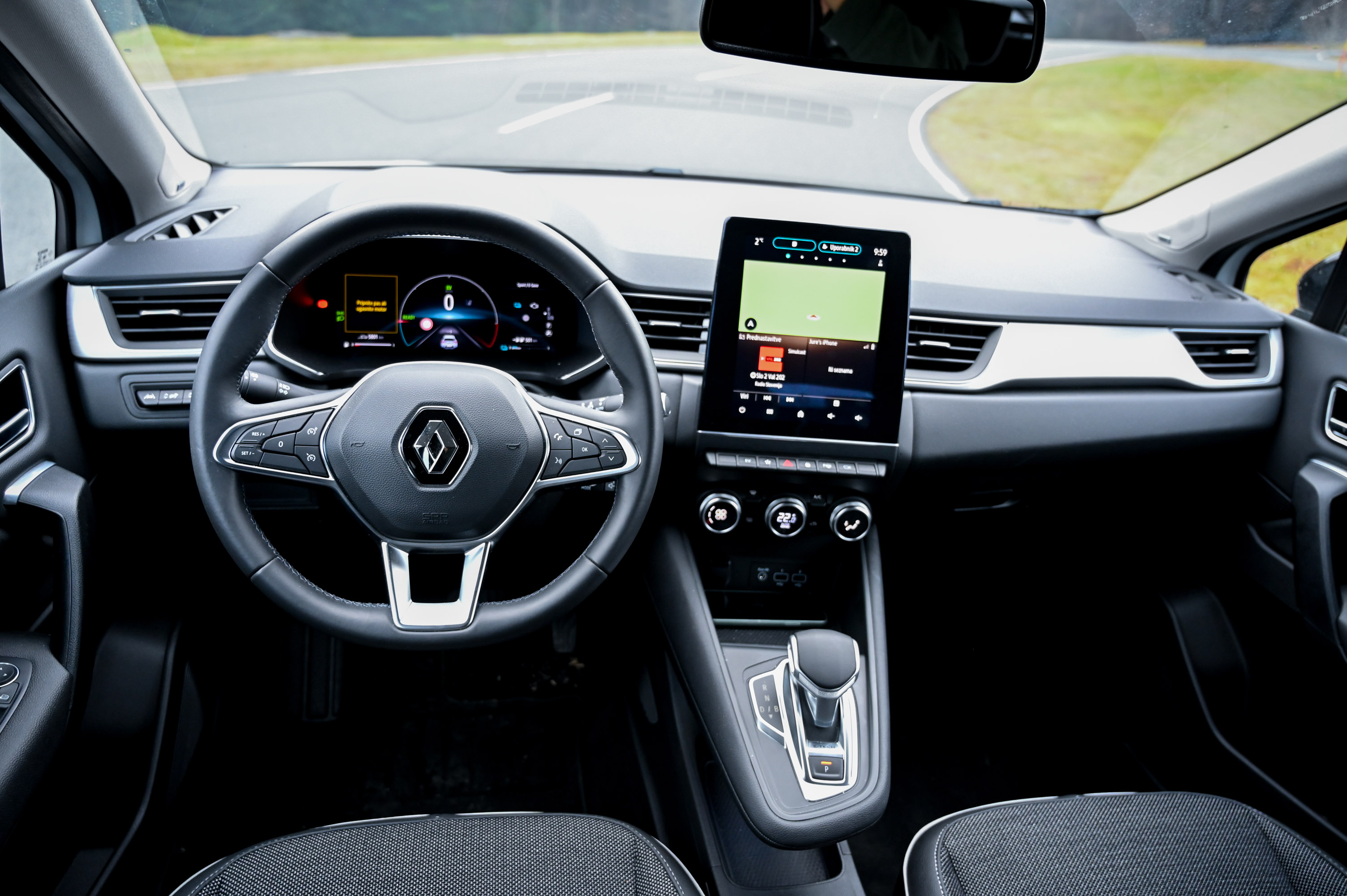 Na cesti hibridni captur pušča mešane občutke. Umirjeni vozniki, ki jim veliko pomeni predvsem udobje in uglajenost pogona, bodo zelo zadovoljni. Avto vedno spelje v tišini oziroma na elektriko. Tudi za vzvratno vožnjo skrbi elektrika. Brez tresljajev in brez cukanja. Zaradi vpliva dodatne teže akumulatorskega sklopa sta pri hibridnem capturju tudi zadnji kolesi vpeti posamično. Je pa podvozje nastavljeno na udobje. Captur sicer nima težav s hitrimi menjavami smeri, saj dobro ohranja smer, a se mu dodatni kilogrami kljub vsemu poznajo. Pri dinamični vožnji prednja kolesa razmeroma hitro zdrsnejo iz smeri.