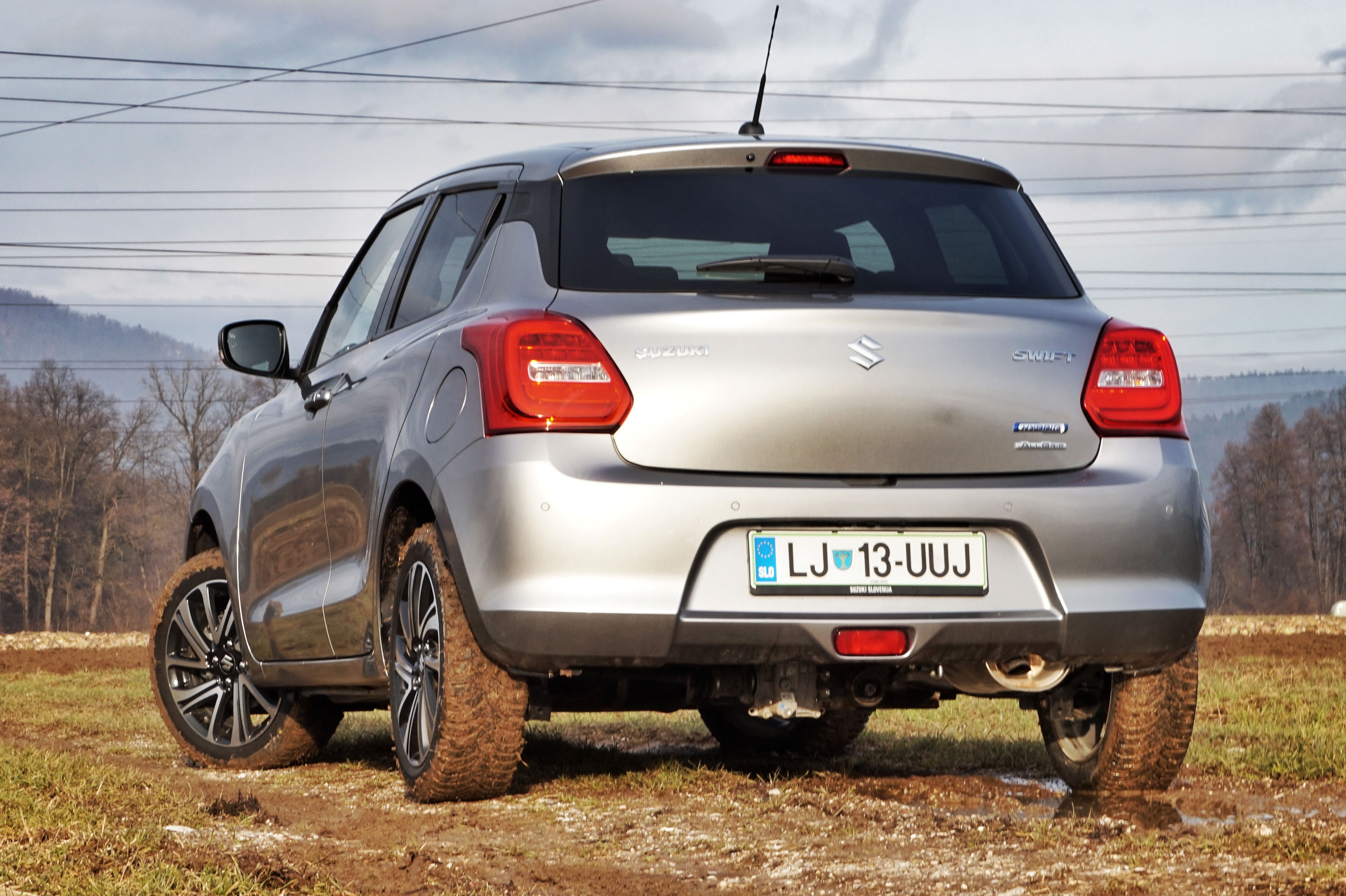 1,2-litrski bencinski štirivaljnik ima 5 kW manj moči kot pred nedavno tehnično prenovo. Inženirji so z novo programsko opremo - ta za je za 1600 vrtljajev znižala mejo, pri kateri je dosežen največji navor - ohranili prožnost oziroma odzivnost, a posodobitev je vlogo odigrala le na papirju oziroma pri gramih CO2 v homologacijskem kartončku. Swiftova elektrifikacija z 48-voltno napeljavo, dodatnim litij-ionskim akumulatorjem (10 Ah) in kompaktno električno napravo (zaganjalnik-generator) motorju sicer pomaga z dodatnimi 3 kW in 50 Nm navora, med vožnjo pa se opazi, da je “čistejši” swift postal nekoliko bolj lenoben. Bistvenega napredka v učinkovitosti te bližnjice ne pokaže niti povprečna testna poraba goriva. Če swiftovih 5,7 litra na 100 km primerjamo z več kot liter manjšo porabo precej bolj odzivnega hibridnega Toyotinega yarisa, je hitro jasno, zakaj nas bližnjica ne prepriča.