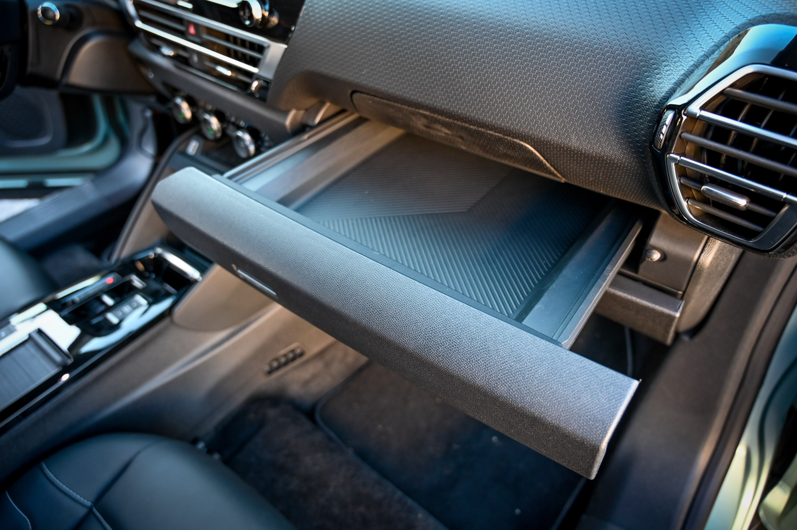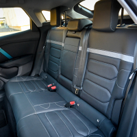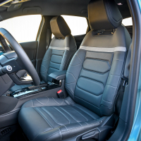 Počutje za volanom je zelo dobro. Izstopata velika, anatomsko oblikovana in v usnje oblečena prednja sedeža ter armaturna plošča z veliko uporabnimi odlagalnimi mesti, med katerimi je praktična polička za brezžično polnjenje telefona. Piko na i postavljata izvlečni predal in dodatni nosilec tabličnega računalnika. Palec dvignemo še za 380-litrski prtljažnik z dvojnim dnom, v katerega je mogoče pospraviti električne kable. Prtljažnik je po prostornini za zanemarljivih 5 litrov manjši od prtljažnika Volkswagnovega ID.3 in povsem konkurenčen tudi s 420-litrskim prostorom za prtljago v Nissanovem leafu.