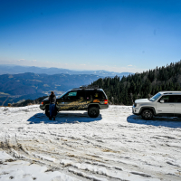 Janez je z občutkom poznavalca tudi v tišini električnega pogona na zahtevnem terenu hitro poiskal meje oprijema: “Električni štirikolesni pogon je malenkost manj odziven kot mehanski pogon. Navaditi sem se moral na stopalko za plin, da sem dobil občutek za električni odziv. Presenečen sem, da se obnese enako dobro kot klasični mehanski pogon. Če ne bi vedel, da nima kardanske gredi, tega ne bi zaznal.” Na pogled se nam je zdelo, da se na elektriko gnani kolesi zadaj hitreje zavrtita, a Janez pravi, da za volanom tega ni čutiti. “To je še vedno dober terenec, pravi jeep, ki ni izgubil svoje duše, čeprav ima zadaj električni motor in vtičnico. Po asfaltu in lažjemu terenu se lahko vozi v tišini na elektriko. Je zanimiv avto za vsakogar, ki bi rad združil značilnosti električnega in terenskega avtomobila.”