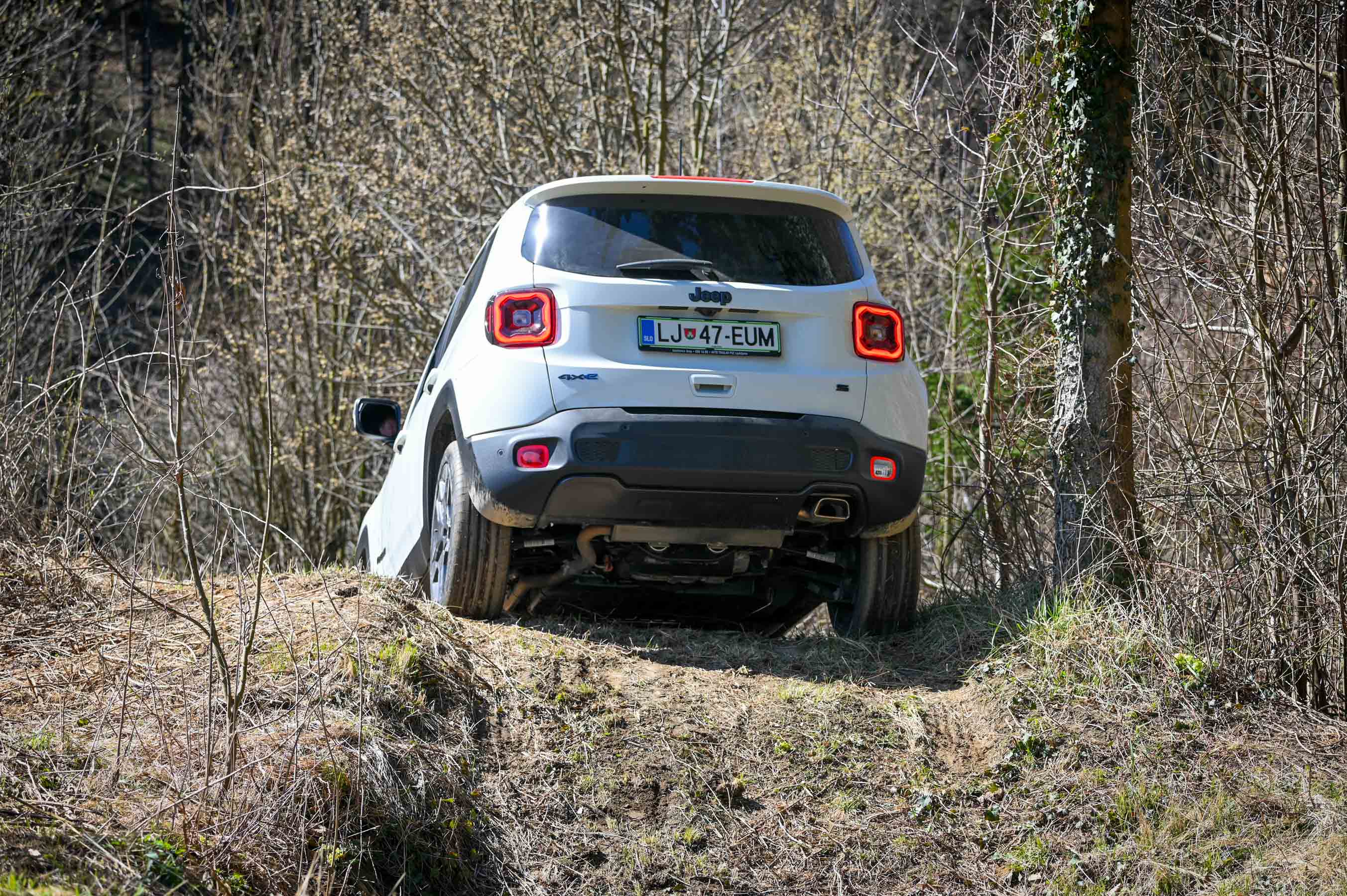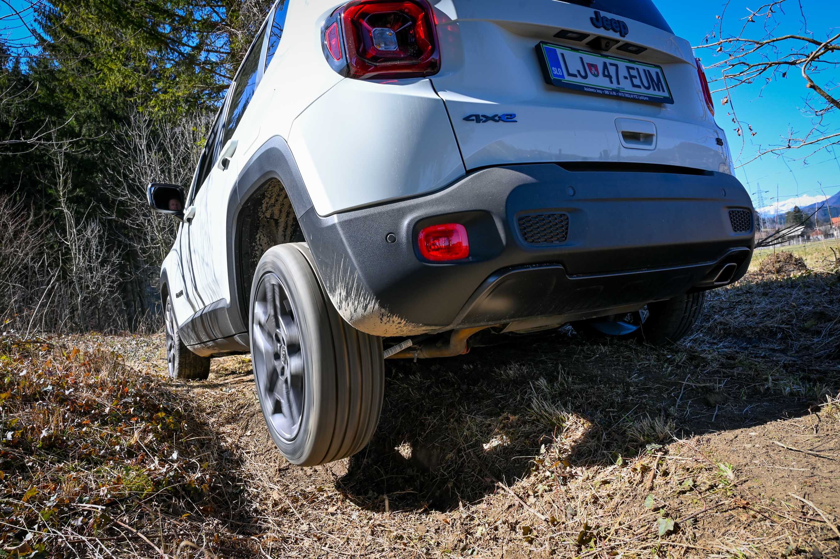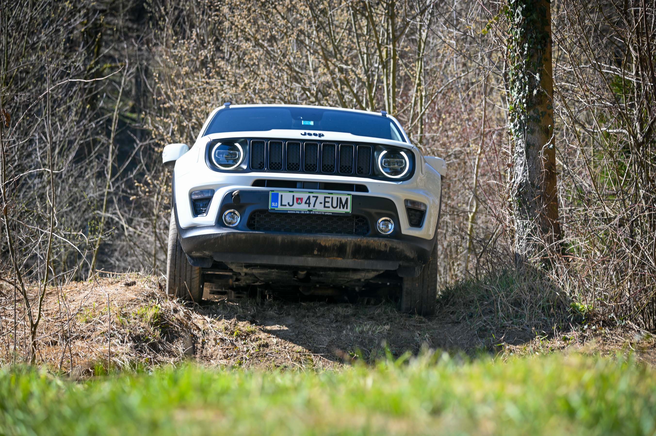 Novi časi narekujejo zmanjšanje izpustov ne glede na poslanstvo in tradicijo znamk. Zato športni avtomobili pospešujejo v tišini, klasični, kleni terenski avtomobili pa so izven kategorije “specialnih” poklicev praktično že na seznamu ogroženih avtomobilskih vrst. Jeseni smo v AMZS centru varne vožnje na Vranskem zato v podobnem doživetju za volanom porscheja taycana preverjali, kakšna bo električna prihodnost športnih avtomobilov. Tokrat pa smo sedli za volan jeepa renegadeja z vtičnico na boku in električno shrambo skupne zmogljivosti 11,4 kWh, ki mu na asfaltu zagotavlja okoli 40-kilometrski doseg z izklopljenim bencinskim motorjem.