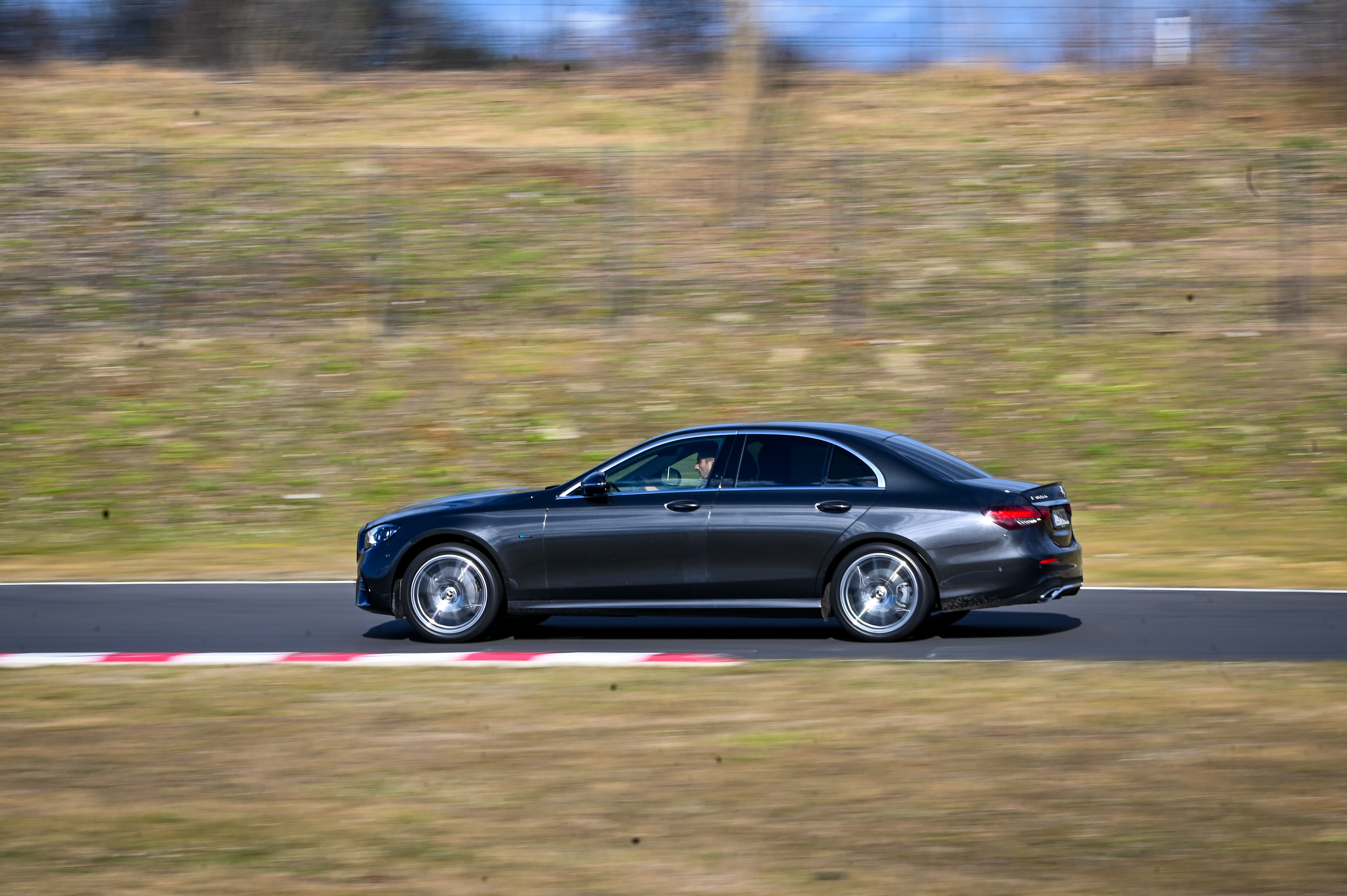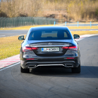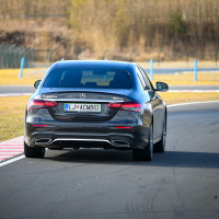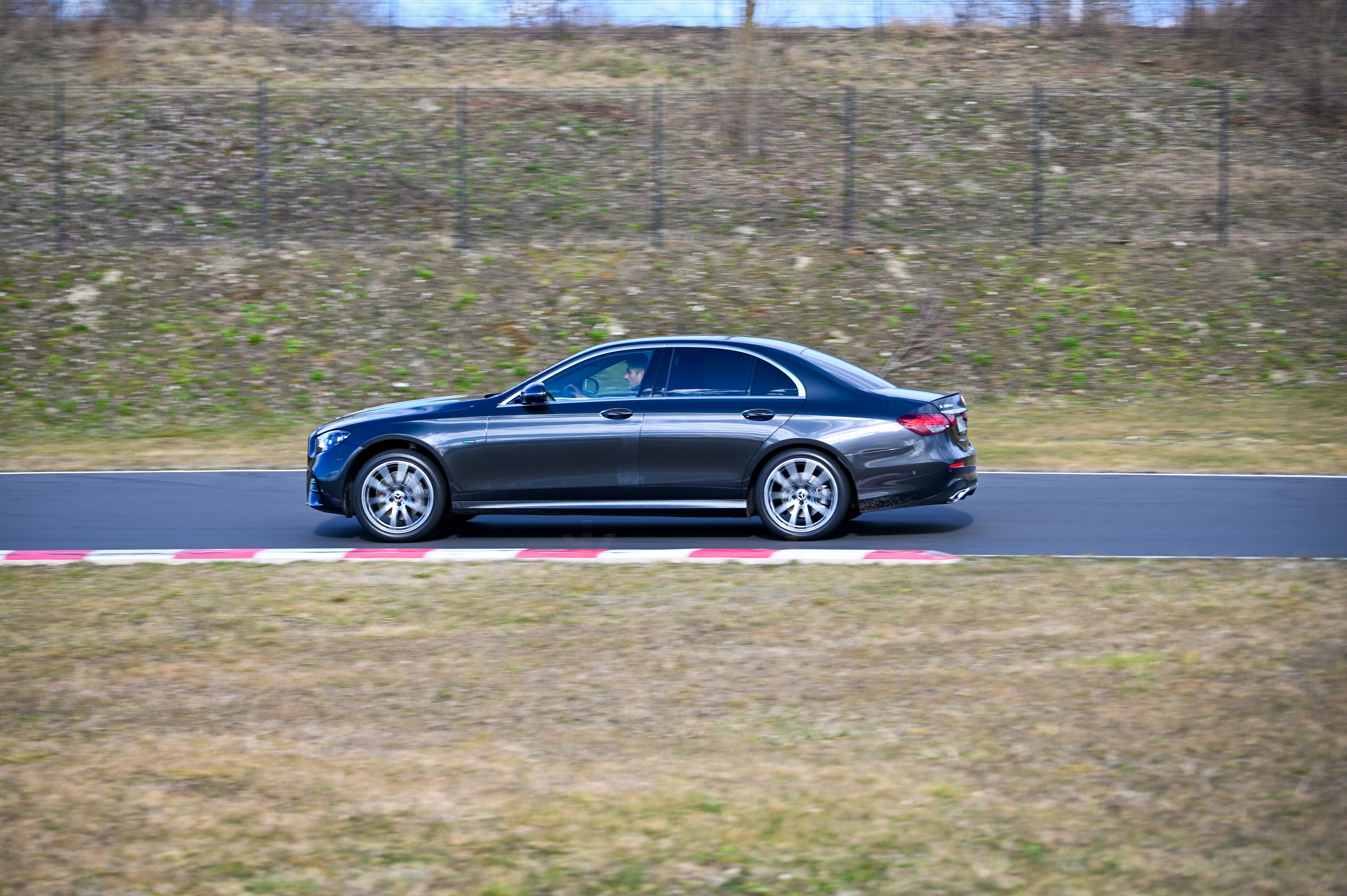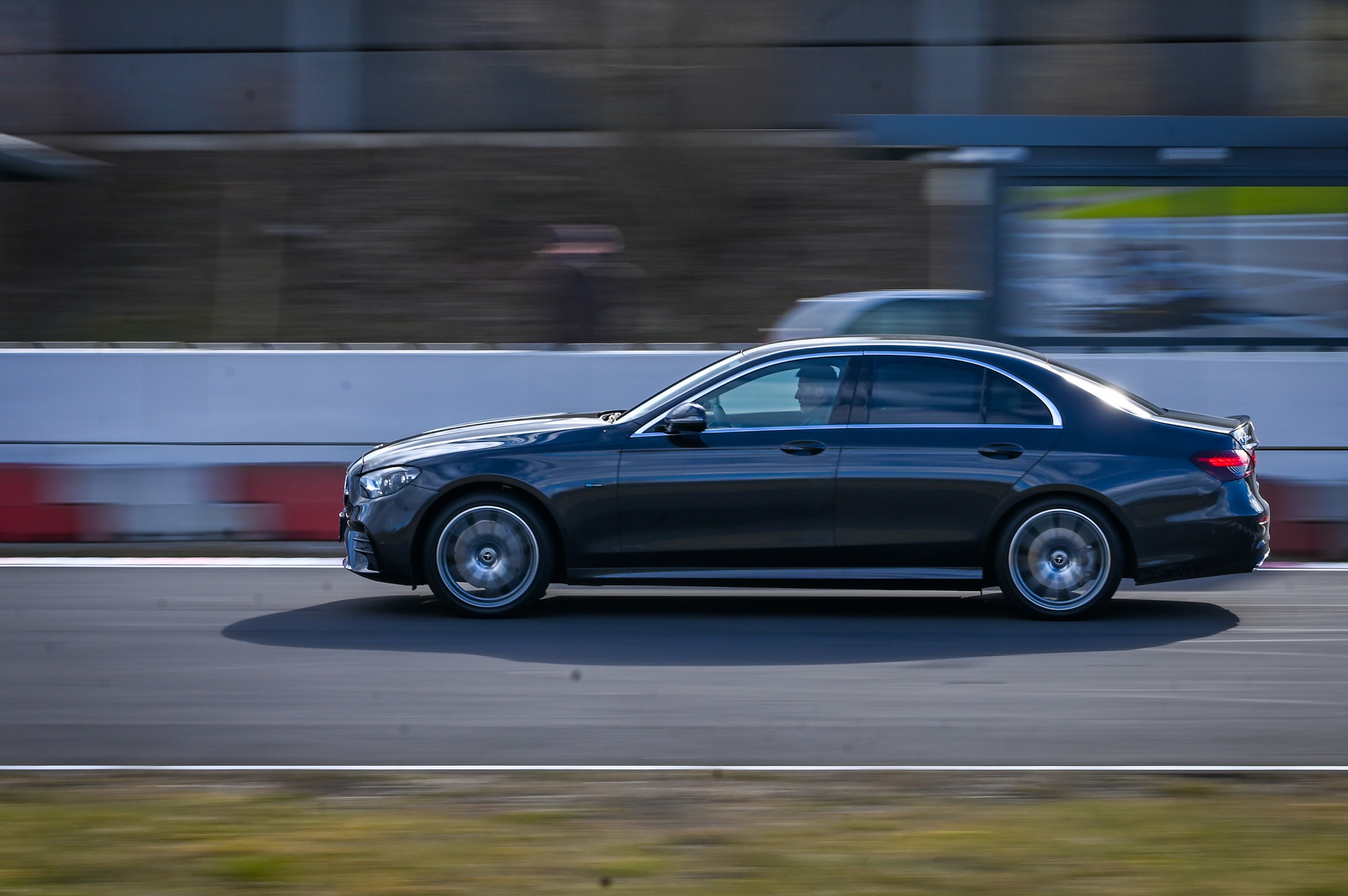 Navkljub suverenemu 5,9-sekundnemu pospešku in 306 “konjem” sistemske moči priključni hibridni E po značaju oziroma voznih lastnostih nikakor ni športnik. Avto sicer zmore tudi na meji oprijema skoraj neomajno obdržati smer, a zares blesti na dolgih avtocestnih etapah. Tam pridejo do izraza njegovo prvovrstno udobje in brezhibno delujoči vozniški pomočniki, ki z občutkom zbranega voznika ohranjajo smer, nadzirajo okolico in varnostno razdaljo, se z aktivnim pospeševanjem oziroma zaviranjem prilagajajo prometnemu toku, omejitvam in celo izvozom ter krožiščem.