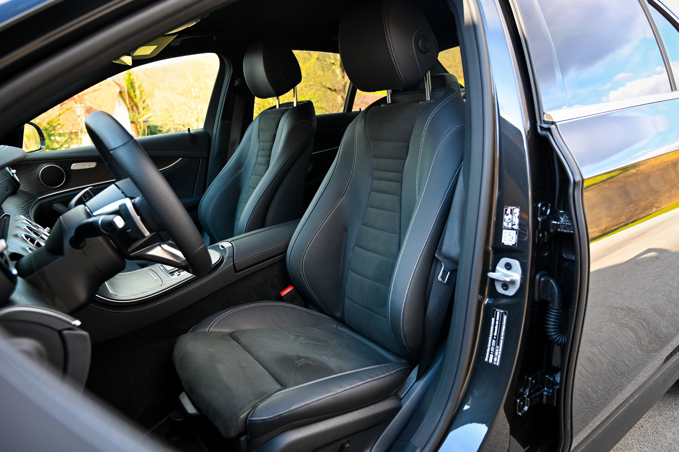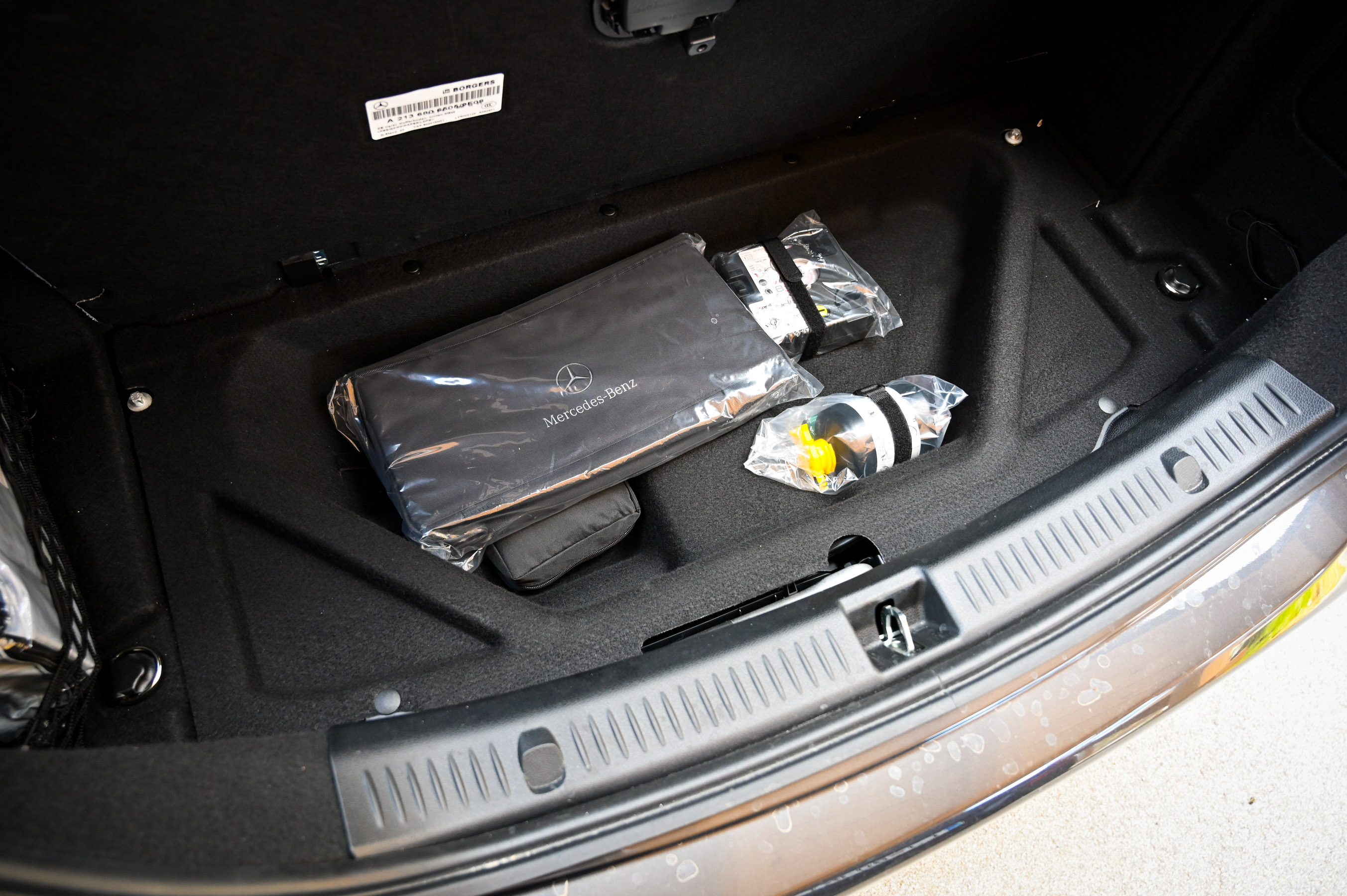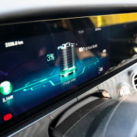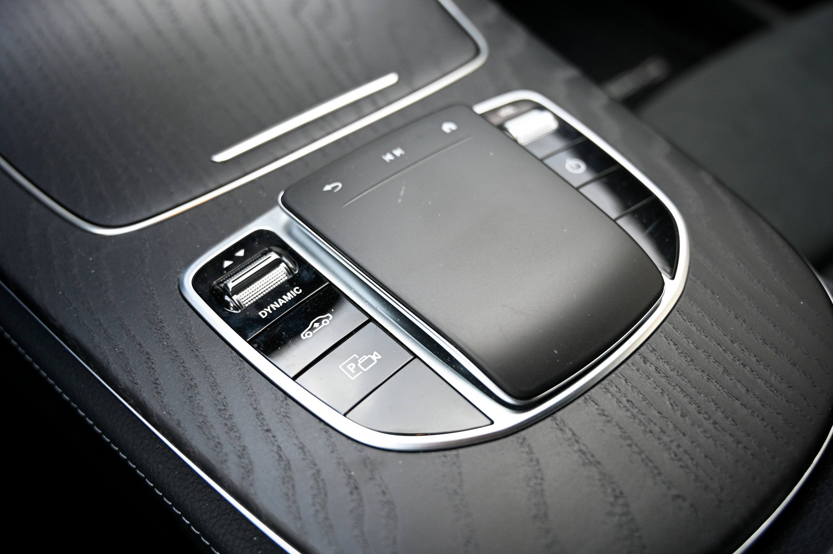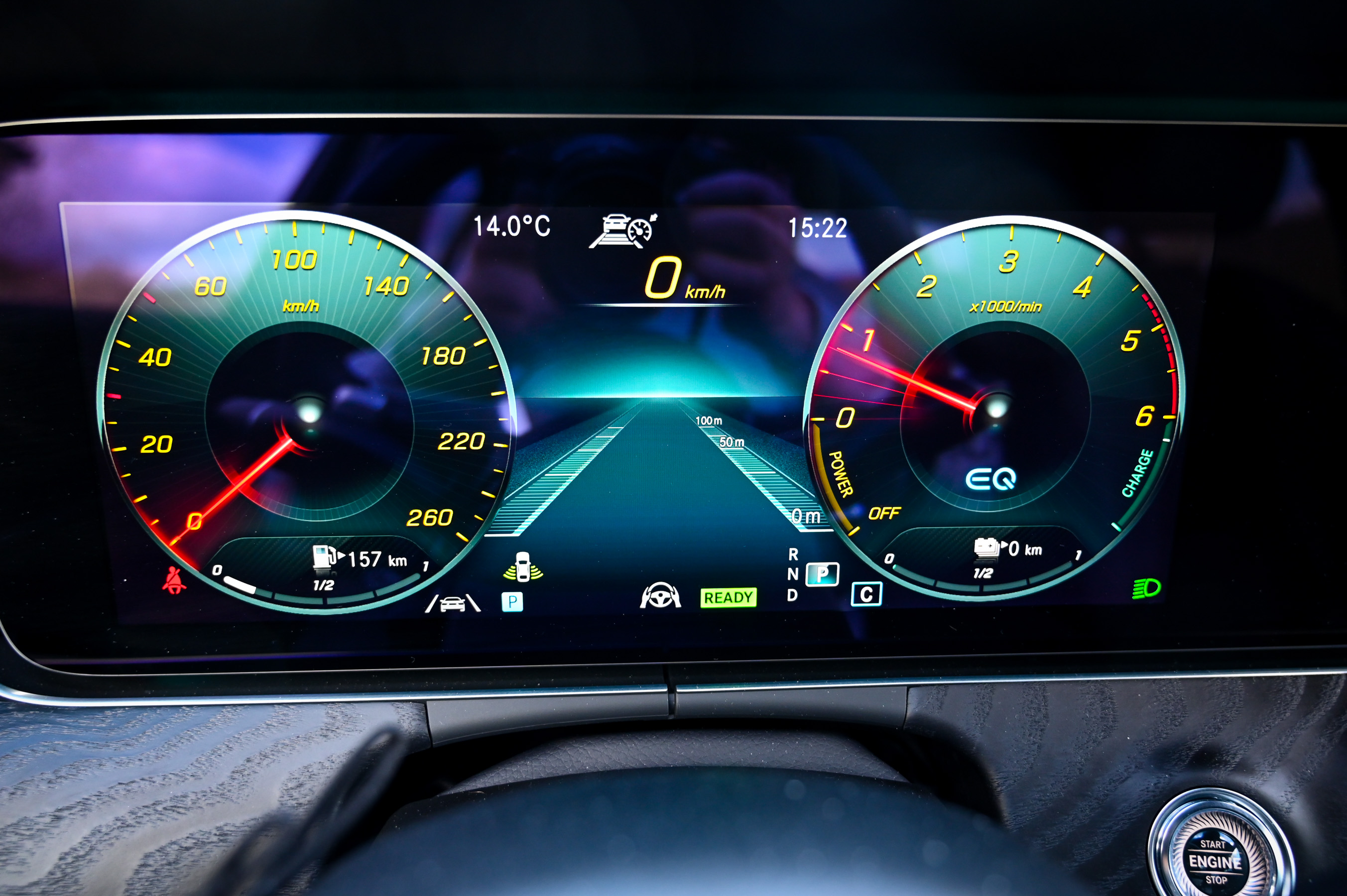 V razkošno opremljeni in zvočno prvovrstno zatesnjeni kabini izstopajo velika 12,3-palčna zaslona, obloge iz črne jesenovine in volan, ki s kapacitivno plastjo prepozna, če ga držijo voznikove roke. Ob prvovrstnem digitalnem vmesniku MBUX in glasovnemu vodenju si grajo zasluži dejstvo, da kompleksni meniji še vedno niso v slovenščini. Za polno izkušnjo pametnega mercedesa mora voznik razumeti in govoriti vsaj en tuji jezik. Hvalimo udobne sedeže in prostor na zadnji klopi. Se pa sedi precej nizko. Precejšen davek si elektrifikacija odmeri v prtljažniku, v katerem je nameščena električna shramba. To pomeni neravno dno z visoko stopnico po celi širini prtljažnika in vsega 370 litrov prostornine.