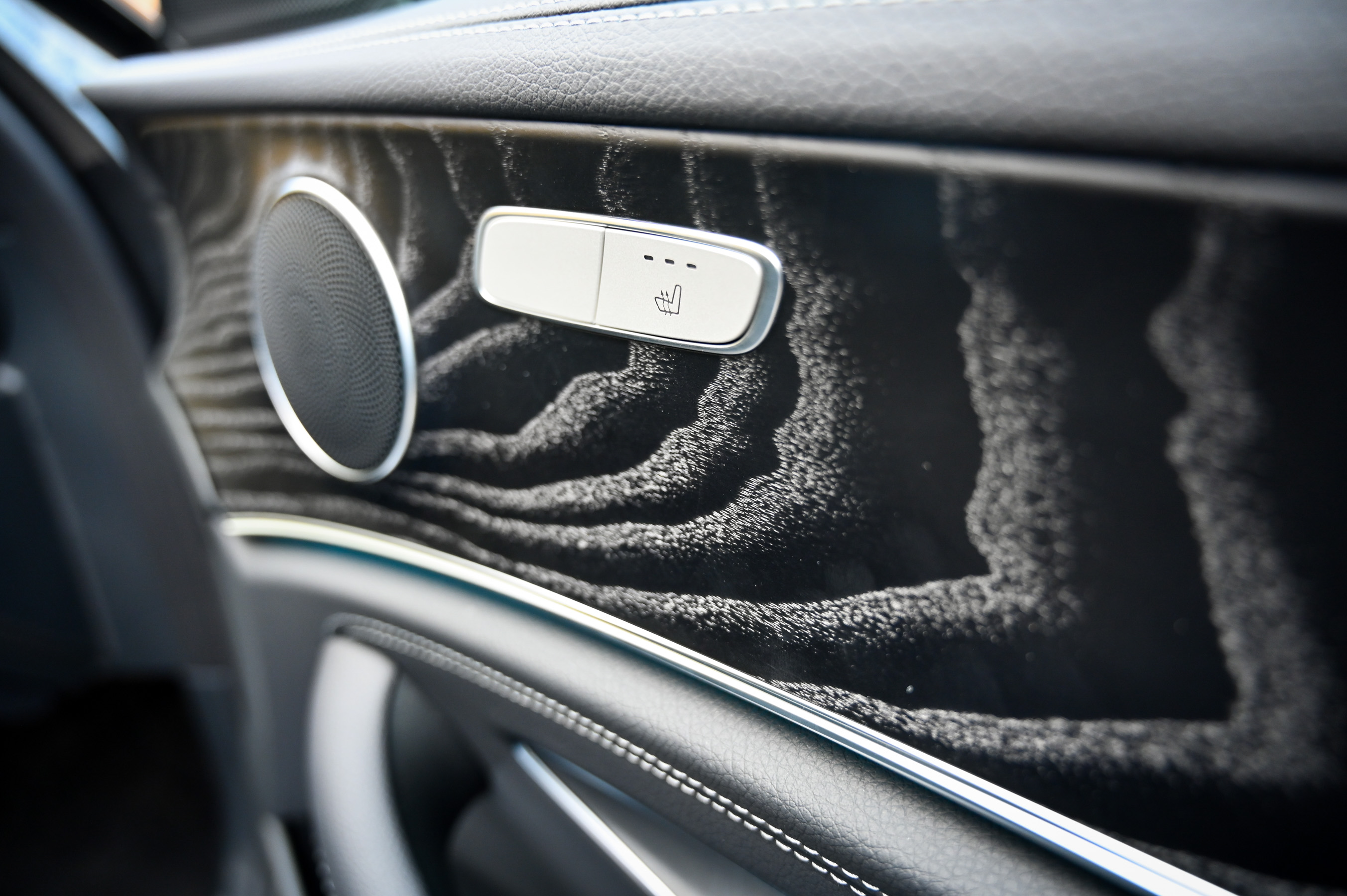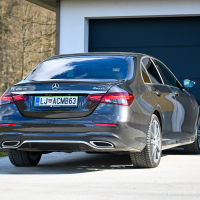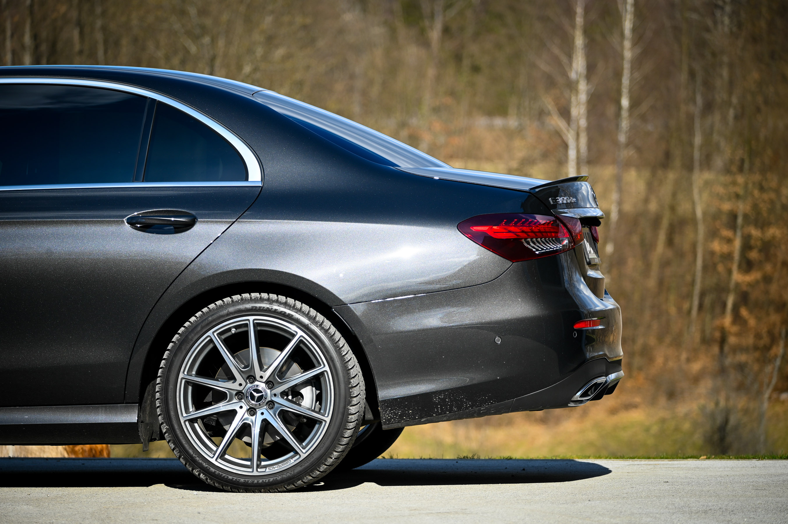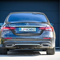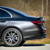 Prenova je tej klasični limuzini prinesla še kanček več elegance. Mercedesovo čutno oblikovanje pomeni, da prenovljeni E nima niti enega ostrega robu. Piko na i zunanji eleganci postavlja športni paket AMG line, za katerega je treba doplačati 2352 evrov. Pri doplačilih, ki poslovno limuzino naredijo zares udobno, velja omeniti še prilagodljivo zračno vzmetenje. Za dodatna dva tisočaka se E ob pomoči pametnega vzmetenja odlično prilagaja cesti in v ovinkih bolje skrije svoje zajetne kilograme.