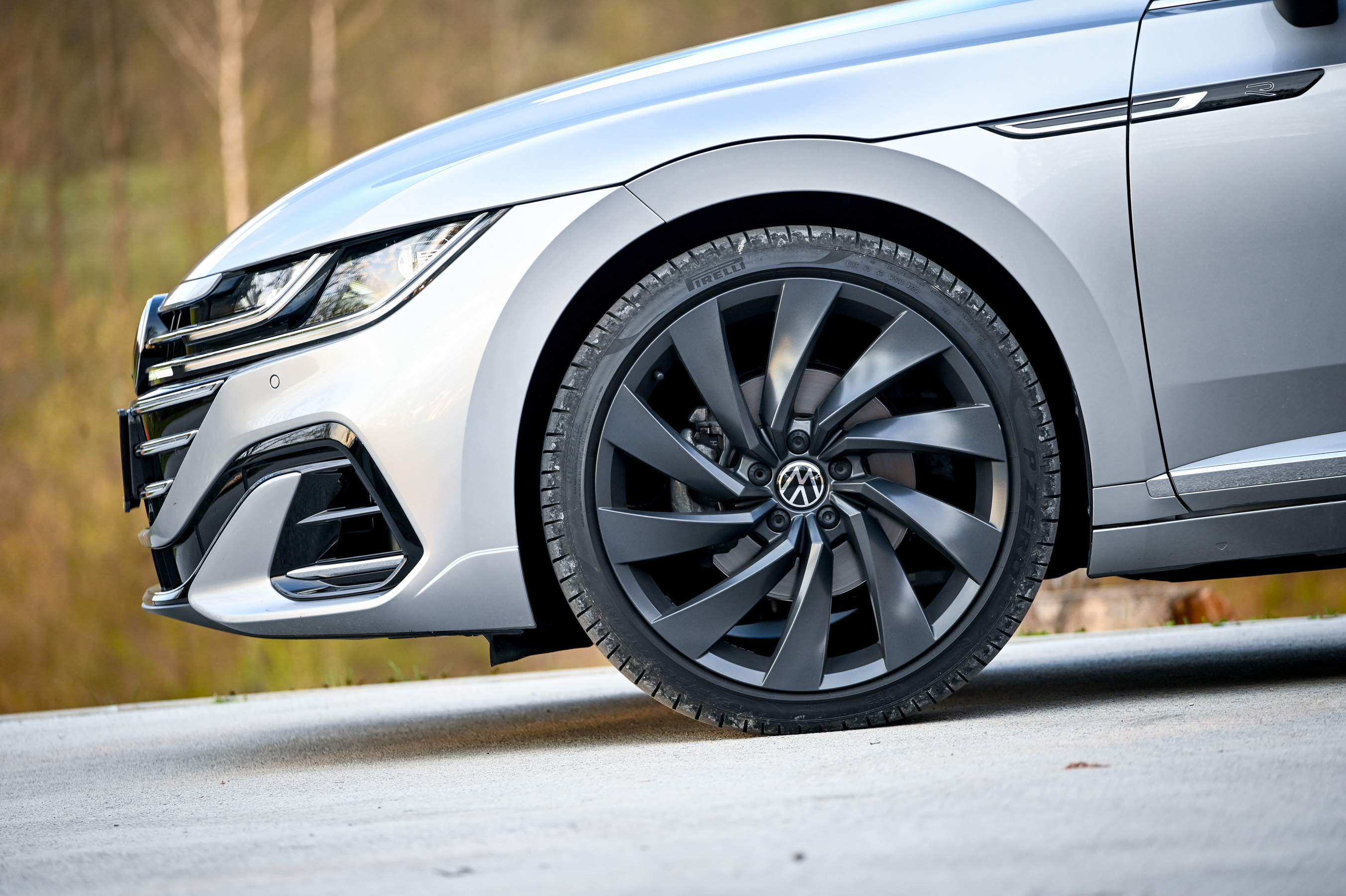 Že omenjena 20-palčna kolesa - za katera je treba doplačati, saj je arteon R-line serijsko opremljen z 18-palčnimi - poudarijo športni videz, a malce pokvarijo vozno udobje. Ostrejše cestne robove nizkopresečne pnevmatike prenesejo na potnike, še zlasti ob vklopljenem športnem programu sistema za dinamično uravnavanje podvozja (za katerega je treba prav tako doplačati). Sicer pa je arteon natančno in lahkotno vodljiv avto, ki ga lahko tudi zelo športno zapodimo med ovinke in serpentine: suvereno se drži začrtane linije. S skoraj 1,8 tone ni peresno lahek, a dobro skriva svojo maso.