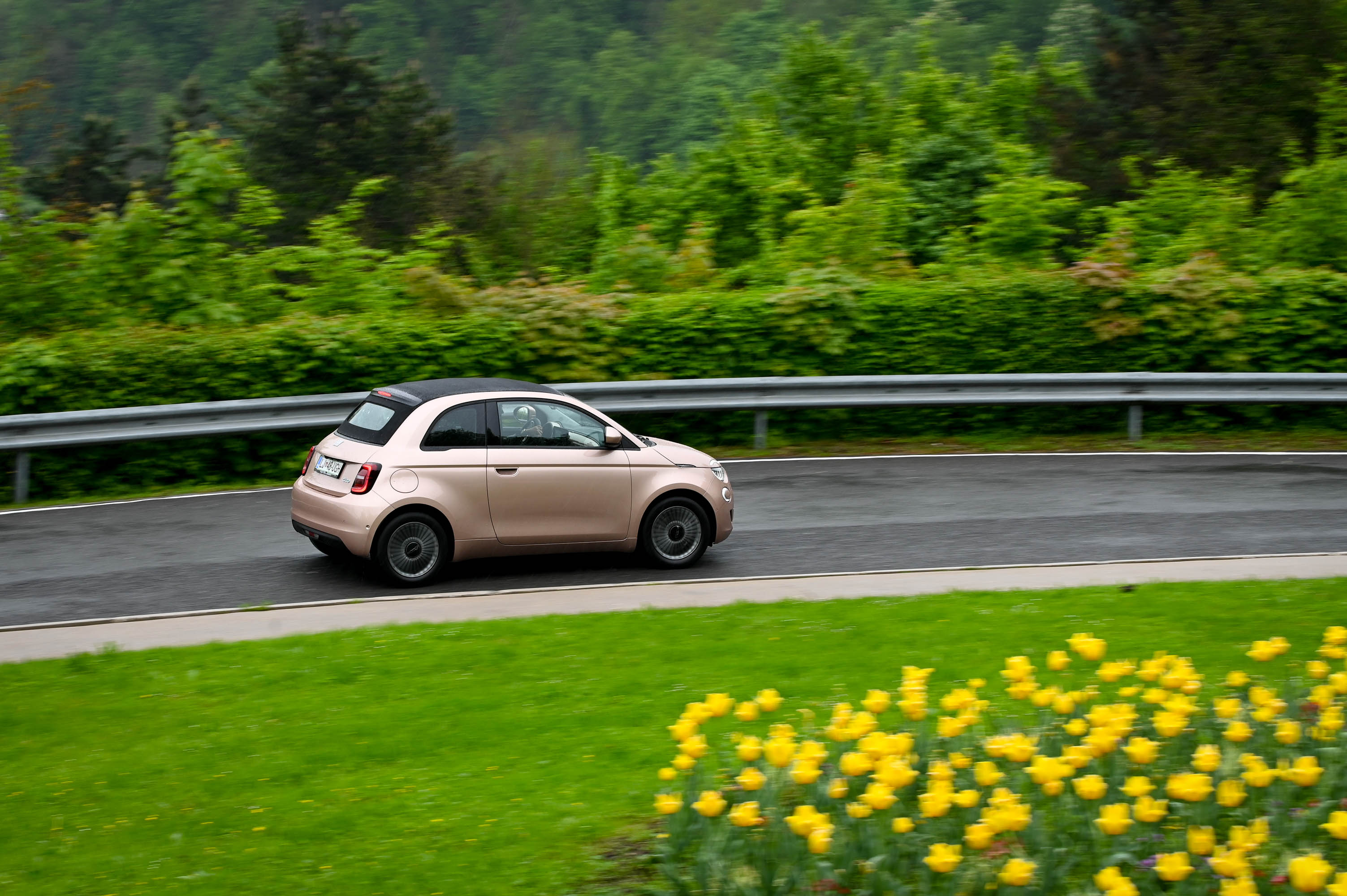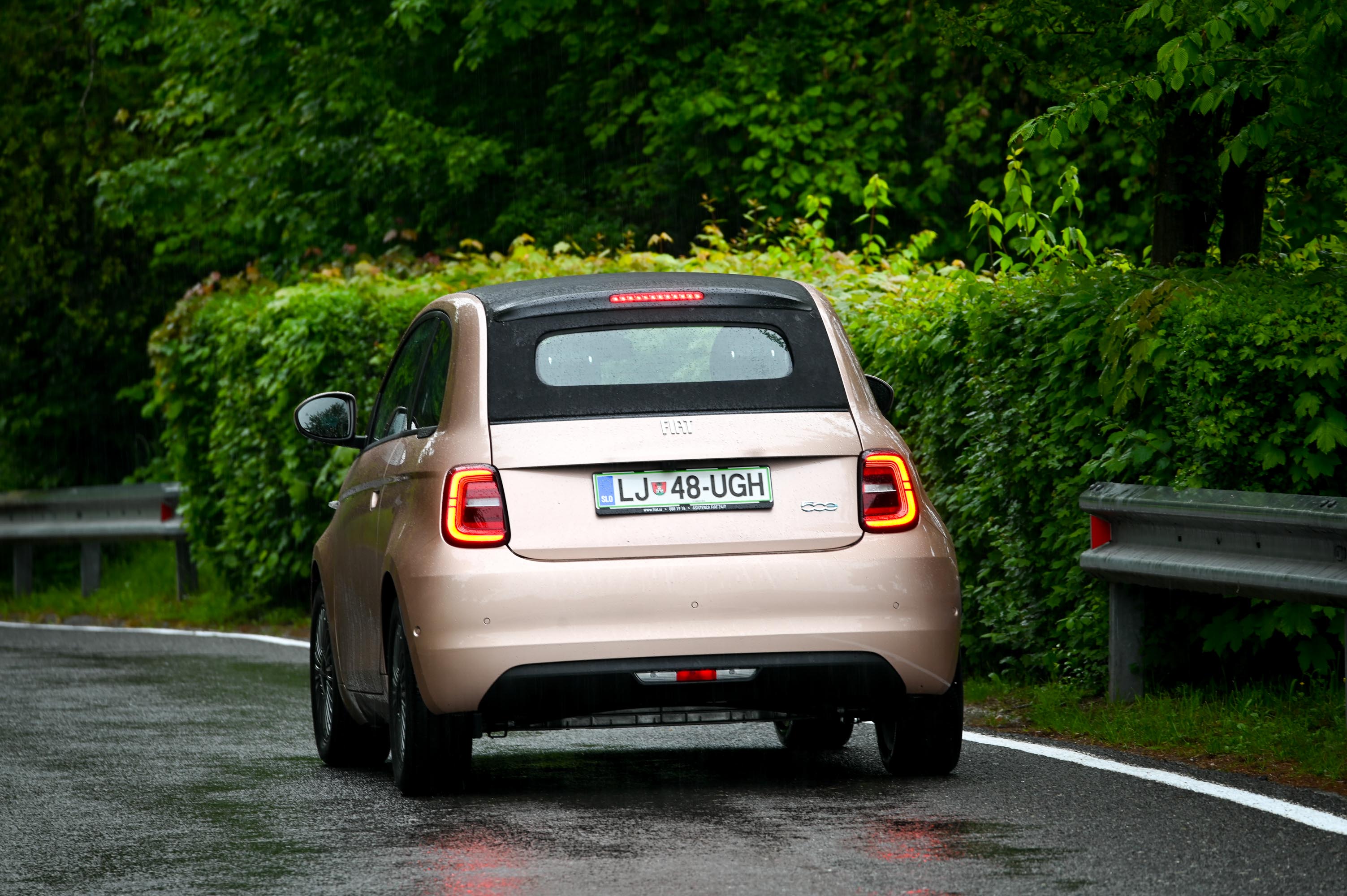 Tej trditvi po nekajdnevni vožnji z električni fiatom 500e prikimamo tudi mi. Prvič smo vozili električnega kabrioleta in lahko povemo, da je veter v laseh s tihim pogonom brez izpuha še bolj doživet. Ob spuščeni platneni strehi vas bo v tem fiatu 500e vleklo iz mesta med ovinke manj prometnih podeželskih cest. Občutek za volanom je res dober: kot da bi jadrali skozi pokrajino. Stik z okolico je pristen. Poleg tega hipno podanih 220 Nm navora zagotavlja precej vozniških nasmehov, sploh ker avto zelo dobro drži stik s cesto. Kar z 294 kilogrami akumulatorski celic so obtežili dno vozila, da so zagotovili 37,3 kWh neto električne energije izključno za pogon prednjih koles. Težo so razporedili zelo natančno in znižali težišče ter dobro nastavili podvozje oziroma vzmetenje. Fiat 500e se ne boji ovinkov in ob dinamični vožnji zelo dobro skriva 1330 kilogramov. 185-litrski prtljažnik še vedno ponuja več prostora kot večina potovalnih kovčkov na motociklih. S povprečno porabo med 14,1 kWh in 15,7 kWh elektrike na 100 km se je mogoče brez postankov za polnjenje podati 260 km daleč, če ne lovite hitrostnih rekordov na avtocestah. Tudi na štiripasovnici je mali fiat povsem suveren, le zaloga elektrike pri 130 km/h kopni precej hitreje kot na podeželski cesti. Sicer pa se strinjamo s Špelo, da je fiat 500 odličen mestni avto, ki je prilagojen tudi za potovanje. Elektrika pri tem ni ovira. Na javni polnilnici bo zaloga energije v celoti povrnjena v dobrih štirih urah. Pa še to: na tisti deževen majski dan smo s Špelo pogumno odprli streho in v zatišju med nevihtami ujeli celo nekaj sončnih žarkov. Ko se je spet “ulilo kot iz škafa”, nas je digitalni vmesnik hitro pozval, naj pozorno spremljamo cesto, saj Fiatov digitalni sovoznik - kot imenujejo varnostne sisteme umetne inteligence - ne vidi več dobro. V tem avtu smo to razumeli kot pelji me, da te lahko zapeljem. Italijani neradi zapuščajo cono udobja, tudi to je del unikatne zgodbe tega avtomobila.
