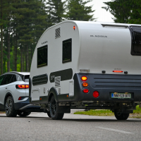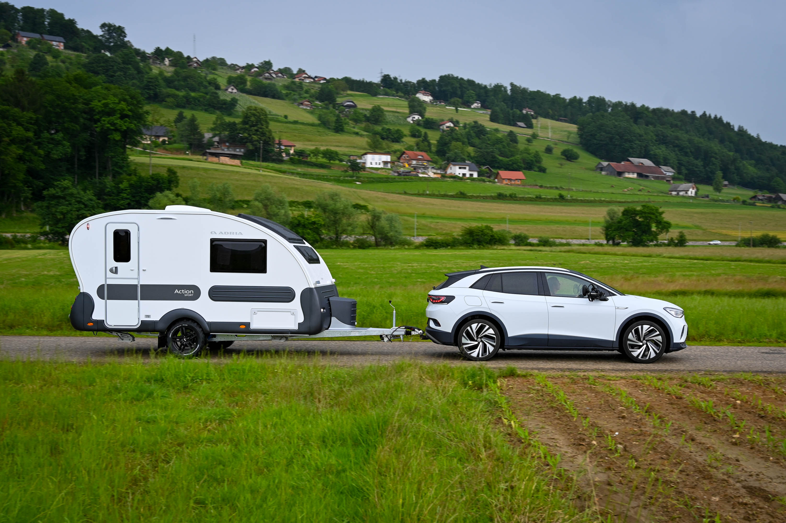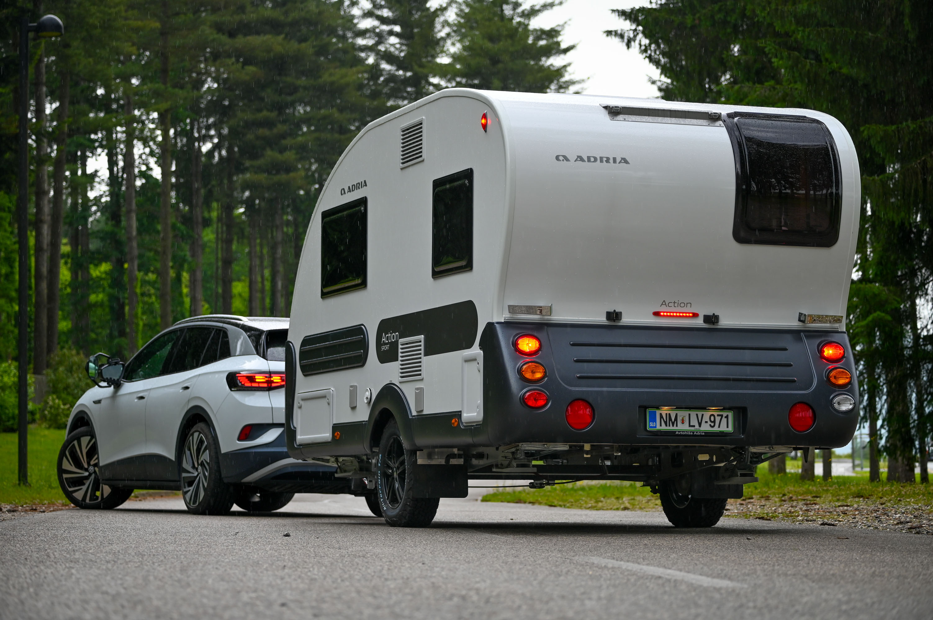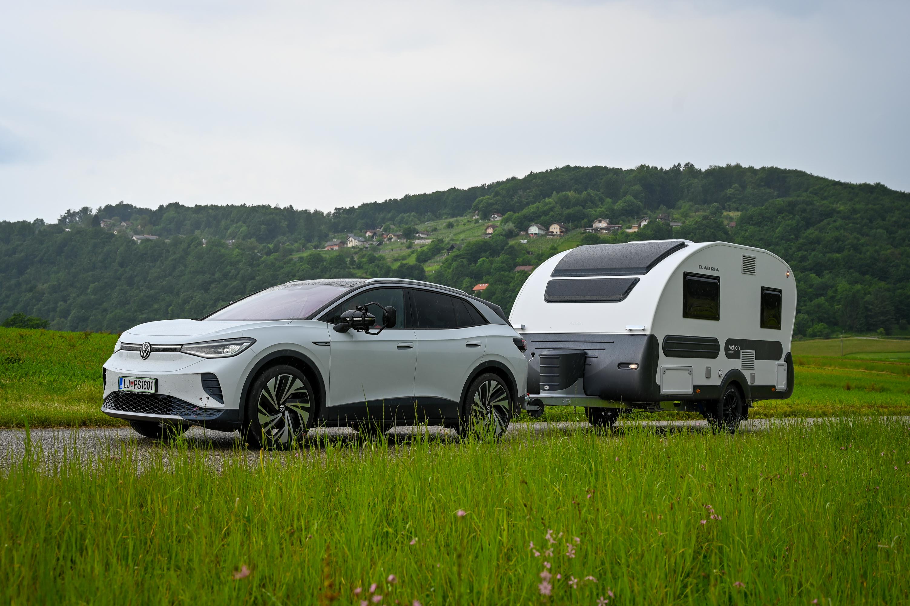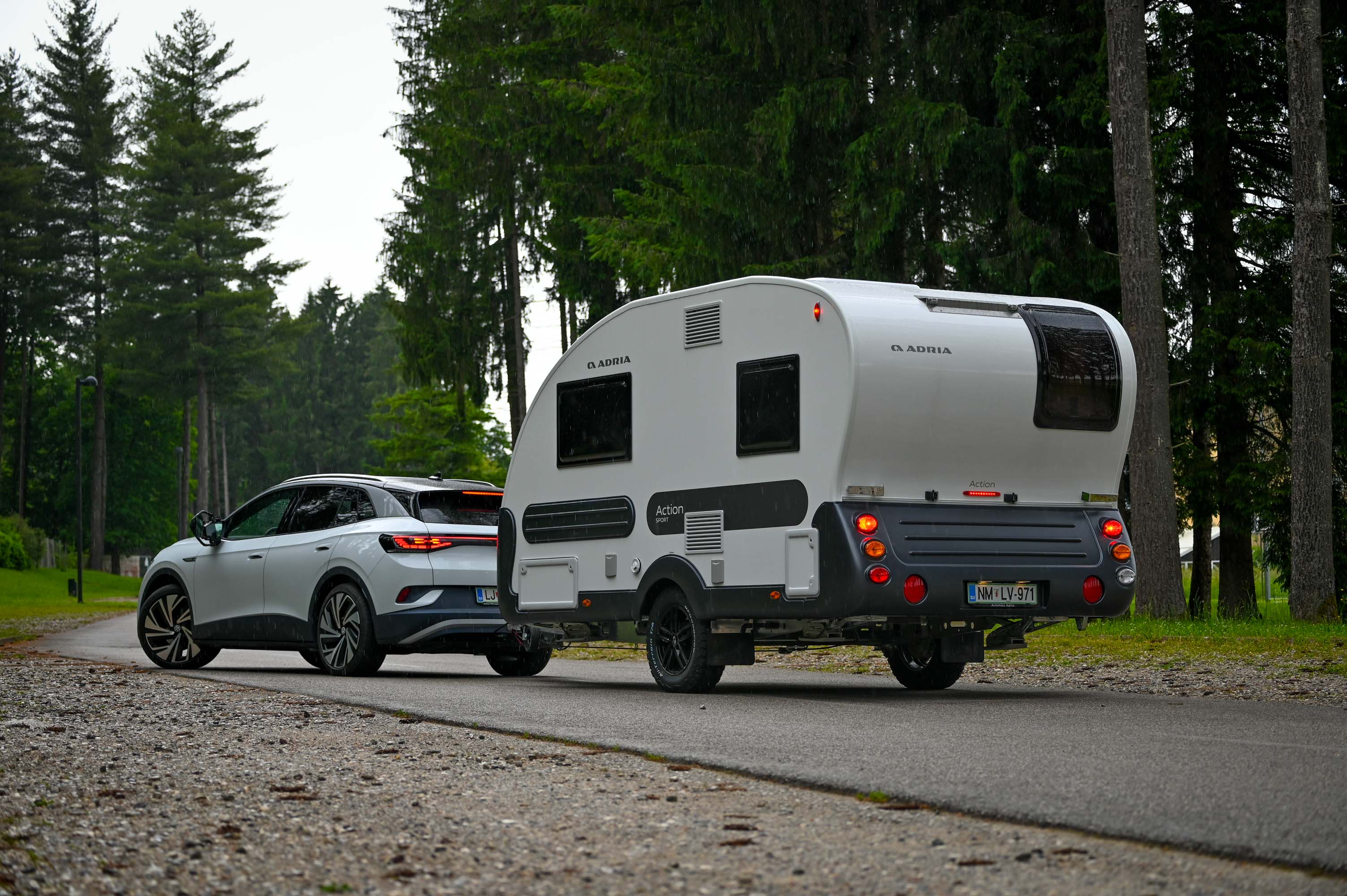 Kaj pa doseg? Aerodinamično oblikovana adria action prikolica je z 245 centimetri višine klub vsemu izdatno povečala zračni upor in posledično potrebe po elektriki. Pri avtocestni potovalni hitrosti (100 km/h) smo v povprečju zabeležili porabo 23,8 kWh na 100 km. Na podeželski cesti je poraba padla na 20,1 kWh. Izračun pokaže, da bi ID.4 ob 320-kilometrskem dosegu hišo na kljuki vendarle brez postanka pripeljal do morja, kar je nov mejnik elektromobilnosti - psihološki in praktični.