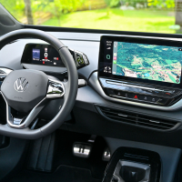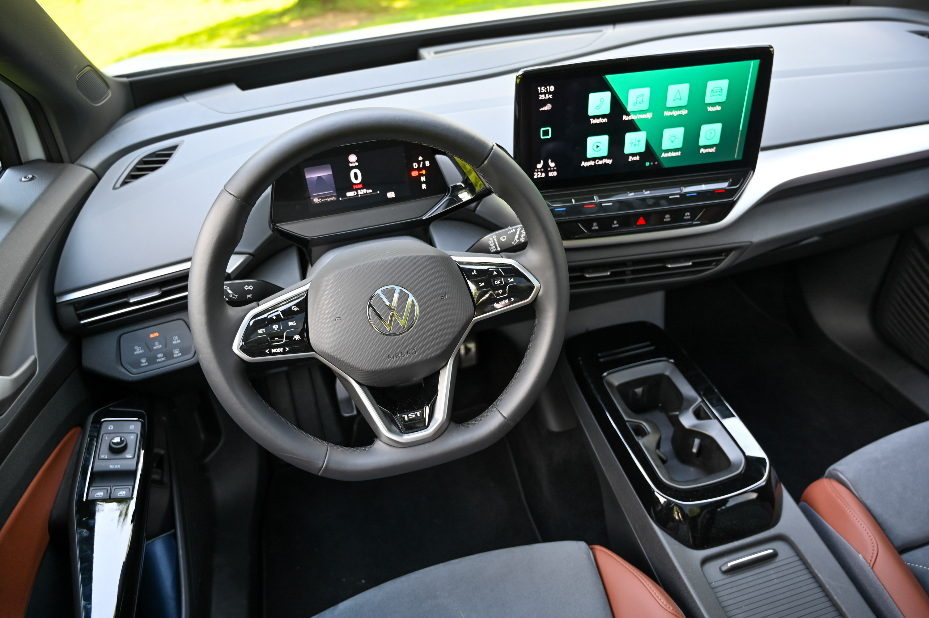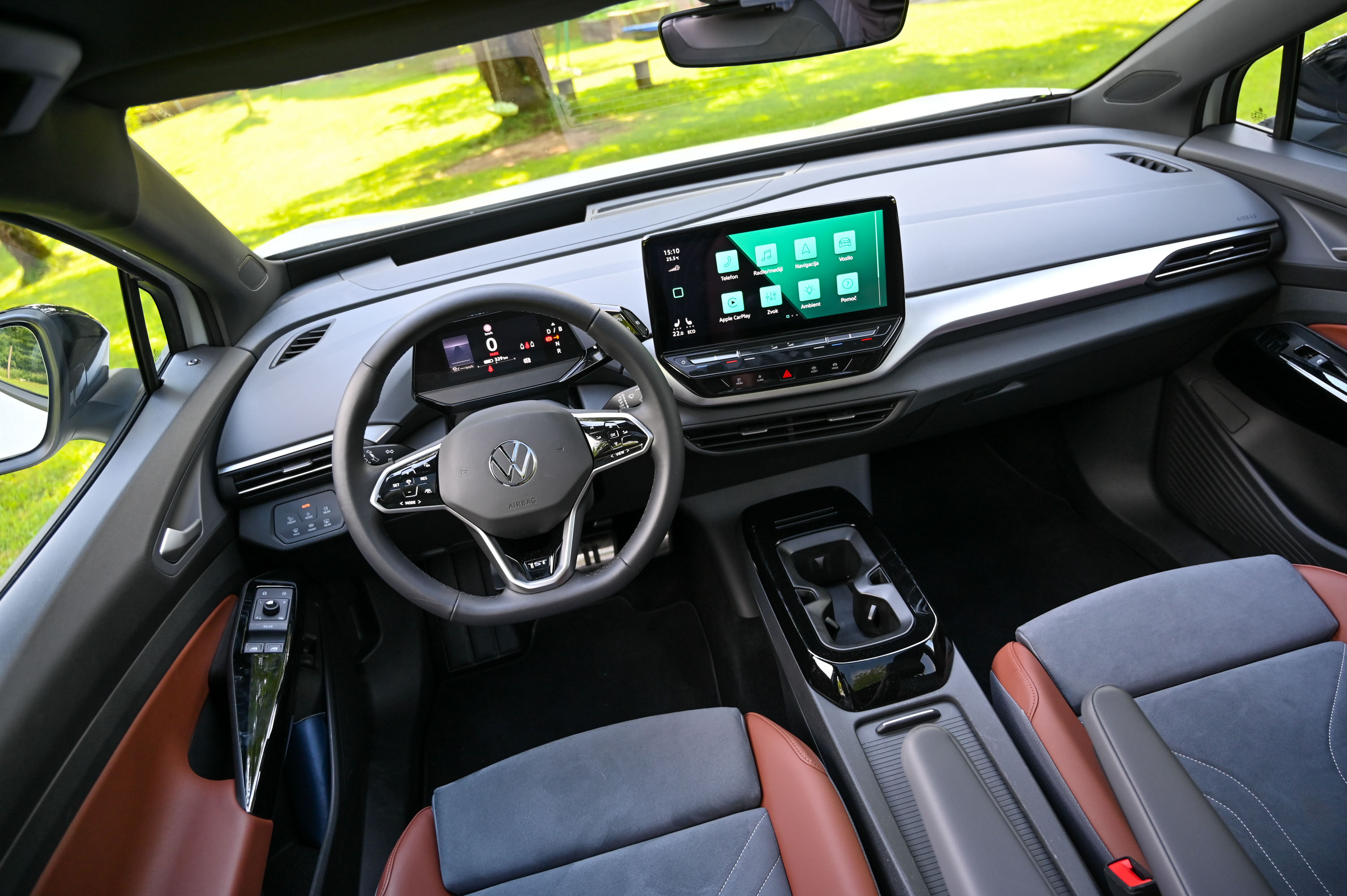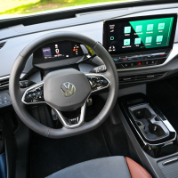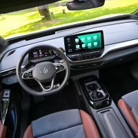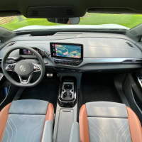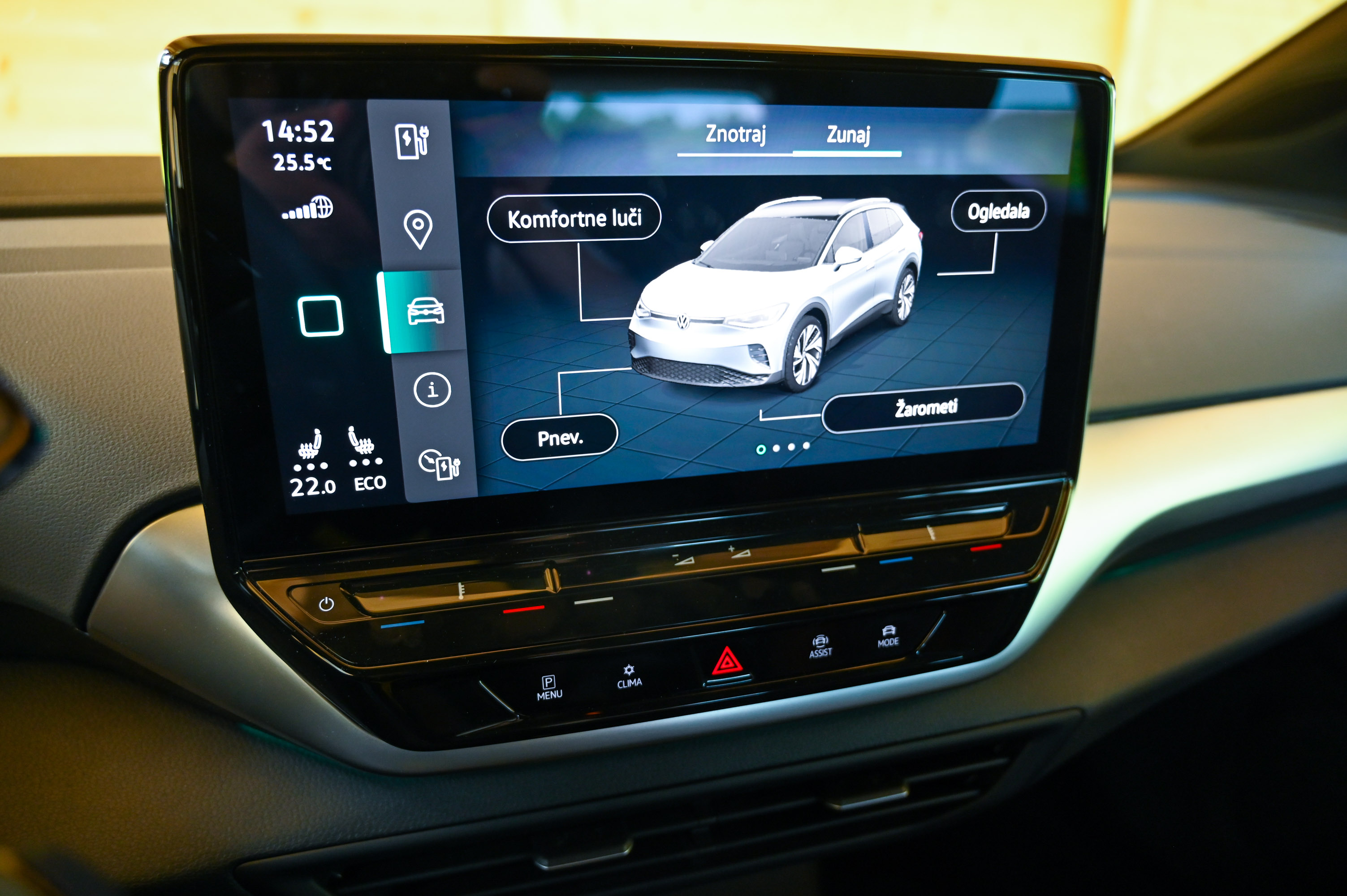 Povsem digitalna zasnova merilnikov s preprosto oblikovano armaturno ploščo še vedno deli mnenja. Digitalizacija, ki spremlja Volkswagnovo elektrifikacijo, ima še precej rezerve v odzivnosti in stabilnosti programske opreme, ki skrbi za komunikacijo in zabavo ter nadzira dogajanje na osrednjem zaslonu. Bolj analogno usmerjeni vozniki utegnejo imeti še vedno nekaj težav s kompleksnimi izbirniki in bližnjicami na dotik za upravljanje nekaterih najbolj osnovnih funkcij … Voznikovo okolje je brez stikal, umetna inteligenca pa s svojo ustrežljivostjo nekaj zmede povzroči že pri zagonu vozila. Takoj, ko voznik sede na svoje mesto, se avto samodejno pripravi na vožnjo in seveda neslišno vklopi tudi električni pogon. Zagonsko stikalo pa je še vedno na voljo - marsikdo ga bo pritisnil in pravzaprav izklopil avto, ko ga bo hotel zagnati. Drobni zeleni napis ready (pripravljen) bo marsikdo spregledal. Pripombo si zasluži tudi ergonomsko ne najbolj posrečen vmesnik menjalnika, pohvalo pa številna uporabna odlagalna mesta in dober sedežni položaj voznika.