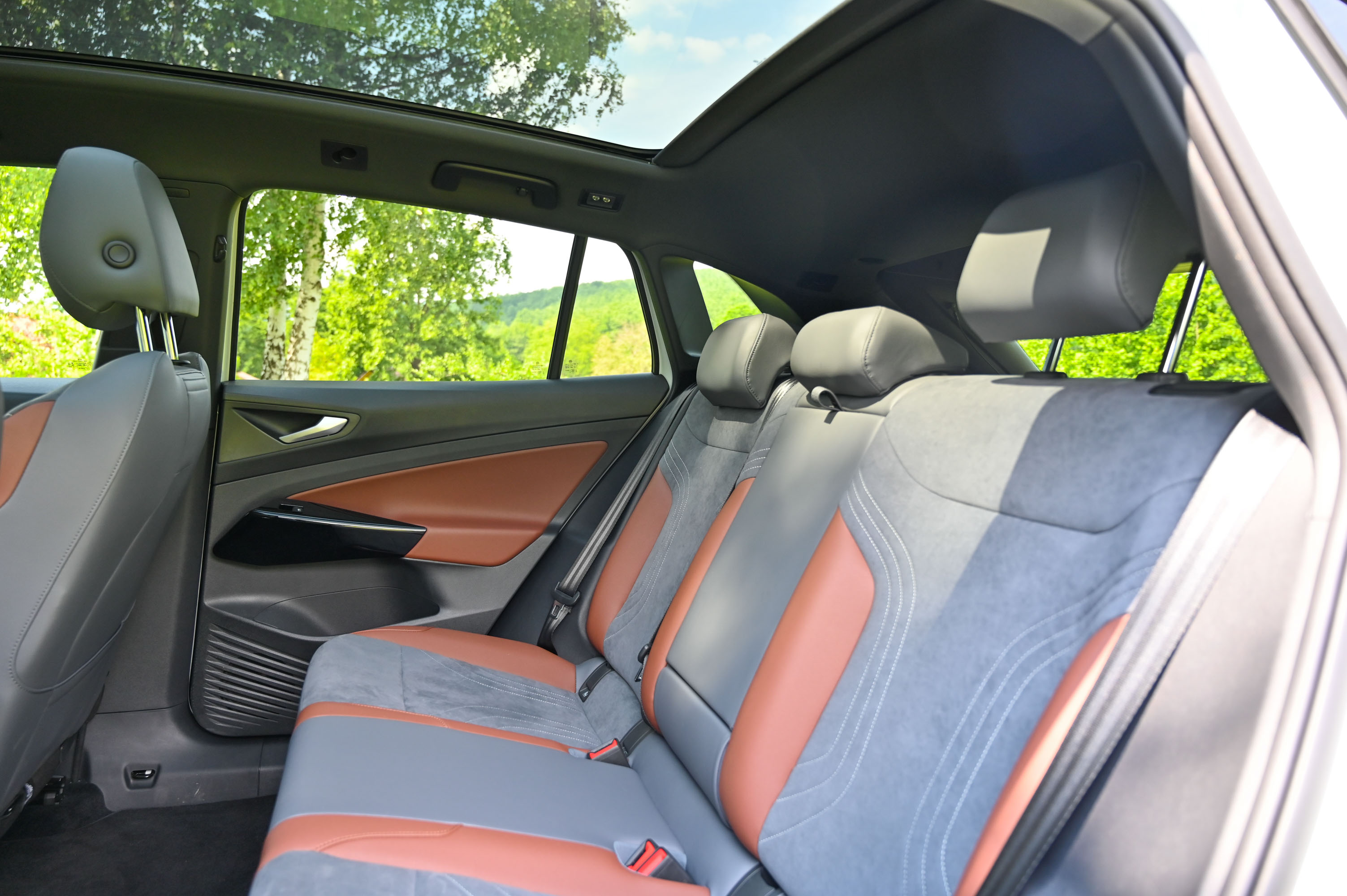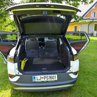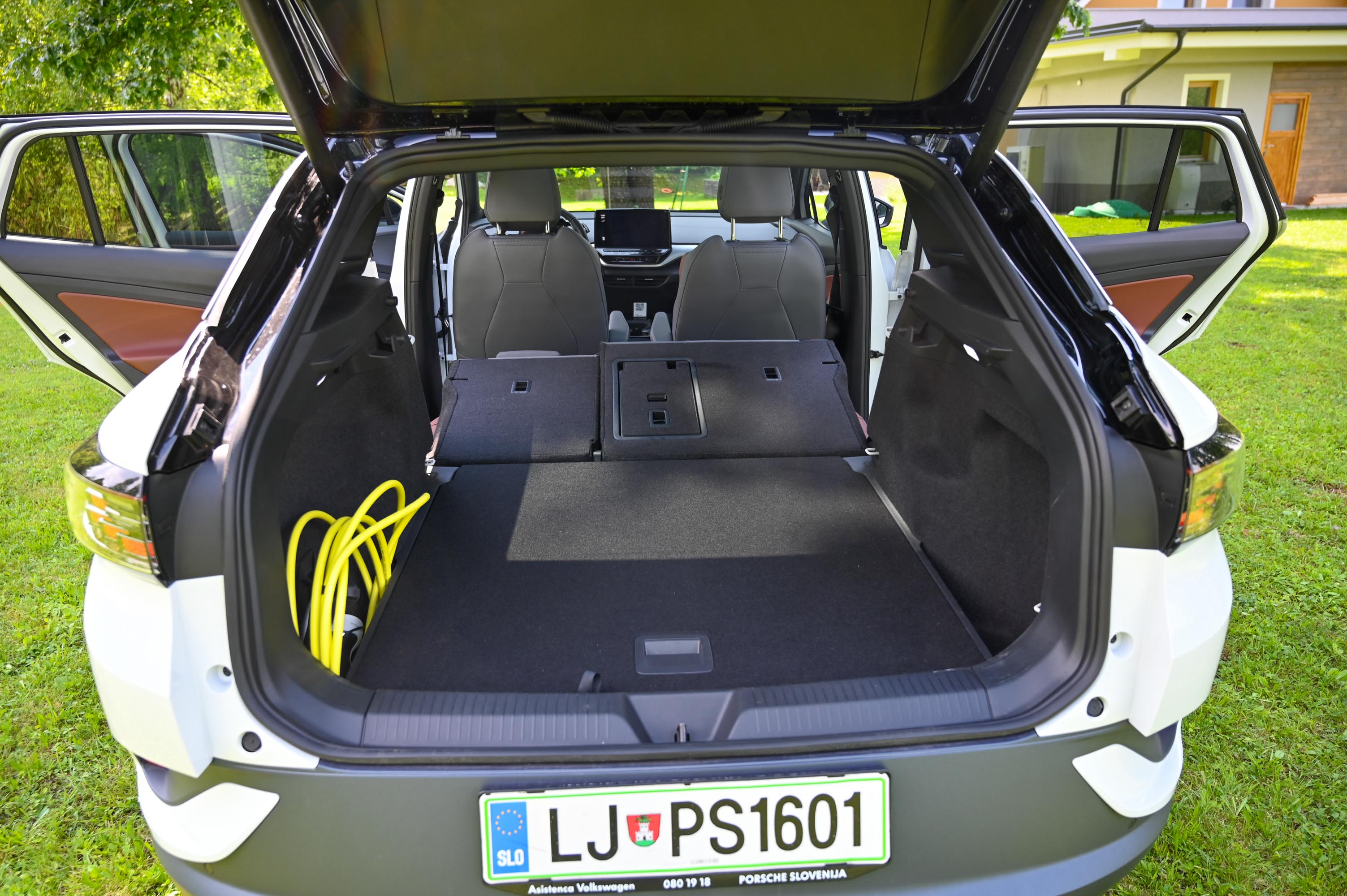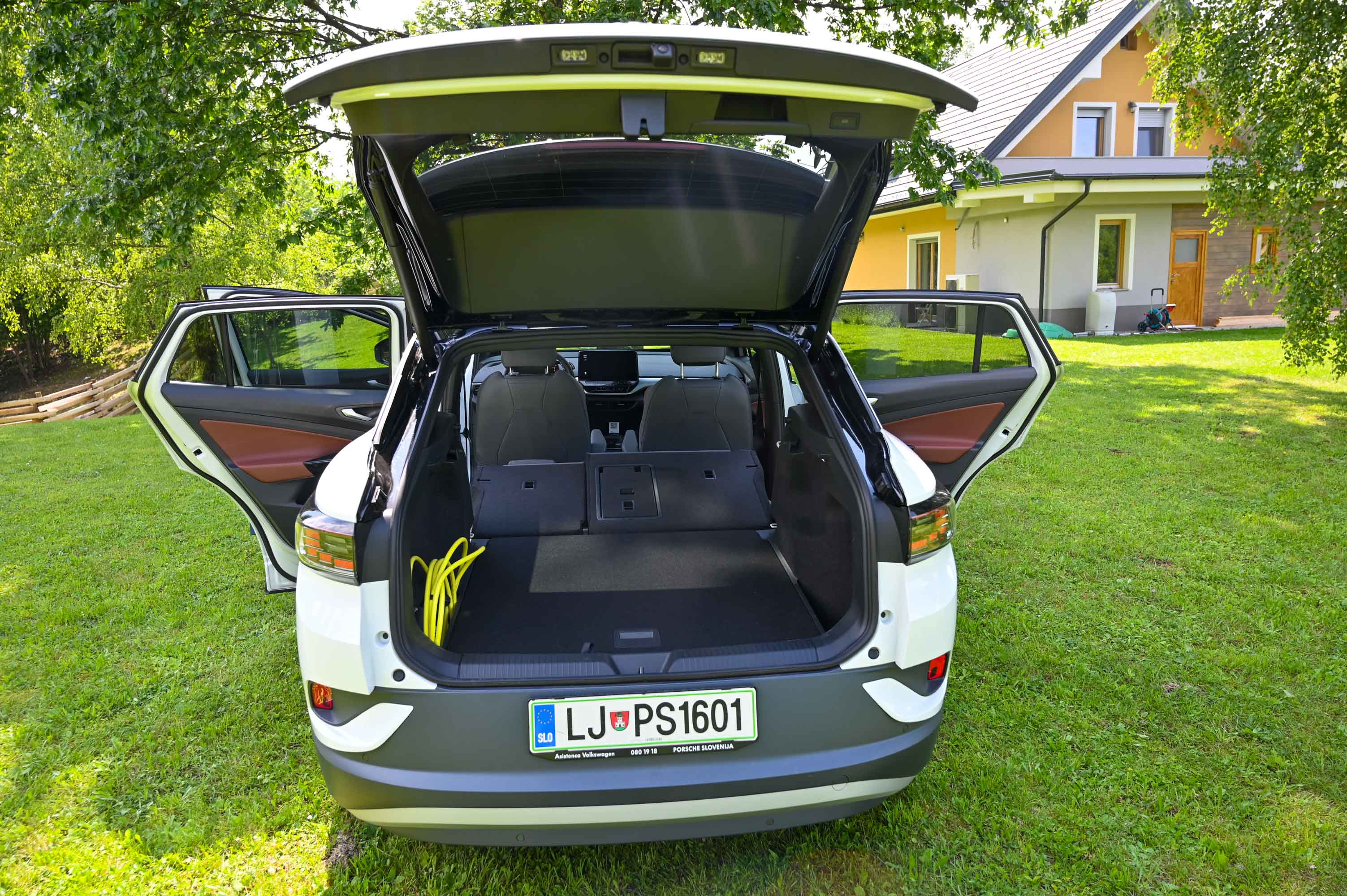 Pred dobrimi desetimi leti, ko so na ceste začeli prihajati prvi električni avtomobili, je le malokdo zares verjel, da bo avto z električnim priključkom zmožen zagotoviti vse ključne naloge osebne mobilnosti. Volkswagen je pri snovanju svojega prvega električnega križanca ID.4 odlično izkoristil prilagodljivo karoserijsko osnovo MEB, ki so jo razvili za električni pogon. Naredili so nadpovprečno prostoren družinski avto, ki ima vgrajeno dovolj zmogljivo energetsko shrambo, da družinska mobilnost ni omejena. Prvi član Volkswagnove električne družine, kombilimuzinski ID.3 naj bi prinesel prostorsko revolucijo v golfov razred in ponudil nadpovprečno prostoren kompakten električni avtomobil. A o prostorskem čudežu pri njem še vedno ne moremo govoriti, saj tudi v neposredni primerjavi z golfom ravno ne osupne s prostorom na zadnji klopi ali v prtljažniku. ID.4 pa v neposredni primerjavi z ostalimi volkswagni v srednjem velikostnem razredu veliko bolj očitno in prepričljivo podčrtuje prostorske prednosti nove električne platforme MEB. Avto je dobrih 30 centimetrov daljši od kombilimuzinskega ID.3, a sta z medosno razdaljo praktično poravnana. Kljub temu ID.4 z dolžino malce manj kot 4,6 metra res navduši s prostorno kabino in bogato odmerjenim (543 l) in lahko dostopnim prtljažnikom. Na zadnji klopi tudi trije odrasli potniki, višji od 180 cm, ne bodo imeli težav s prostorom za kolena ali glave. Dno kabine je povsem ravno, zato je tudi na sredinskem delu klopi mogoče brez težav potovati na daljše razdalje. Poleg prostornosti velja pohvaliti tudi preglednost kabine in v primerjavi z ID.3 tudi večjo oddaljenost od tal. Avto je od ceste oddaljen terenskih 21 cm, kar poenostavlja udobje pri vstopanju v avto in izstopanju iz njega.