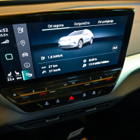 V času 14-dnevnega testa smo skoraj vsak delovni dan z ID.4 prevozili 160 kilometrov, od tega dobrih 130 km po avtocesti, a avtomobila nismo vsak dan priključili v električno omrežje. Testne kilometre smo res prevozili v idealnih temperaturah za električni pogon, a smo se hkrati po avtocesti vozili z največjo dovoljeno hitrostjo in se seveda nismo odrekli polnemu delovanju klimatske naprave. Brez prilagajanj smo z enim polnjenjem akumulatorja - upoštevajoč zadostno energetsko rezervo, da si na poti do cilja oziroma vtičnice nismo grizli nohtov - prevozili 426 kilometrov. Na testu smo v povprečju na 100 kilometrov porabili 16,9 kWh električne energije. Z malce bolj umirjenim tempom na avtocesti in vklopu eko voznega programa bi upali sprejeti tudi izziv 500-kilometrske etape. V zimskih temperaturah bi se zaradi ogrevanja kabine in akumulatorja povprečna poraba verjetno povzpela na okoli 19,5 kWh, kar bi bilo še vedno dovolj za več kot 350-kilometrski doseg z upoštevanjem zlate rezerve. Na zimo je avto sicer dobro pripravljen z učinkovito toplotno črpalko, za katero pa je celo pri izdatno opremljeni različici 1st max še vedno treba doplačati 1264 evrov. Pri nekaterih tekmecih je ta pomemben element udobja in učinkovitosti, ki neposredno vpliva tudi na doseg, del serijske opreme. Na našem testu smo doma za dopolnjevanje uporabljali povsem običajno hišno vtičnico. Ta v eni noči poskrbi, da ima ID.4 zjutraj novih 100 kilometrov dosega. Kdor razmišlja o električnem avtomobilu kot edinem avtu, mora torej imeti doma na voljo vtičnico, lastniška izkušnja pa bo še boljša, če bo doma tudi hišna polnilnica z ustrezno močjo hišnega priključka. Serijsko vgrajeni 11-kilovatni AC polnilnik je na naši uredniški polnilnici deloval dobro in energijo prenašal z obljubljeno močjo. V praksi je to pomenilo, da je večina polnjenj trajala približno 5 ur, ker avta nismo skoraj nikoli vklopili v omrežje z manj kot 30-odstotno zalogo preostale energije v akumulatorju.