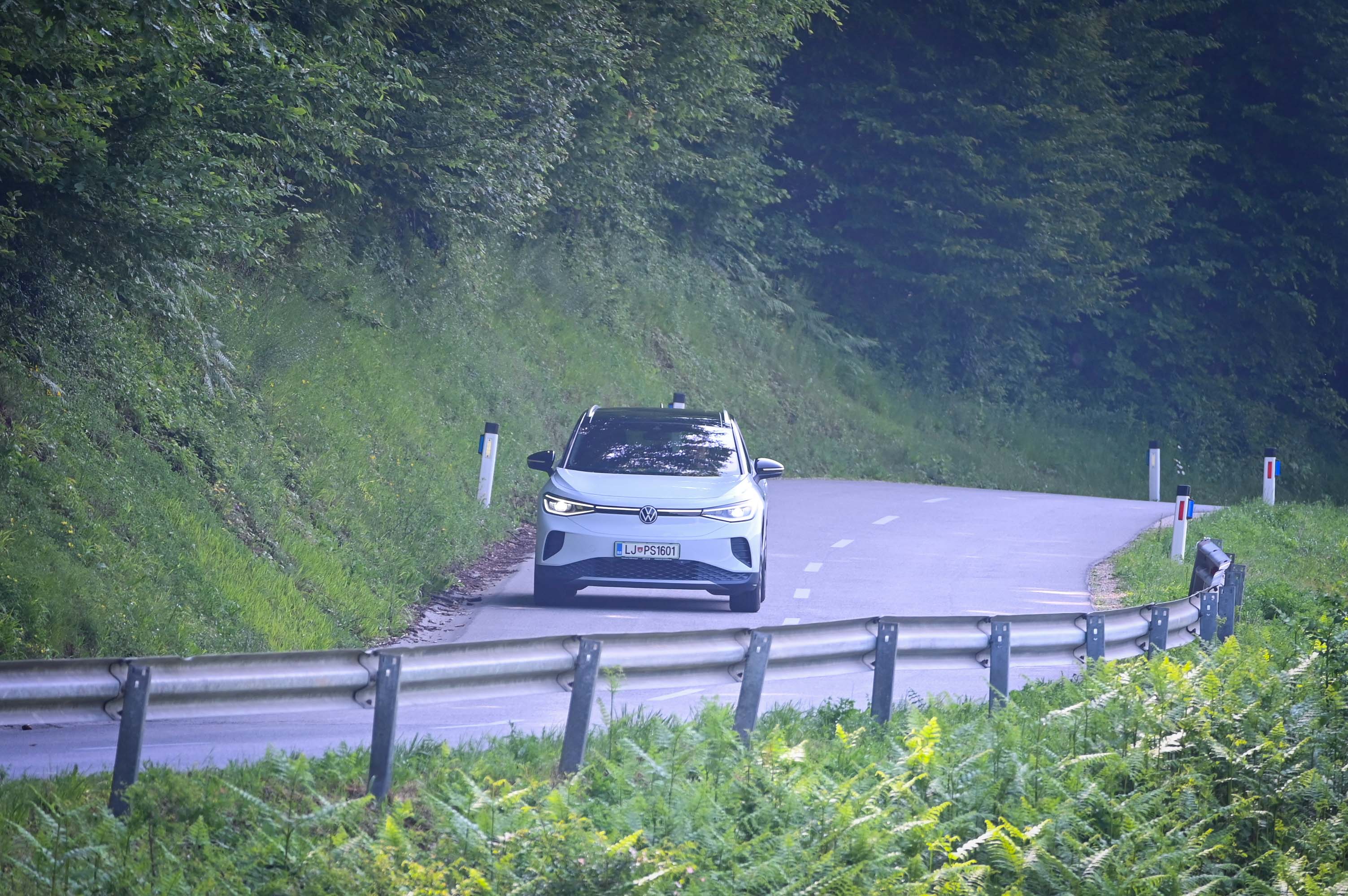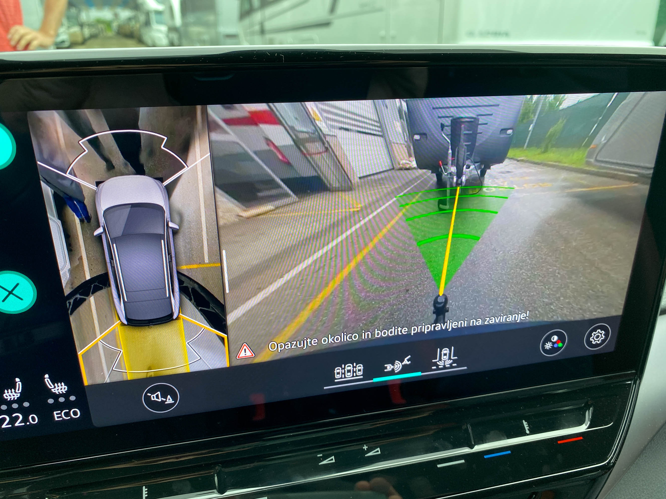 ID.4 z zadnjim pogonom in več kot dvema tonama lastne teže predstavlja zelo dobro osnovo za vleko. Če k temu dodamo še izredno natančno in hipno podajanje navora ter zadostno konično moč električnega motorja, ki v 30 sekundnem intervalu zadnji kolesi preko vzdržljivega reduktorskega menjalnika požene s kar 150 kW moči, je hitro jasno, da je ID.4 potovalno prikolico potegnil tako lahkotno kot električna lokomotiva prazne vagone. Vlečna vozniška izkušnja je bila naravnost odlična, saj vse poteka zelo uglajeno. Avto ima 493 kilogramov težko energetsko shrambo nameščeno v dnu karoserije po celotni površini med prednjimi in zadnjimi kolesi, zato je težišče nizko, teža pa je uravnoteženo razporejena. Vse skupaj z odličnim podvozjem in vzmetenjem, katerega prva naloga je udobna vožnja, vleko prikolice dviguje na novo raven. Na osrednjem zaslonu smo ob uporabi elektrodinamičnega zaviranja, ki že pri običajni vožnji zmanjšuje obremenitev zavor, pri vleki pa jih še manj obremenjuje, opazili tudi povečano moč rekuperacije ob zaviranjih.