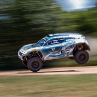 Ko smo dve ali tri sekunde po štartu dojeli surovost odriva Cuprinega novega dirkalnika serije ekstremnih dirk Extreme E, pa je tako ali tako že zmanjkalo razbrazdane ravnice. Dakarska veteranka Jutta Kleinschmidt je v silovitem naletu s skandinavskim nihajem že lovila idealno linijo prvega ovinka na 1,2 kilometrski stezi terenskega dirkališča Nasser circut. Od zunaj je bilo vse skupaj videti kot peščeni vihar brez grmenja.