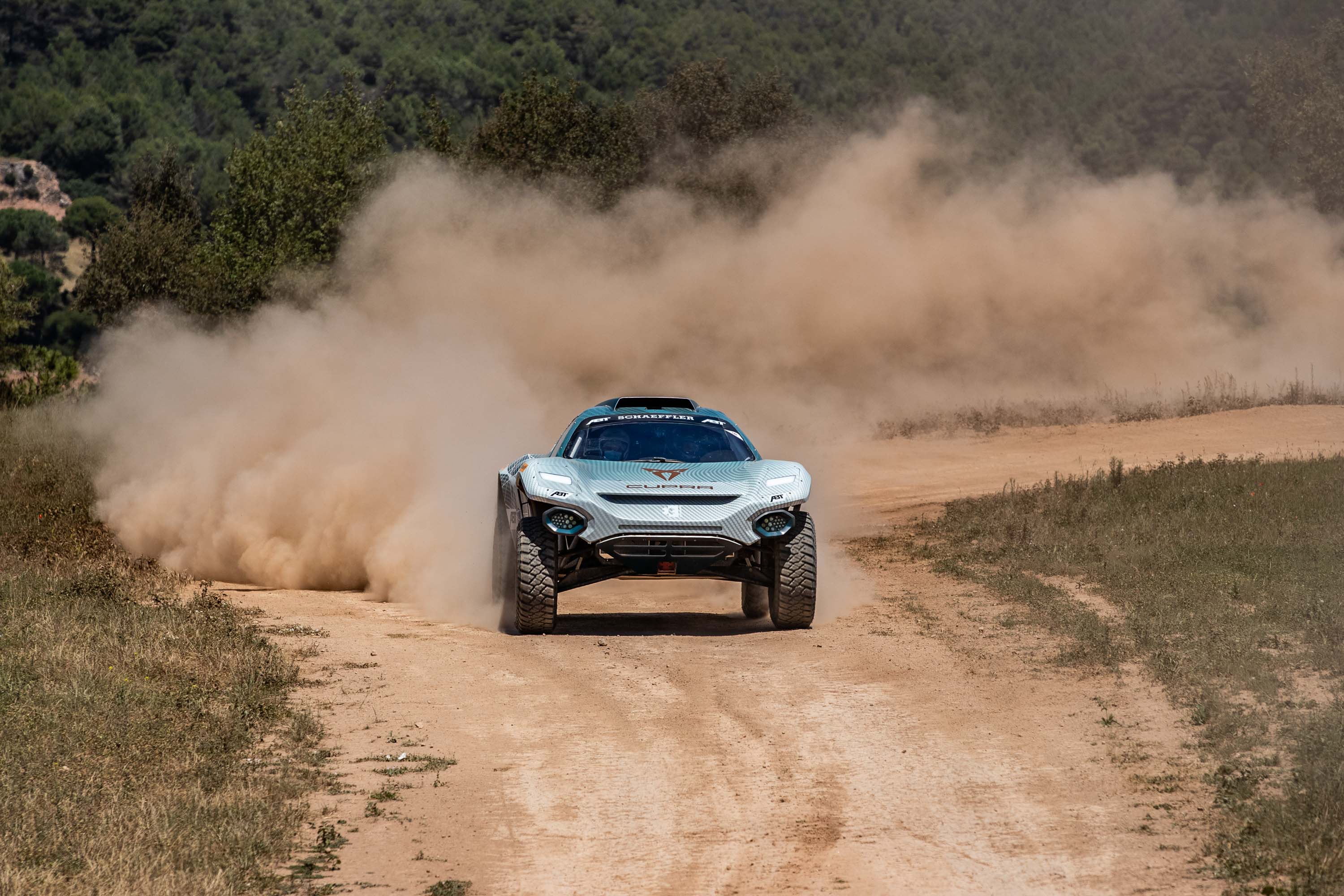 Trenutek, ko na vsa štiri kolesa kot strela z jasnega udari 920 Nm električnega navora, namesto rohnenja V8 stroja pa se ob bliskovitem pospeševanju sliši le bobnenje kamenja po karbonu in pritajen zvok pogona, ki spominja na prizor iz vesoljske sage Vojna zvezd, je tako osupljivo drugačen, da možgani ob silovitem napadu na čutila potrebujejo trenutek ali dva, da sestavijo zavedanje, kaj se sploh dogaja. Na sovozniškem sedežu Cuprinega električnega dirkalnika se nam je zdelo, da smo v središču peščenega viharja.