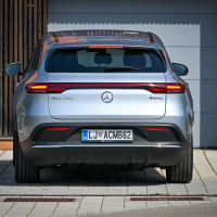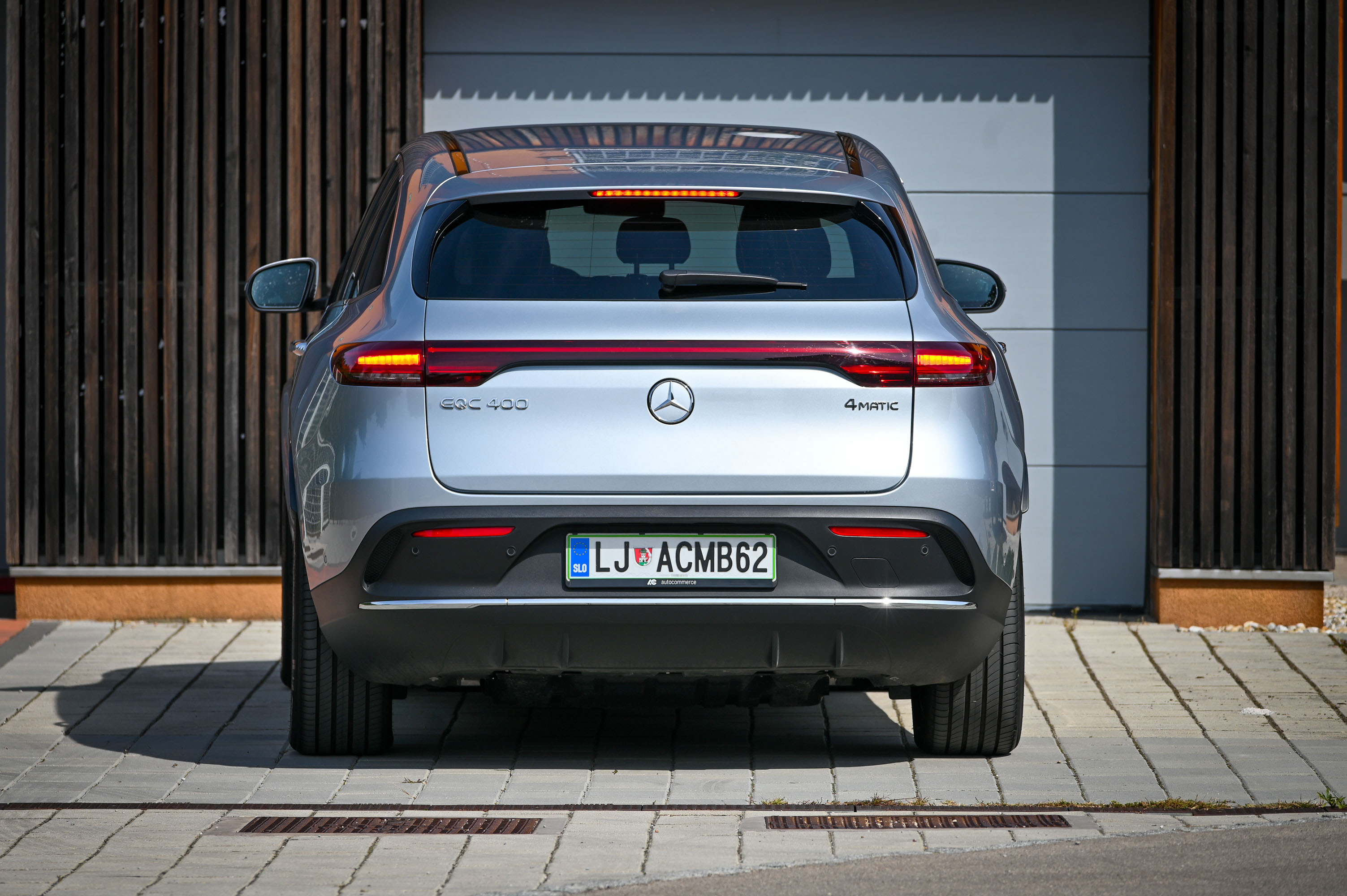EQC odlikuje skladna in aerodinamično izpiljena oblika, kjer eleganco spredaj in zadaj preko celotne širine podčrtujeta LED svetlobni premici, ki povezujeta žarometa oziroma zadnje luči. Zaradi dveh elektromotorjev, ki na vsa štiri kolesa skupaj hipno dostavita kar 765 Nm navora in voznika razvajata z veliko zalogo moči, avtu pristoji tudi športni karoserijski videz paketa AMG, za katerega je treba sicer odšteti 1500 evrov. Priznamo, da je ob tako suverenem podajanju moči in navora težko ostati ravnodušen. Prehitevanja so varna, saj se avto odziva hipno. Vozniški nasmeh je še toliko širši, ker zmogljiva elektronika osupljivo natančno, bliskovito hitro in zelo suvereno prenaša vlečno moč na podlago. Vsaka os ima svoj motor z reduktorskim menjalnikom in visokonapetostnim krmilnikom.