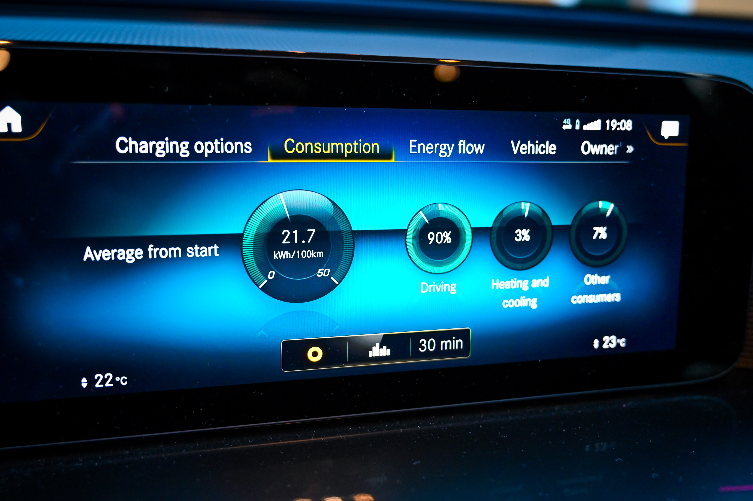 Voznik ima pred seboj velika in dobro odzivna zaslona. Za upravljanje varnostnih sistemov, povezanih z vožnjo, rok ni treba umakniti z volana. Kdor govori katerega od svetovnih jezikov, preko znanega MBUX vmesnika lahko veliko opravi z nagovorom “Hej, mercedes”. K odličnemu počutju pripomorejo tudi udobni sedeži, ki omogočajo tudi masiranje. Prometni stres učinkovito znižujejo odlično delujoči varnostni sistemi. Voznik ima tudi popoln pregled nad porabo in oskrbo z energijo.
