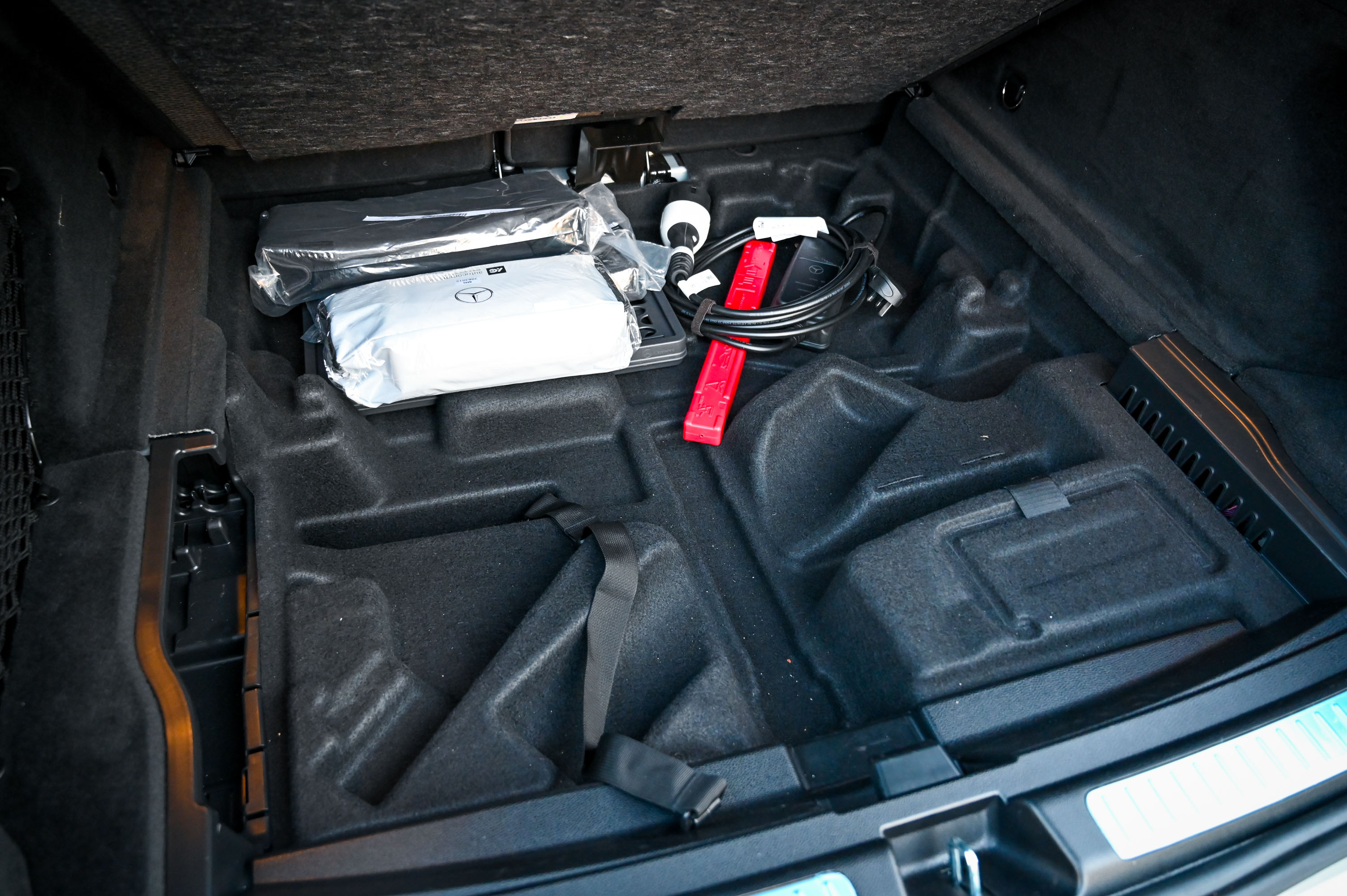 Še vedno pa mercedes EQC zelo visoko kotira s svojo prostorno in izjemno kakovostno izdelano kabino, uporabnim prtljažnikom in napredno oziroma uporabno digitalizacijo. Spredaj in zadaj se sedi zelo udobno. Pohvalimo še odlično preglednost in nekoliko plitek, a prostoren 500-litrski prtljažnik z dvojnim dnom, v katerem ima vsak omot kablov svoj predal. Hvalimo še poltonsko nosilnost in možnost vleke do 1,8 tone težke prikolice.