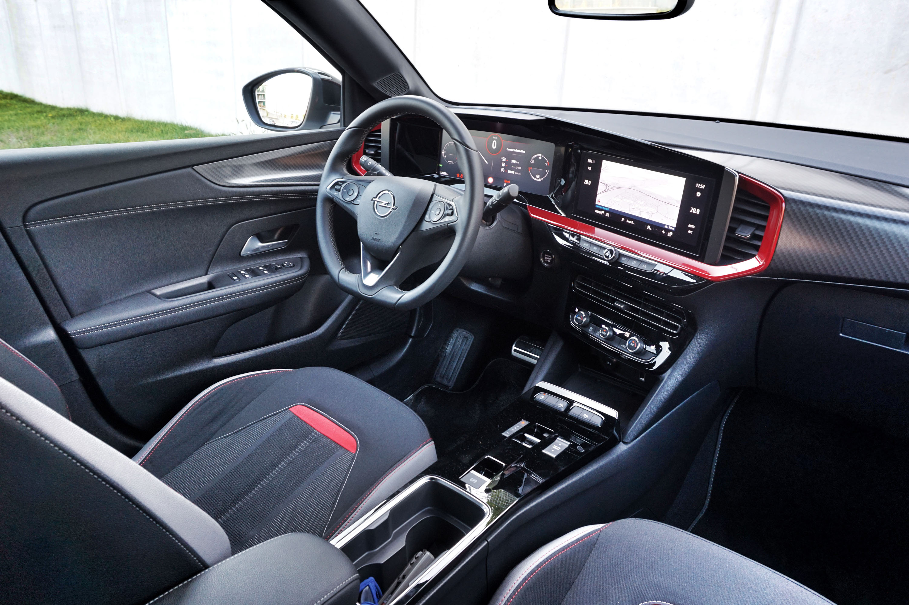 Mokka ne napoveduje videza in značaja prihajajočih Oplov le s svojo zunanjo podobo, pač pa tudi s svojo armaturno ploščo. Na njej kraljujeta dva zaslona, navidezno povezana v enega samega. Za razliko od večine drugih avtomobilov podobne zasnove so pri Oplu obrnili logiko uporabniške izkušnje: na digitalnem zaslonu na mestu merilnikov - na voljo je za doplačilo - so izpisane pomembnejše informacije za vožnjo - prikazuje se lahko zemljevid, navigacijski napotki, delovanje asistenčnih sistemov in še več, desni zaslon multimedijske naprave pa je namenjen upravljanju obstranskih funkcij - na primer audio sistema. Če k temu prištejemo še fizična stikala klimatske naprave in gumb za glasnost audio sistema, mokkina notranjost pusti dober vtis - navkljub malce zaspani odzivnosti uporabniškega vmesnika in veliko trde plastike na armaturni plošči.
