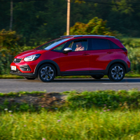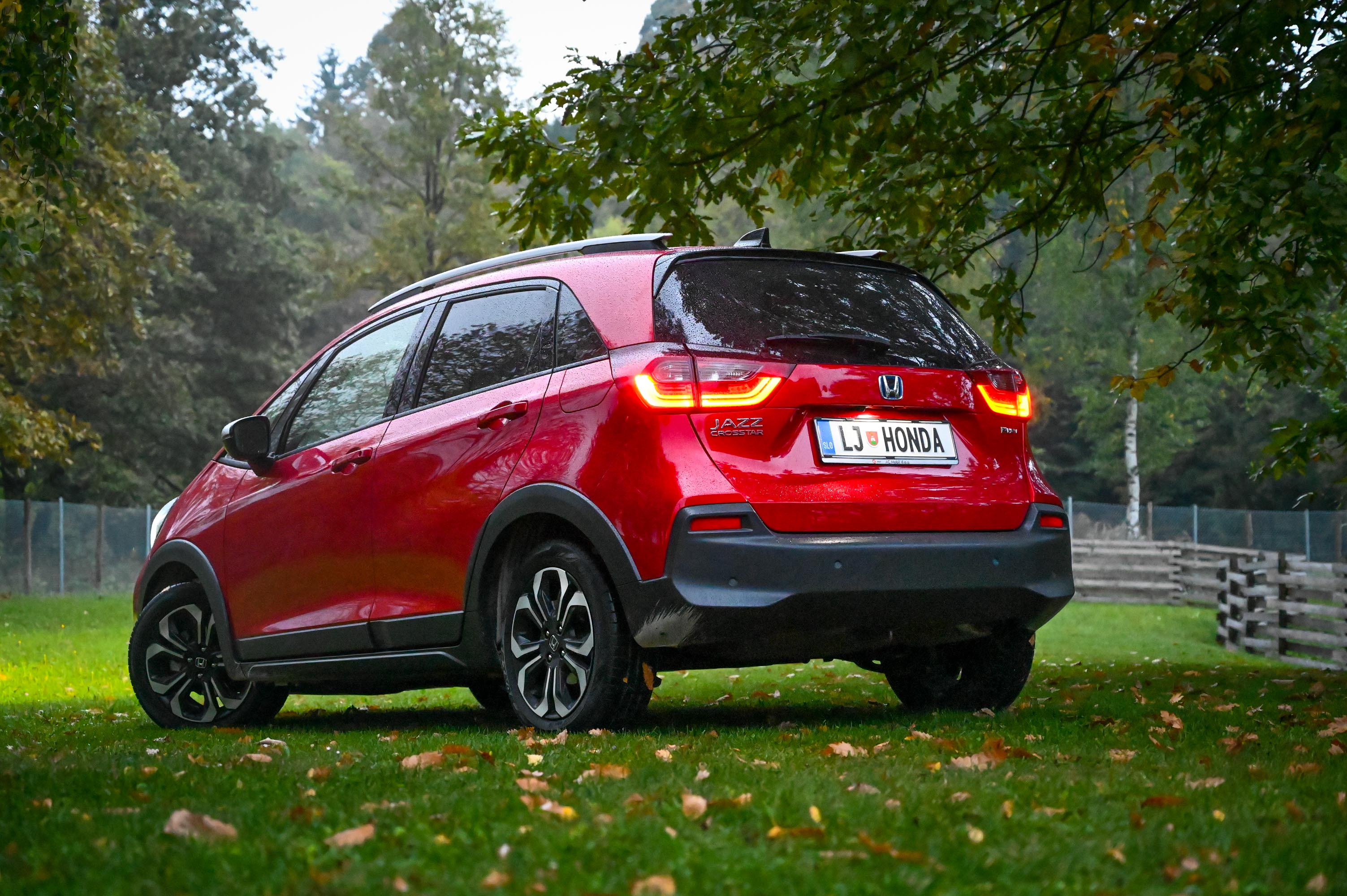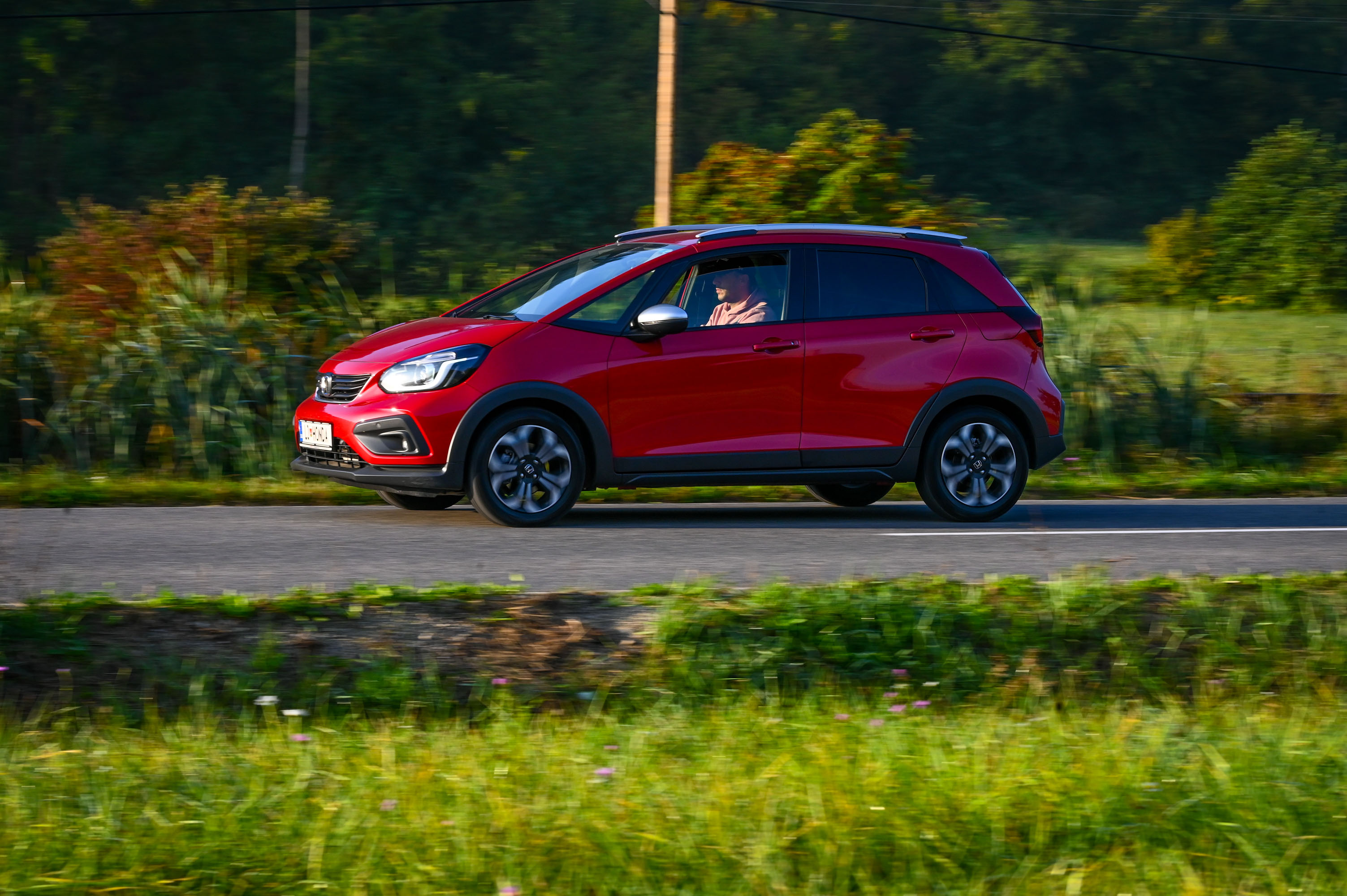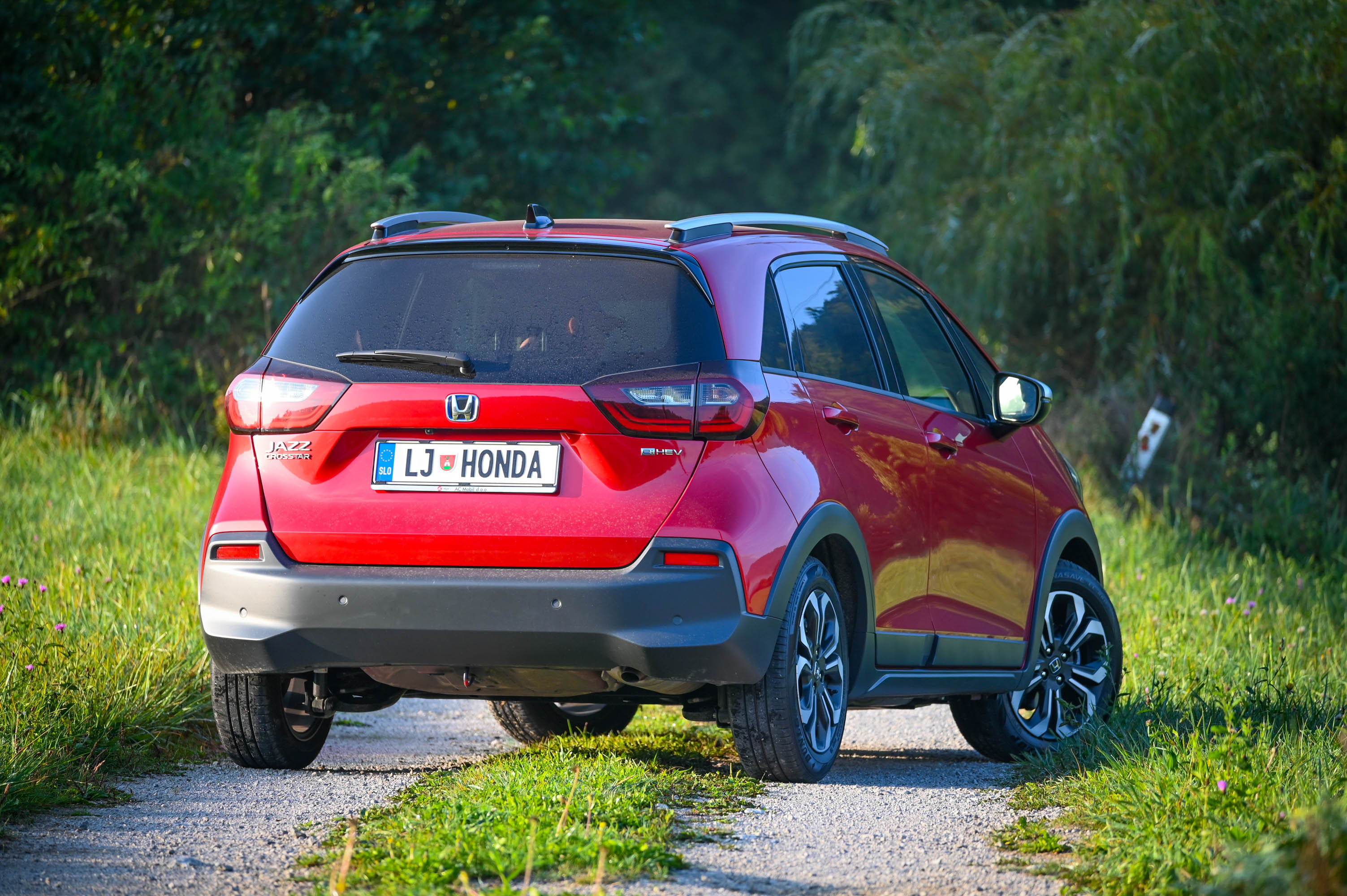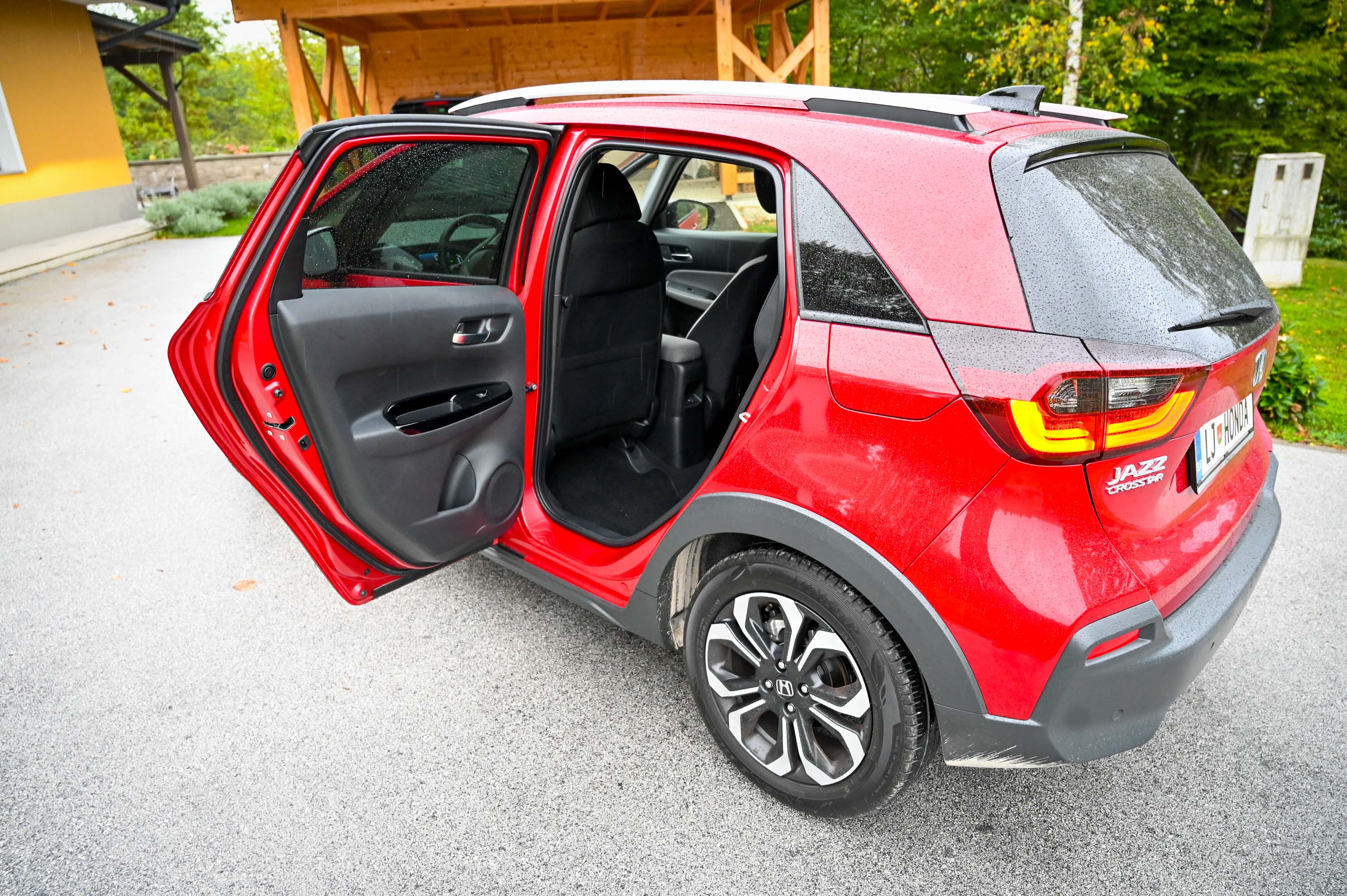 Zaradi izrazitejših in nekoliko robustnejših odbijačev, strešnih sani in črnih plastičnih karoserijskih obrob je crosstar dobre 4 cm daljši in je po 3 cm višji ter širši od honde jazz. Pri tem velja omeniti, da je tudi slabe tri centimetre bolj oddaljen od tal, kar ga sicer ne uvršča med terence, se pa večja oddaljenost od ceste pozna predvsem pri še udobnejšem sedanju v kabino. Pri tem še posebej hvalimo široko odpiranje zadnjega para bočnih vrat, ki se odprejo praktično pod 90-stopinjskim kotom in omogočajo res enostaven dostop do zadnje klopi. Nameščanje otroka v otroški sedež in zapenjanje varnostnih pasov je zelo enostavno opravilo.