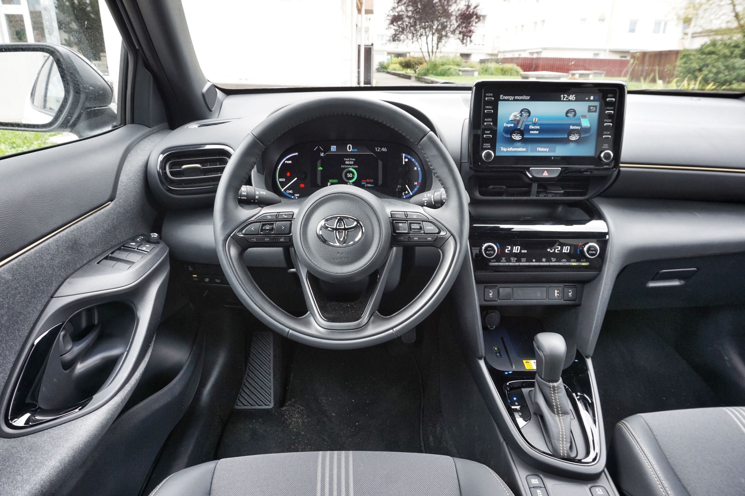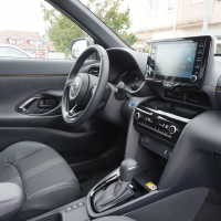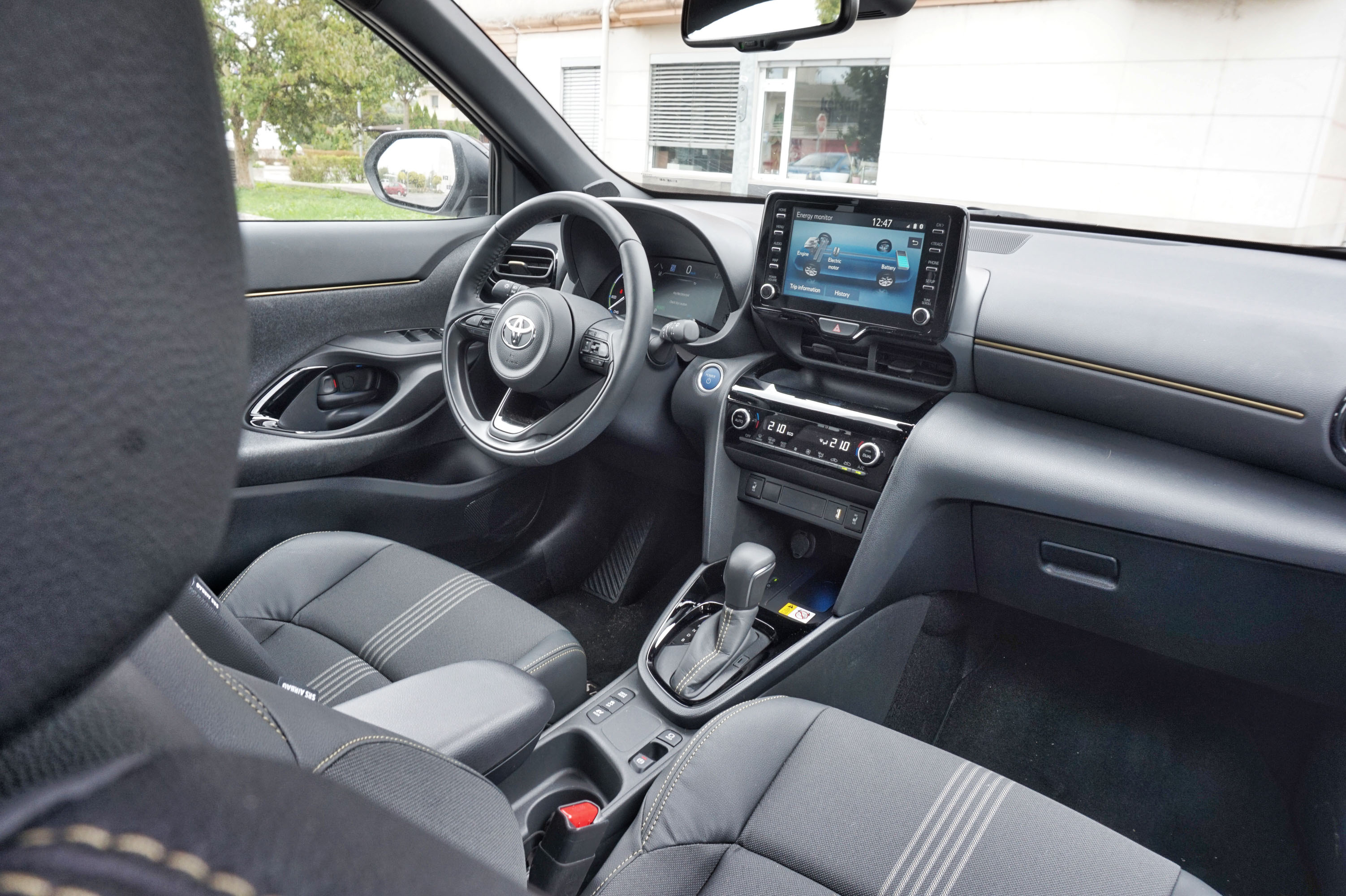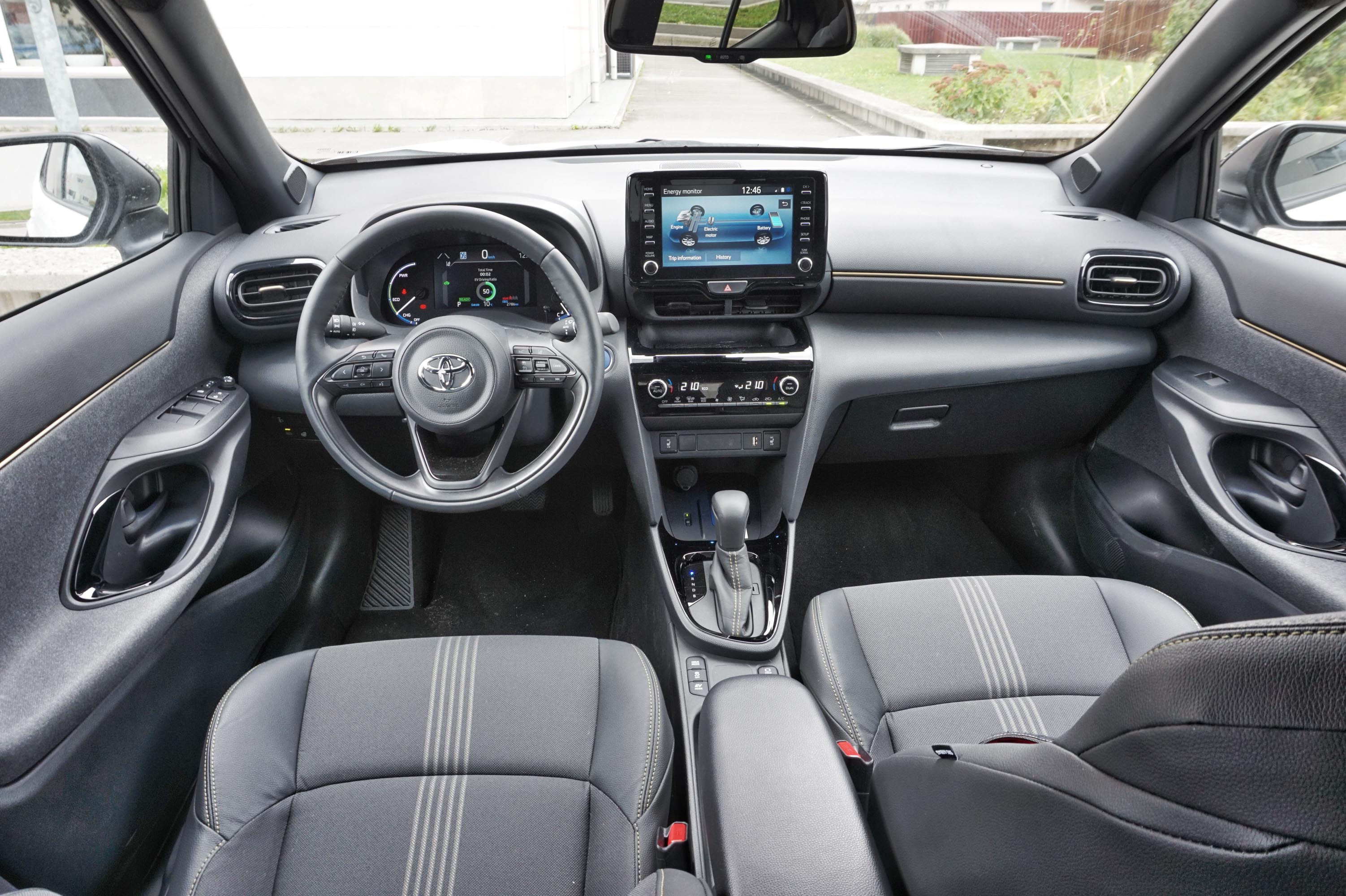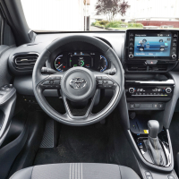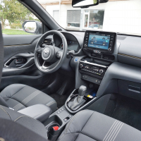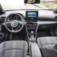 Tudi armaturna plošča yarisa crossa je bolj ali manj enaka tisti v yarisu; precej (črne in malce monotone) plastike, priročna polička pod zaslonom in še nekaj uporabnih prostorov za drobnarije. Brez prestiža, a tudi brez presenečenj in motečih elementov. Škoda, da je Toyotin posodobljen multimedijski sistem z večjim zaslonom in z brezžičnima povezavama CarPlay in Android Auto na voljo le v najbogatejši in najdražji različici premiere - v ostalih se je treba sprijazniti z zastarelim uporabniškim vmesnikom.