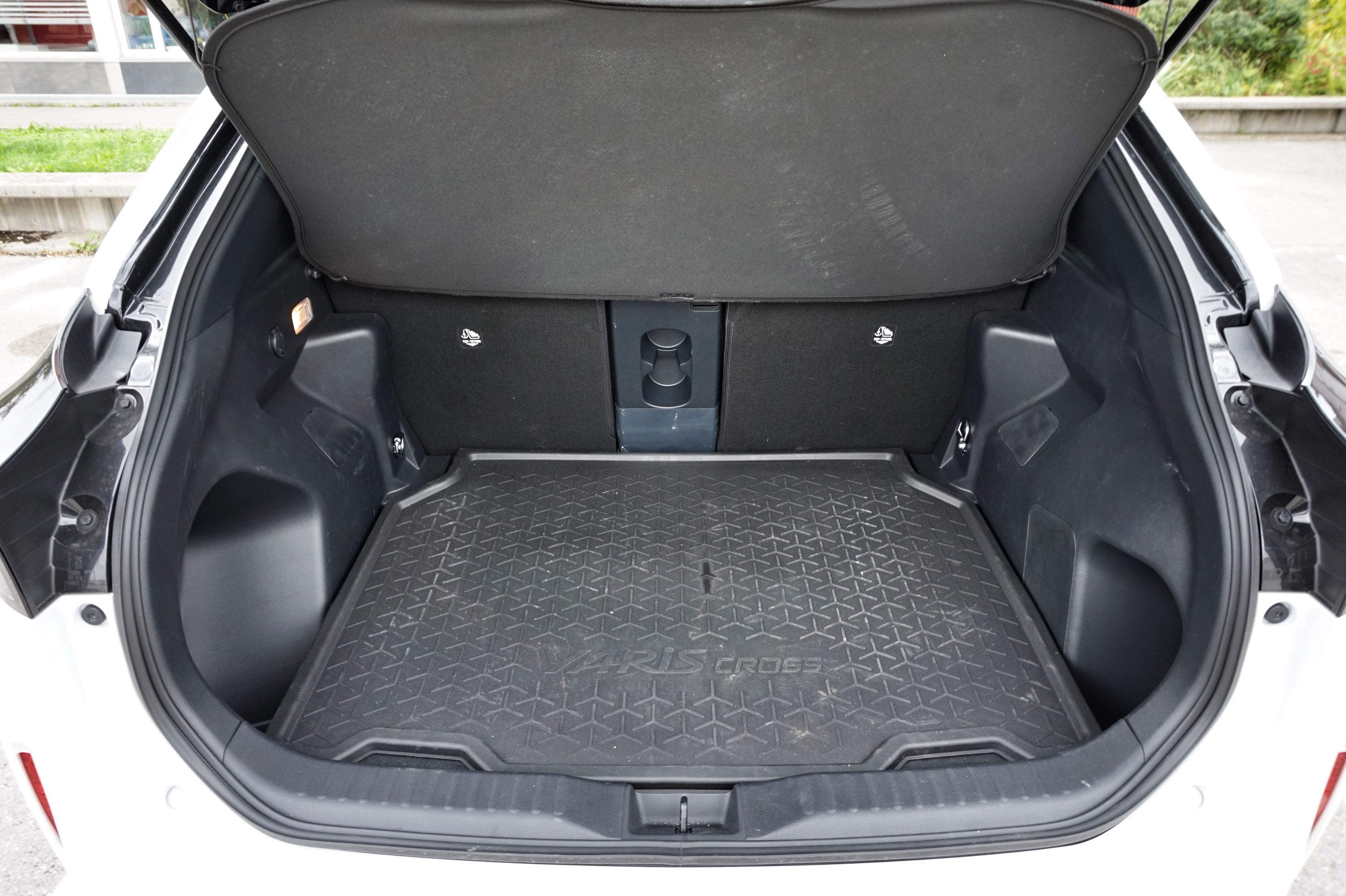 Karoserija yarisa crossa stoji 17 centimetrov od tal, torej tri centimetre višje kot pri običajnem yarisu, kar res ne zagotavlja bistvene prednosti na terenu, zato pa ponuja udobno sedanje v avto, kar je zagotovo ena od glavnih prednosti tovrstnih avtomobilov. Pri prostornosti yaris cross ne skriva sorodstva z manjšim yarisom; čeprav je 24 centimetrov daljši, zaradi enake medosne razdalje (256 cm) na zadnji klopi yarisa crossa ni nič več prostora, kar pomeni, da se odrasli potniki hitro naslonijo s koleni v naslonjala prednjih sedežev. Yaris cross nima pomične zadnje klopi kot na primer renault captur, čeprav bi mu zelo prav prišla. Šele v prtljažniku je jasno, kam so šli dodatni karoserijski centimetri; s 397 litri je prtljažnik prostoren, pod plastičnim koritom, ki je sicer del dodatne opreme, pa ima prtljažno dno z dvodelnim pokrovom, pod katerim je prostor za drobnarije.