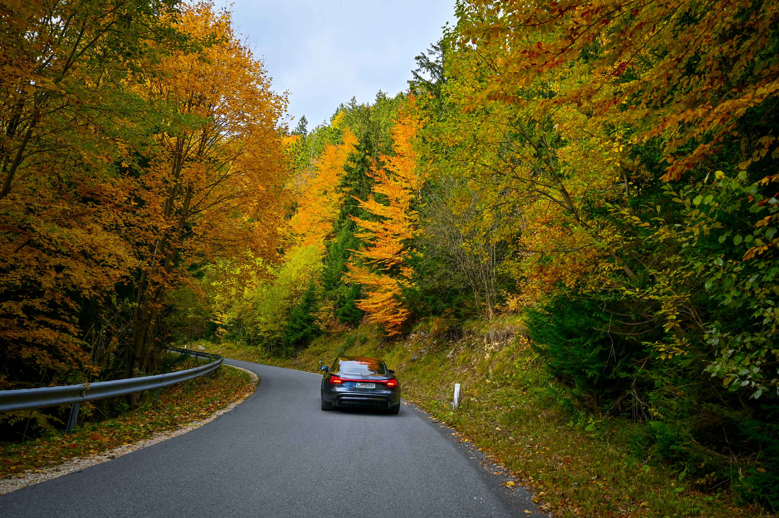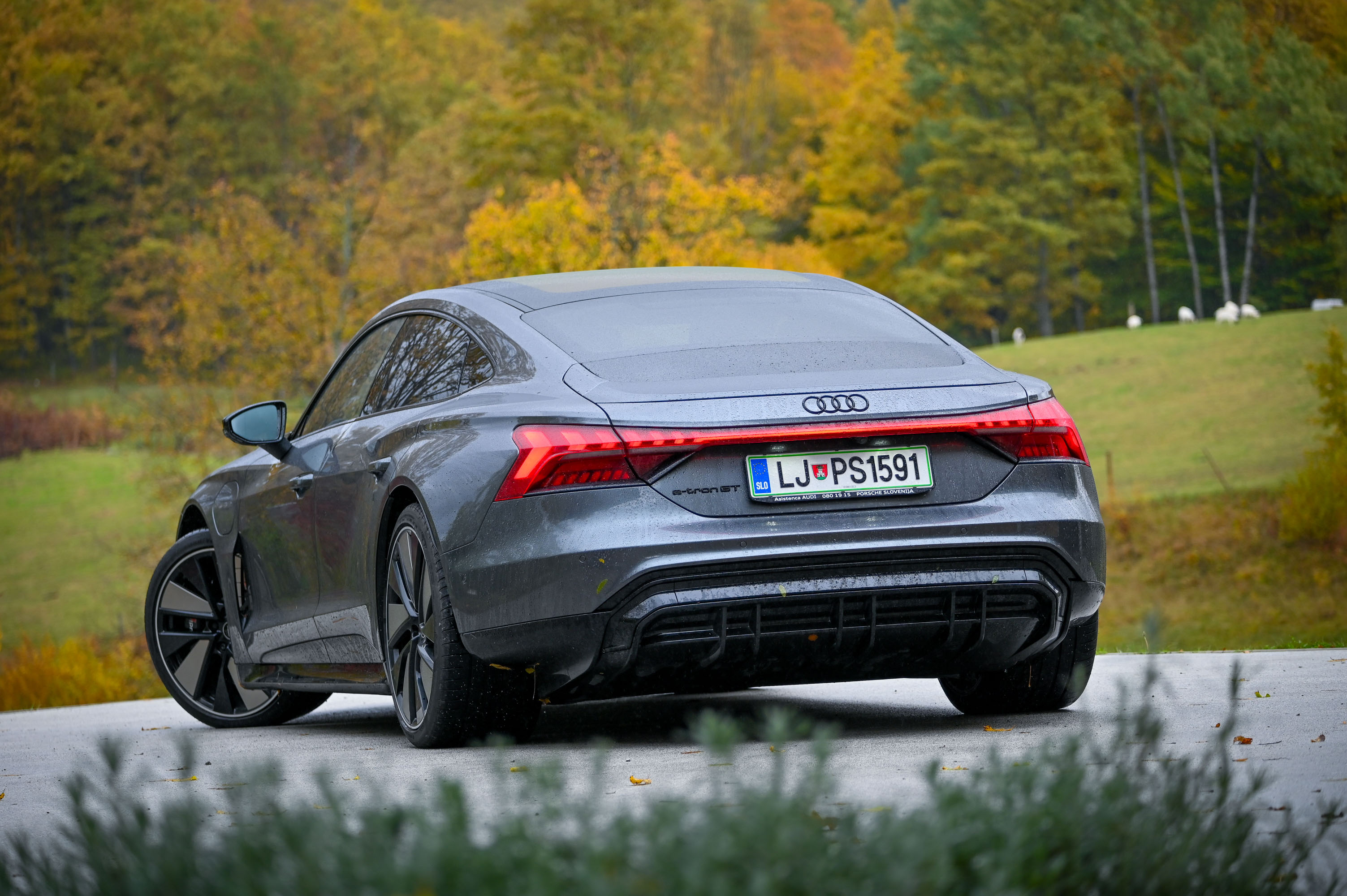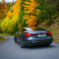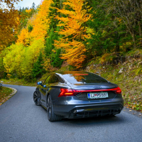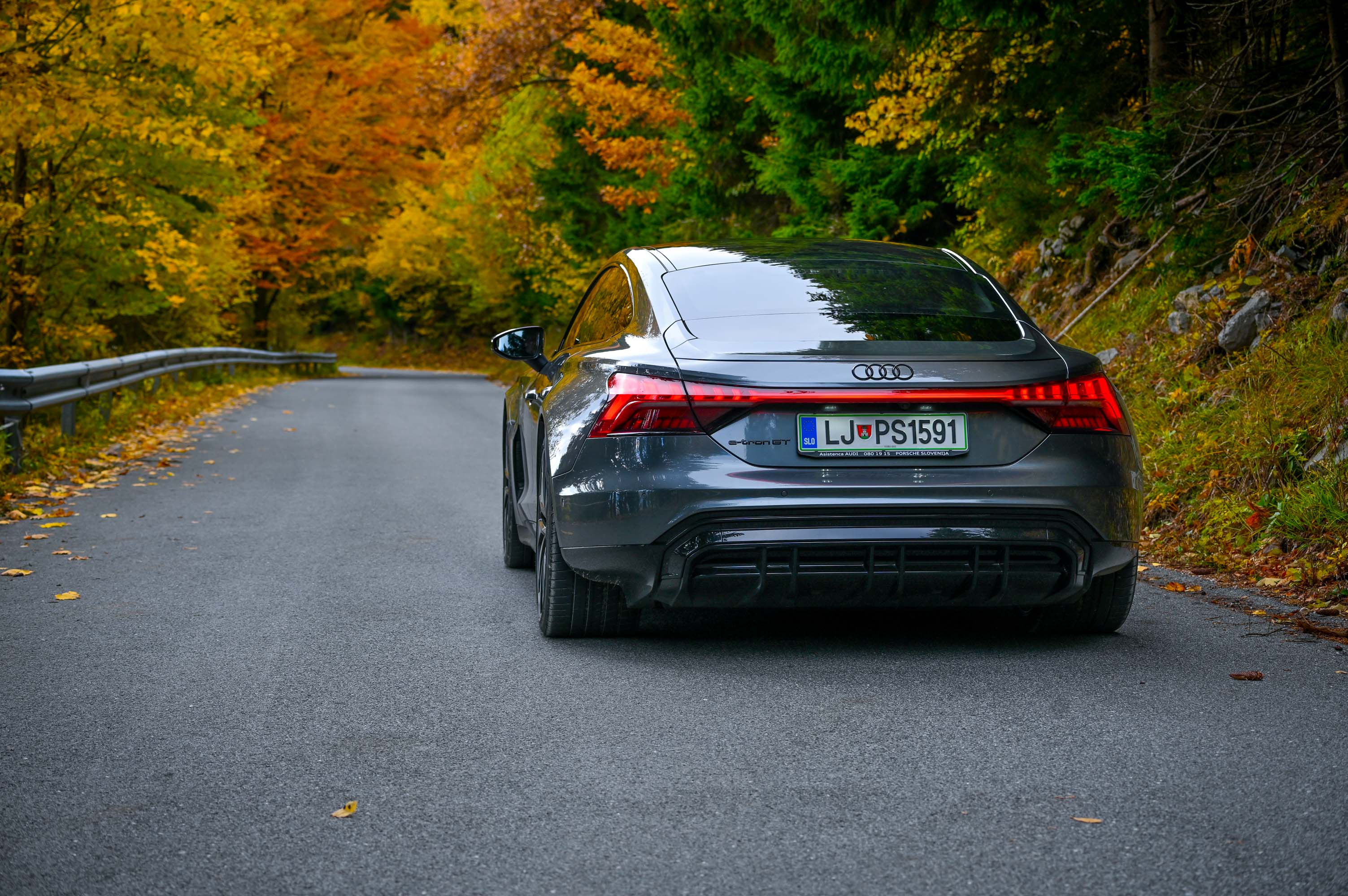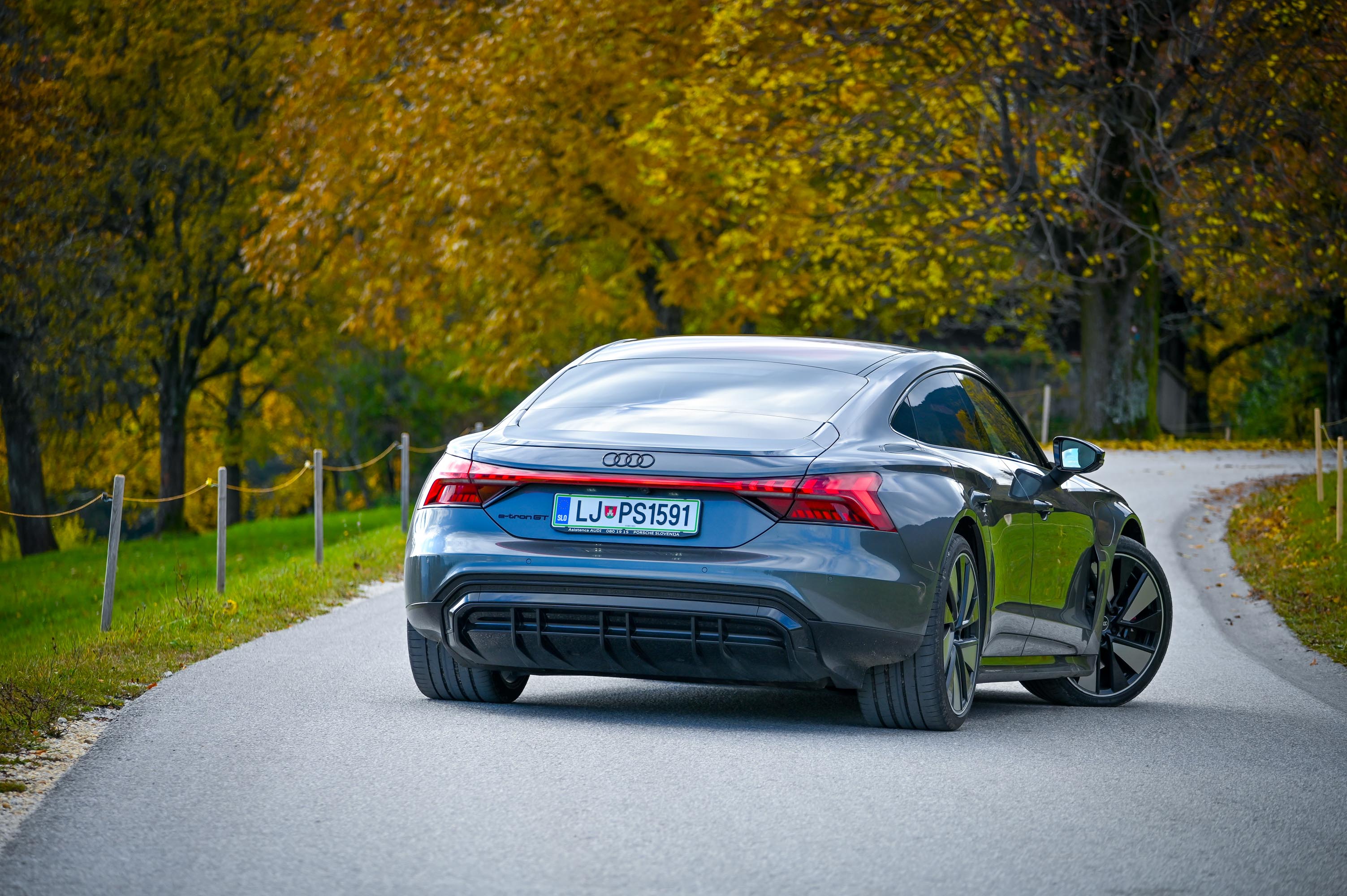 Ko smo v audiju e-tronu GT vklopili dinamični vozni program, je elektrika dobila nove razsežnosti. Zgodba o jeseni, ki naznanja konec nekega obdobja, je zažarela v najbolj čudovitih odtenkih. Potisk pri izhodu iz ovinka v naslednjo kratko ravnino je tako silovit, da je zračni tok izpod orjaškega difuzorja odpadlo listje razpihal skoraj do višine prvih vej drevesnih krošenj.