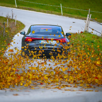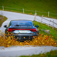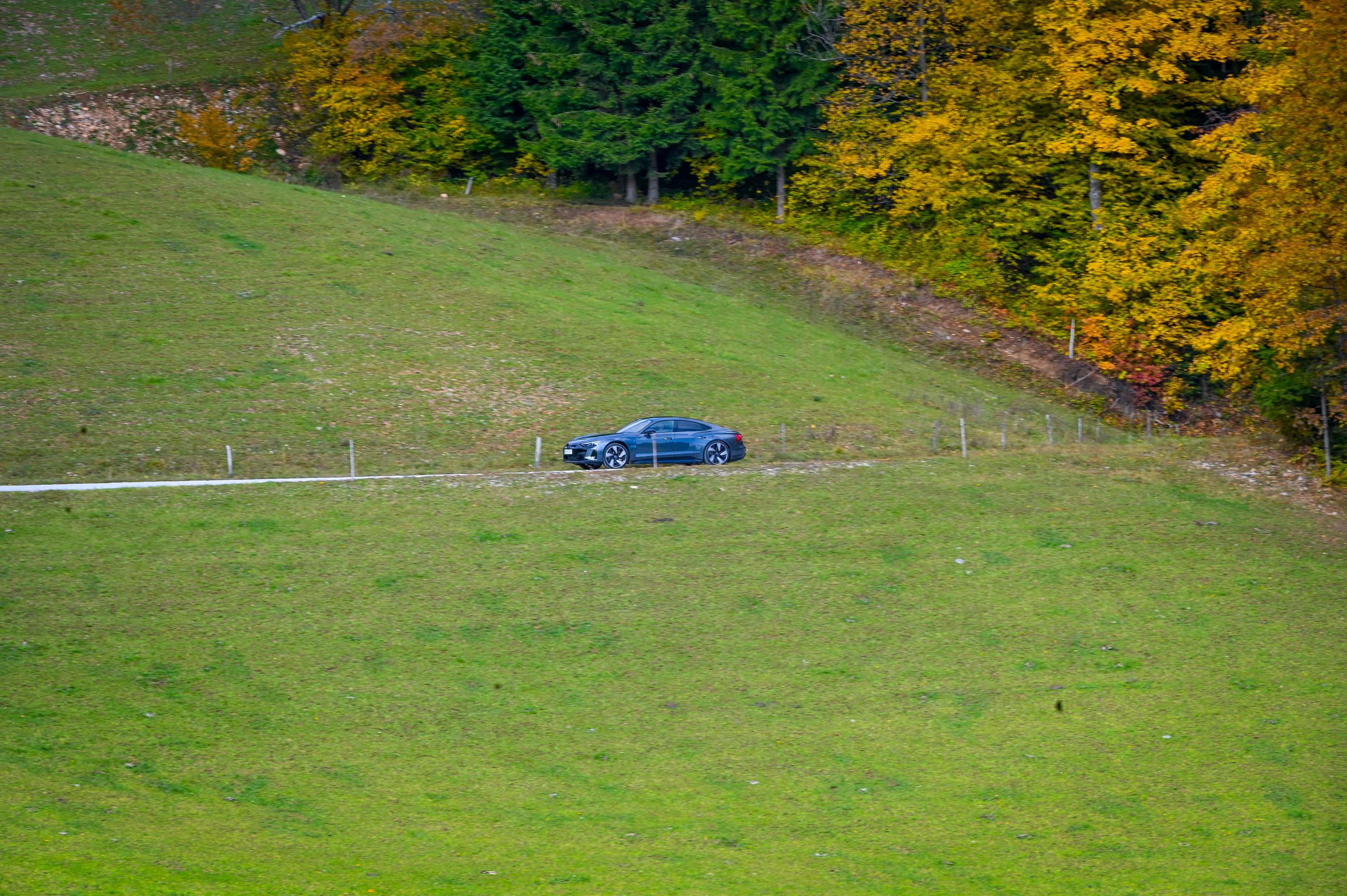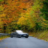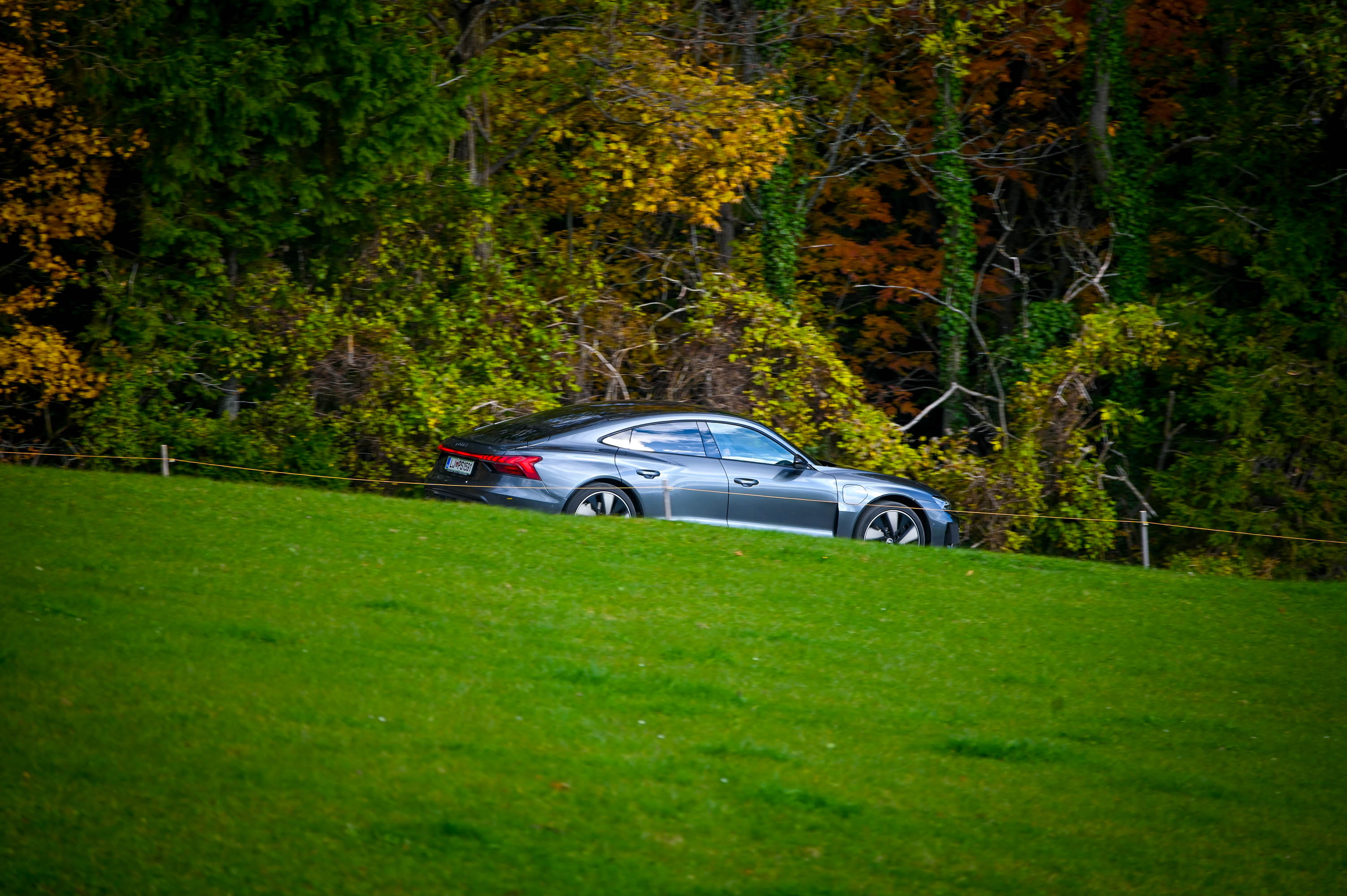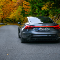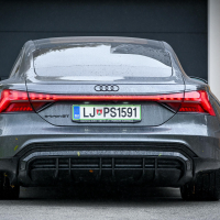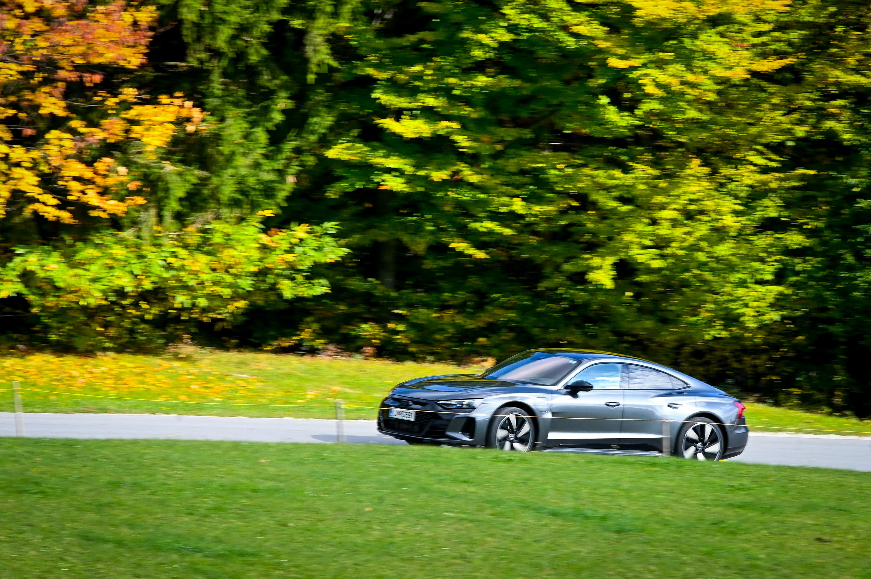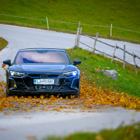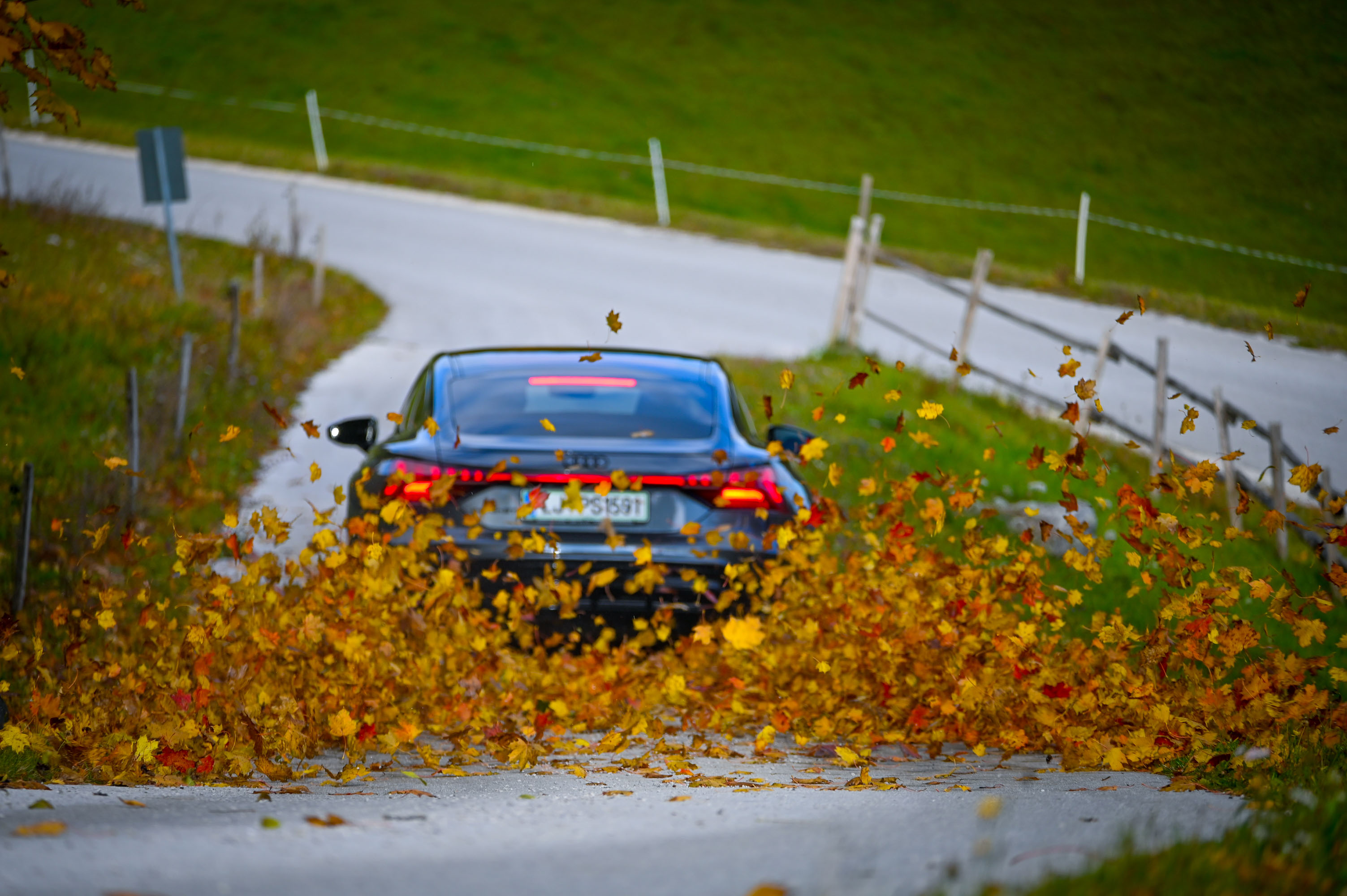 Ko smo v audiju e-tronu GT vklopili dinamični vozni program, je elektrika dobila nove razsežnosti. Zgodba o jeseni, ki naznanja konec nekega obdobja, je zažarela v najbolj čudovitih odtenkih. Potisk pri izhodu iz ovinka v naslednjo kratko ravnino je tako silovit, da je zračni tok izpod orjaškega difuzorja odpadlo listje razpihal skoraj do višine prvih vej drevesnih krošenj.