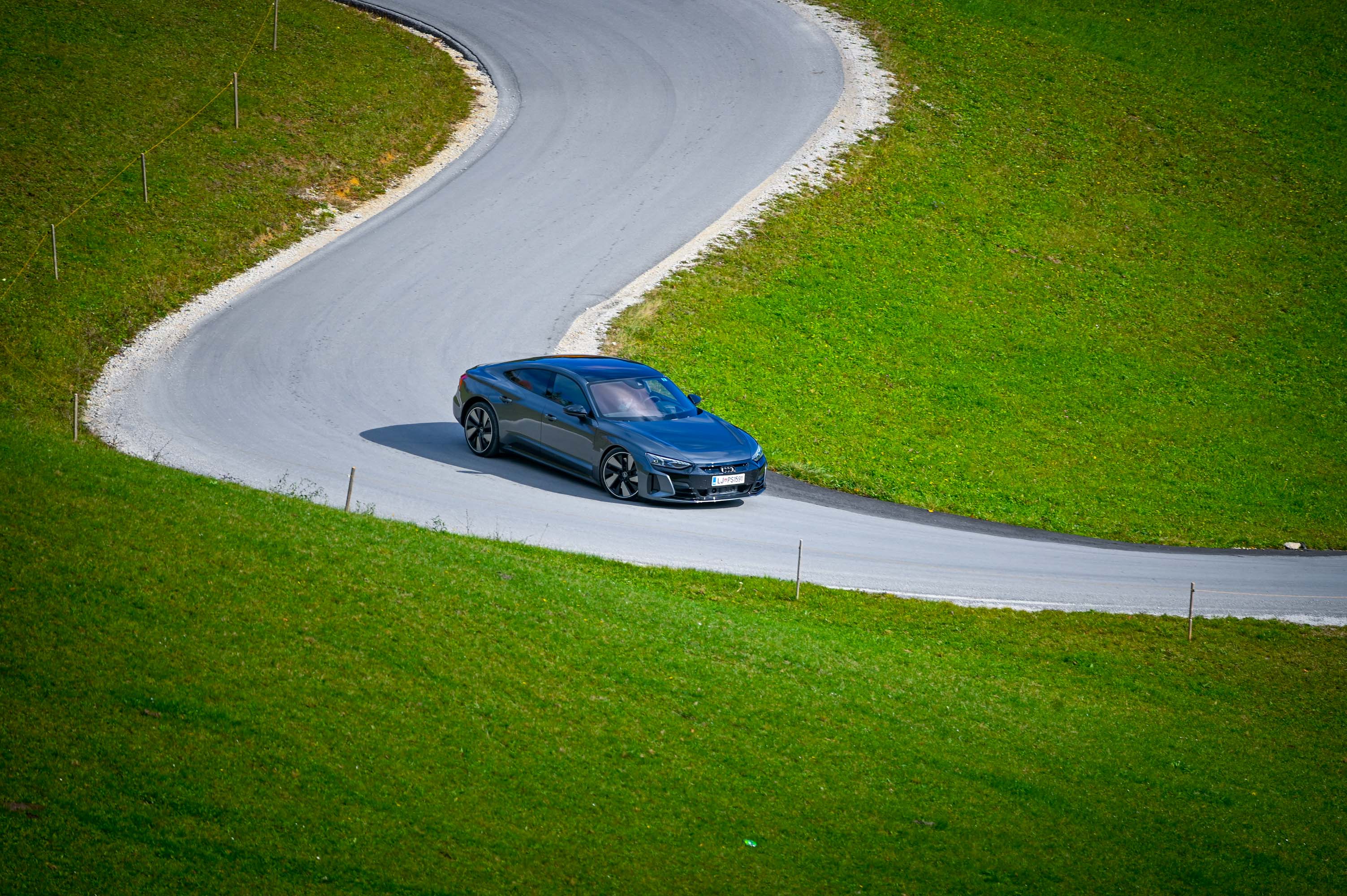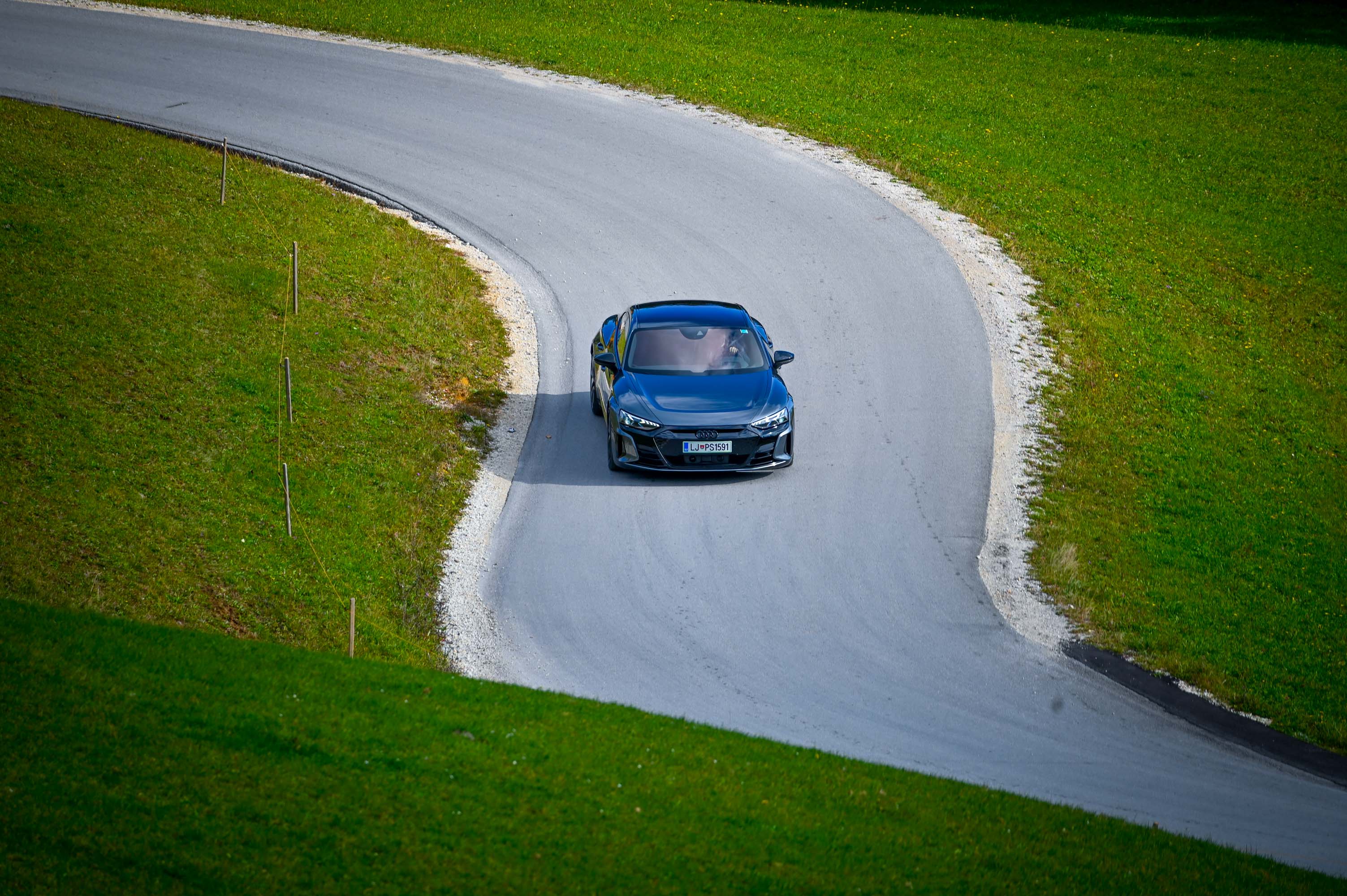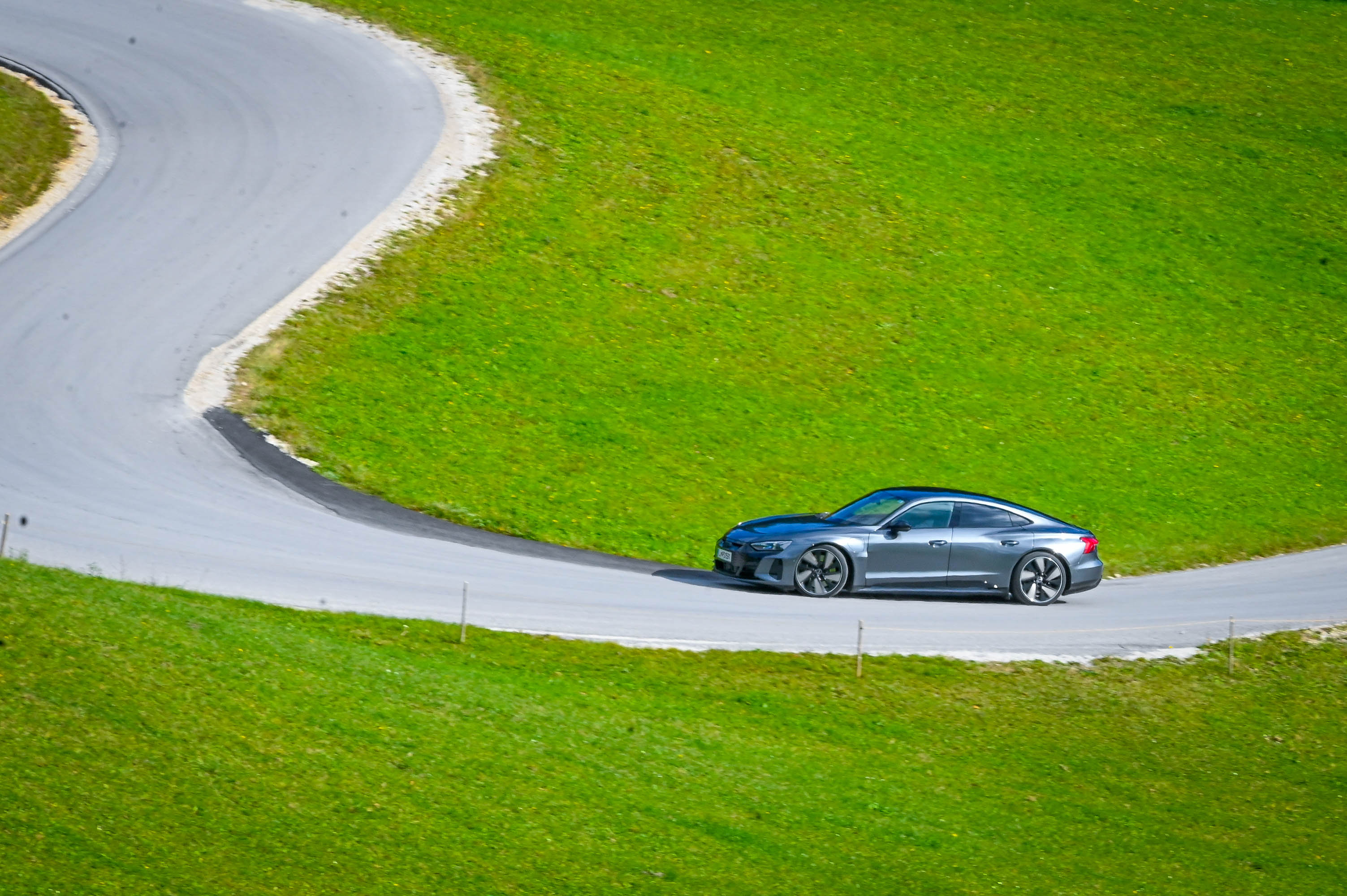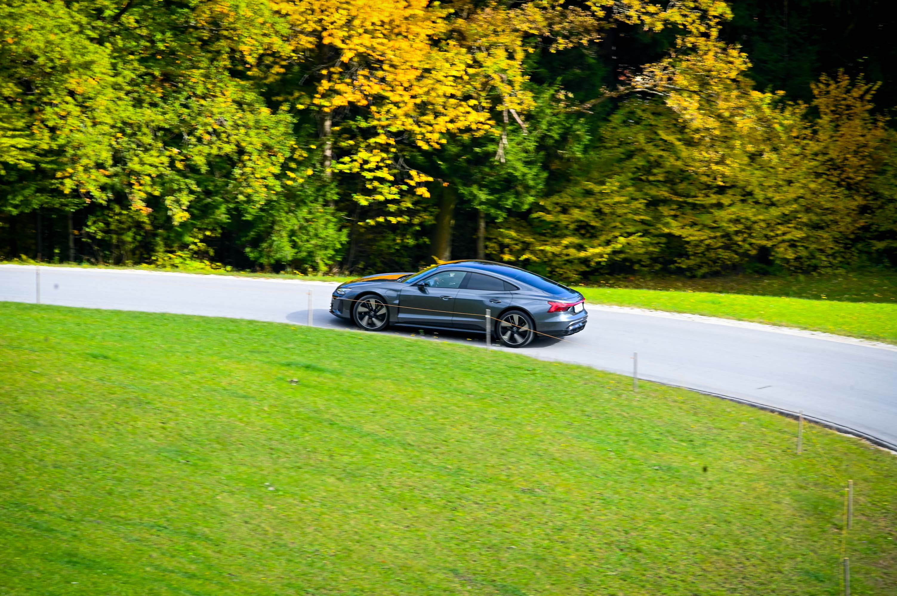Za volanom voznika pričaka značilna Audijeva brezhibnost. Kljub digitalnosti in povezljivosti je v trenutku, ko se sprednji del potopi v ovinek, vse to nepomembno. Zaradi prvovrstnega oprijema, vrhunsko uravnoteženega podvozja, natančnega volana, zmogljivih zavor in varnostne elektronike je vožnja varna, a hkrati osupljivo doživeta. Zaprti ovinki dajo vedeti, da je največji izziv oziroma najšibkejši člen zmogljivega električnega avtomobila velika masa, ki je posledica neprepričljivega razmerja med močjo in energijsko gostoto shranjevanja energije. V tem pogledu ima električna mobilnost ob učinkovitosti pogona največje rezerve in s tem vpliv na vozniško svobodo.