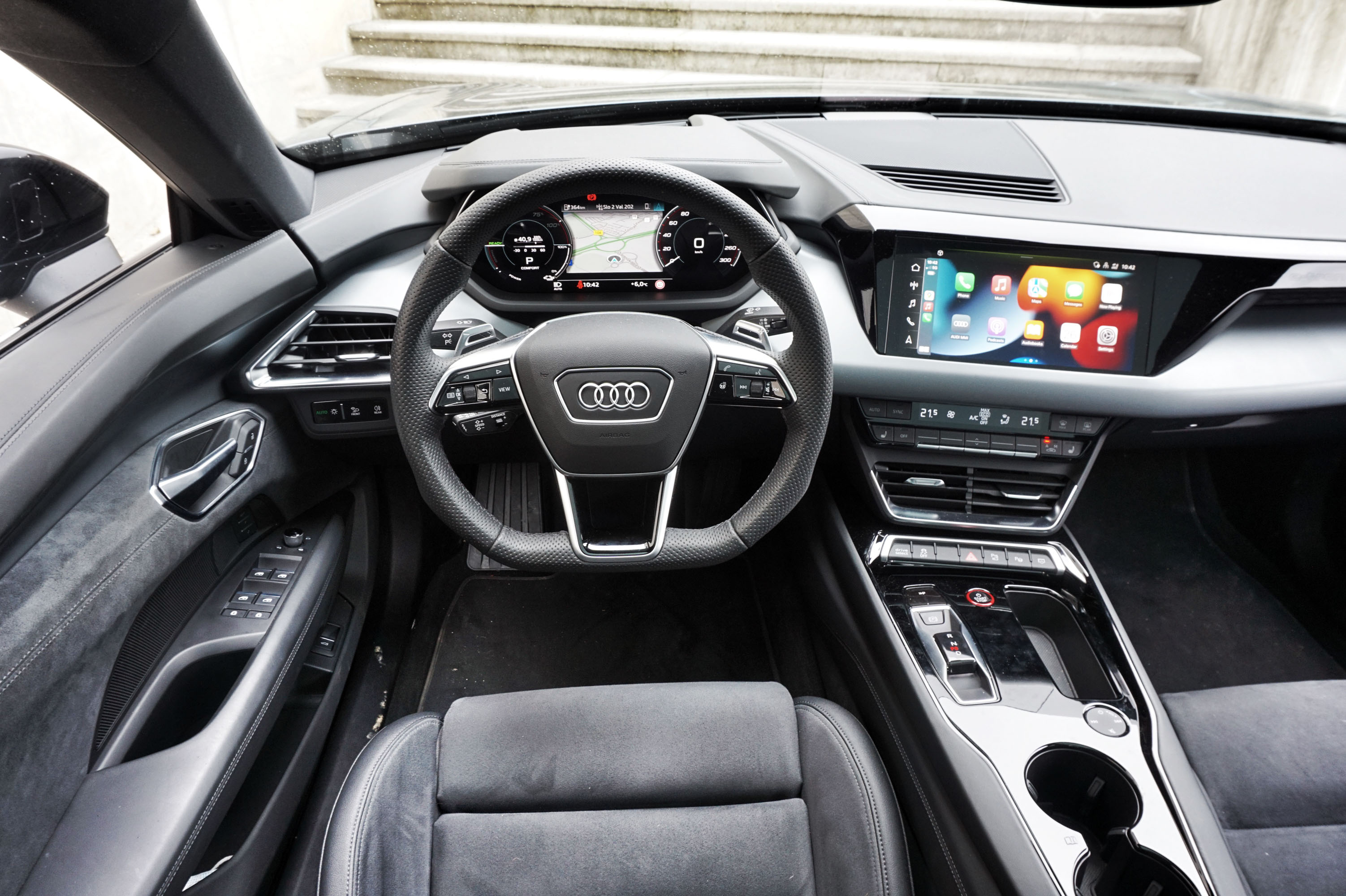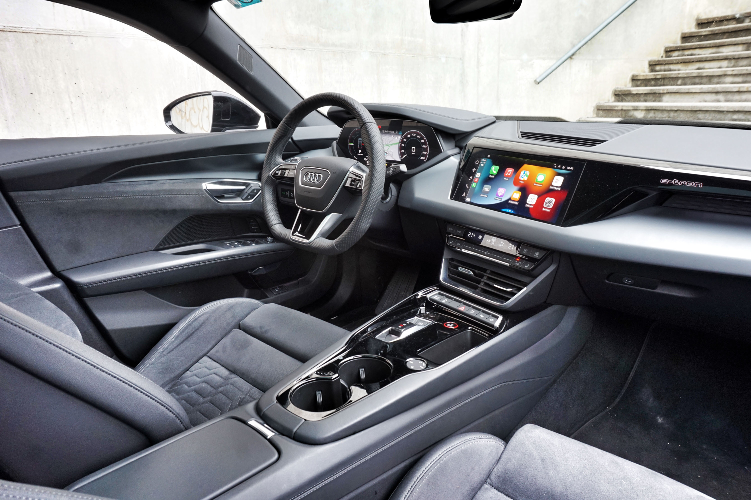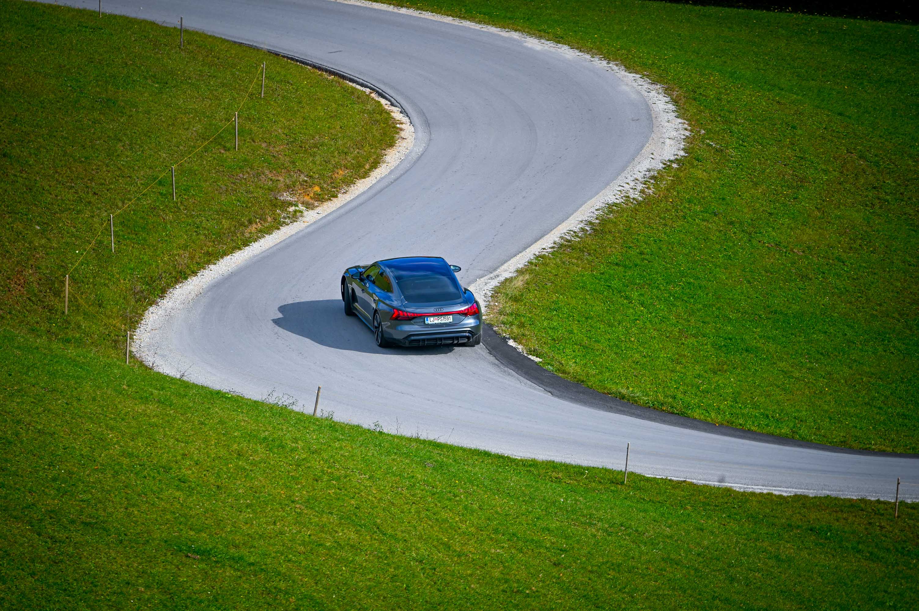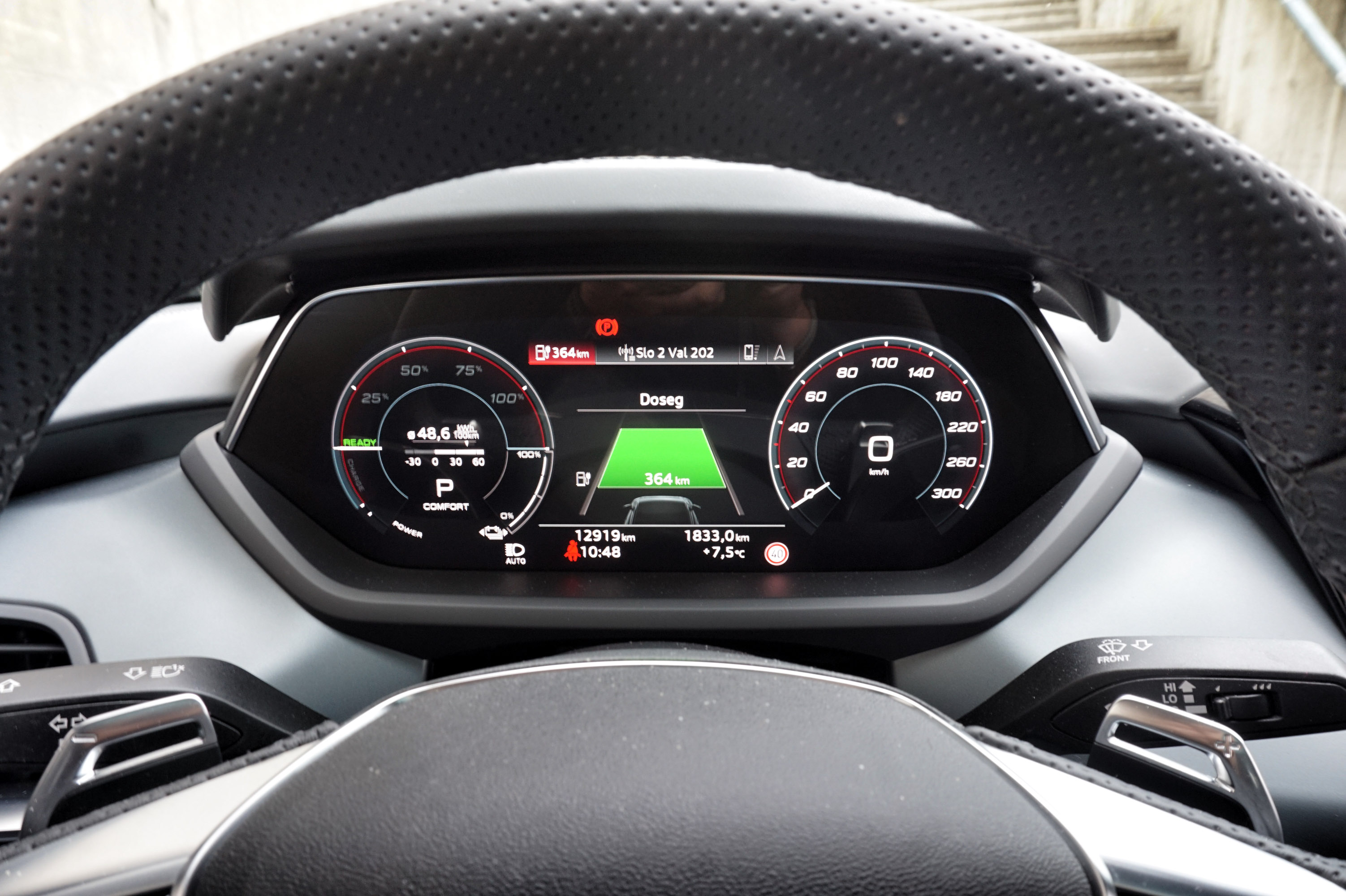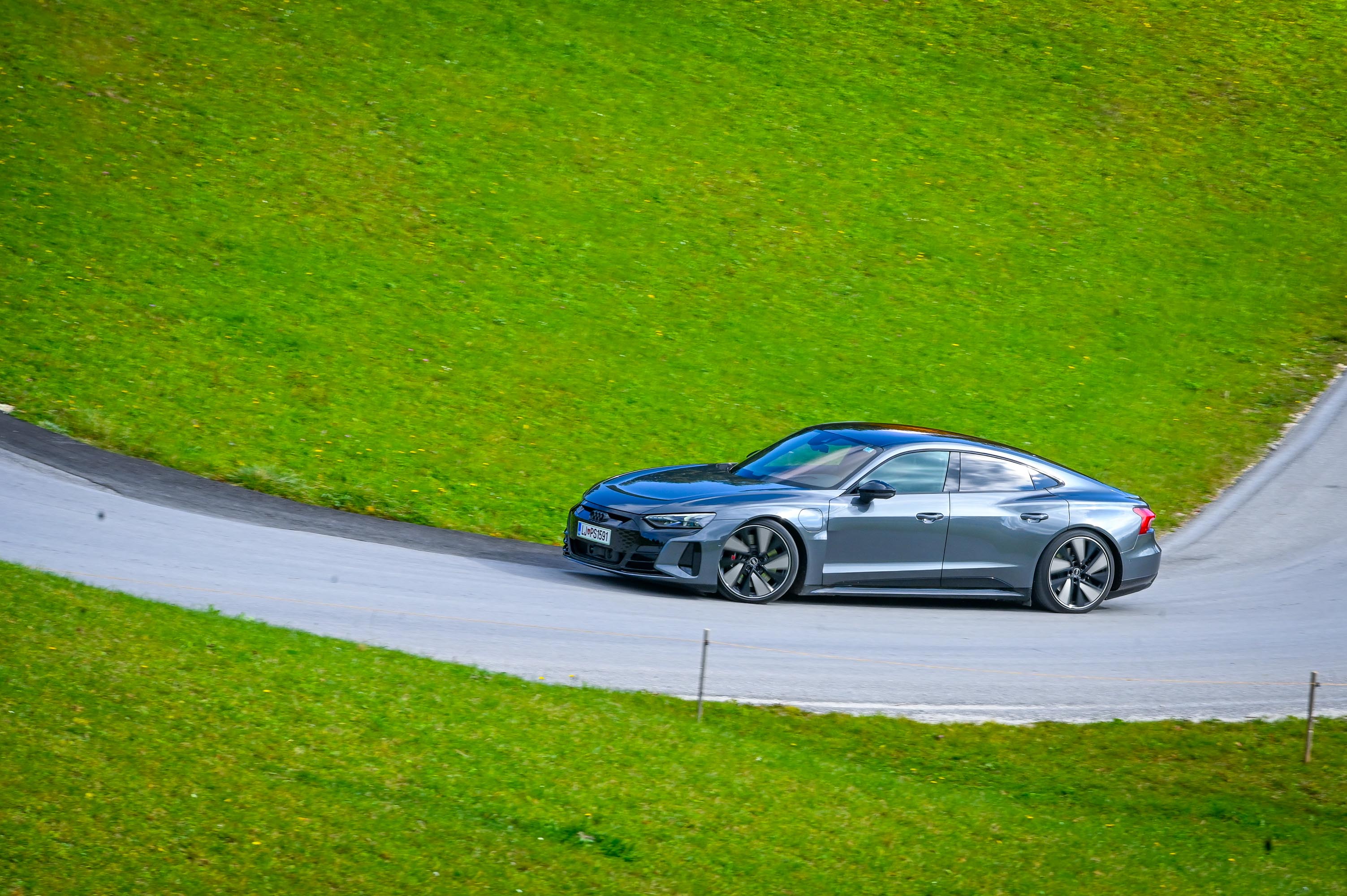 Za volanom voznika pričaka značilna Audijeva brezhibnost. Kljub digitalnosti in povezljivosti je v trenutku, ko se sprednji del potopi v ovinek, vse to nepomembno. Zaradi prvovrstnega oprijema, vrhunsko uravnoteženega podvozja, natančnega volana, zmogljivih zavor in varnostne elektronike je vožnja varna, a hkrati osupljivo doživeta. Zaprti ovinki dajo vedeti, da je največji izziv oziroma najšibkejši člen zmogljivega električnega avtomobila velika masa, ki je posledica neprepričljivega razmerja med močjo in energijsko gostoto shranjevanja energije. V tem pogledu ima električna mobilnost ob učinkovitosti pogona največje rezerve in s tem vpliv na vozniško svobodo.