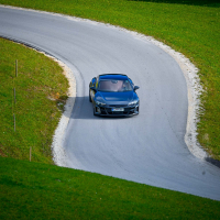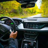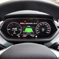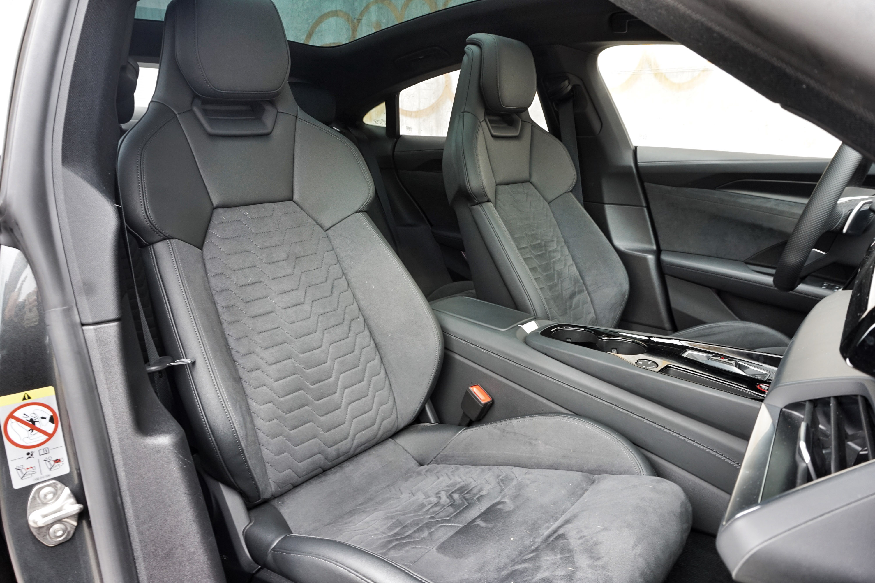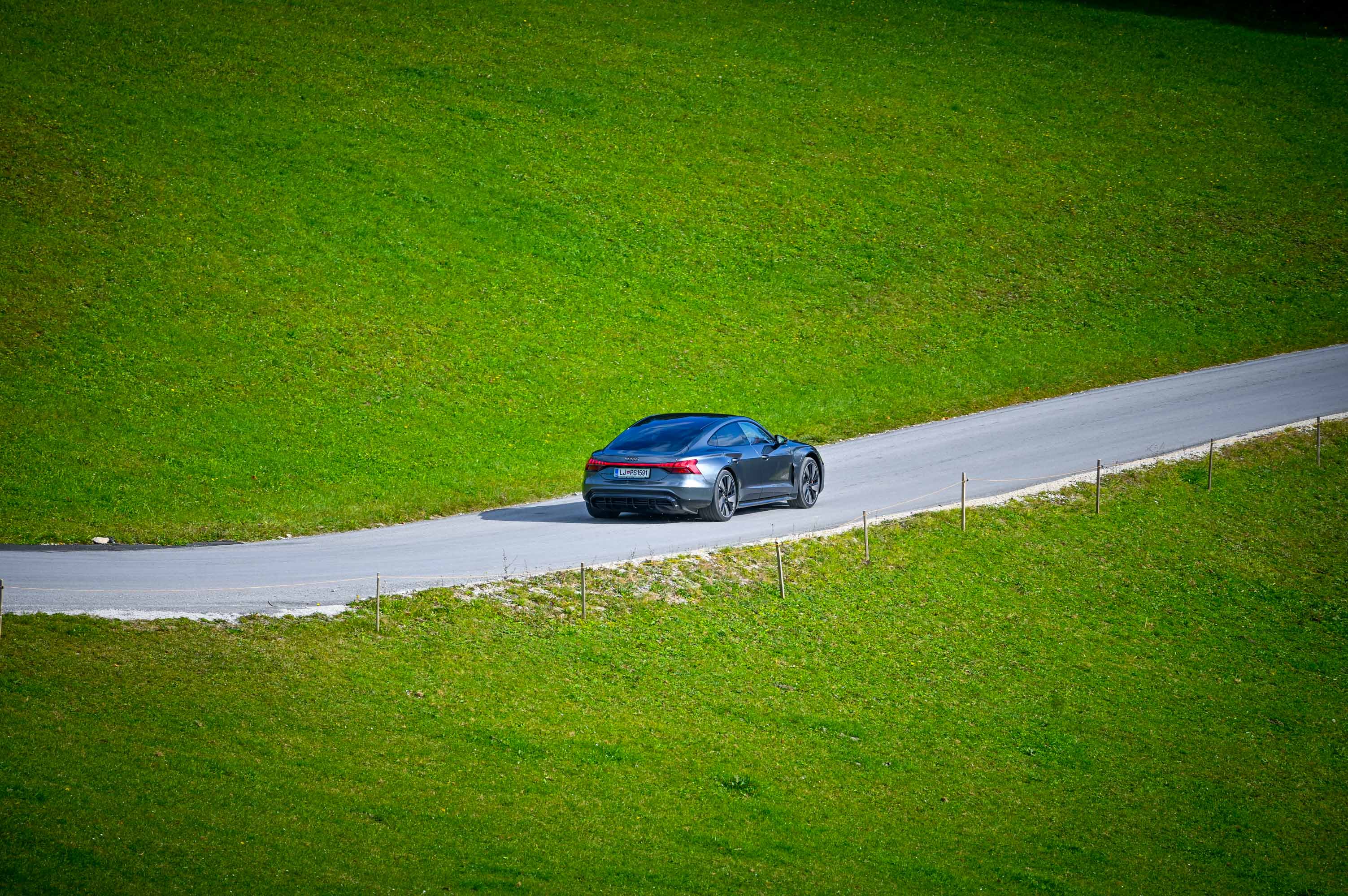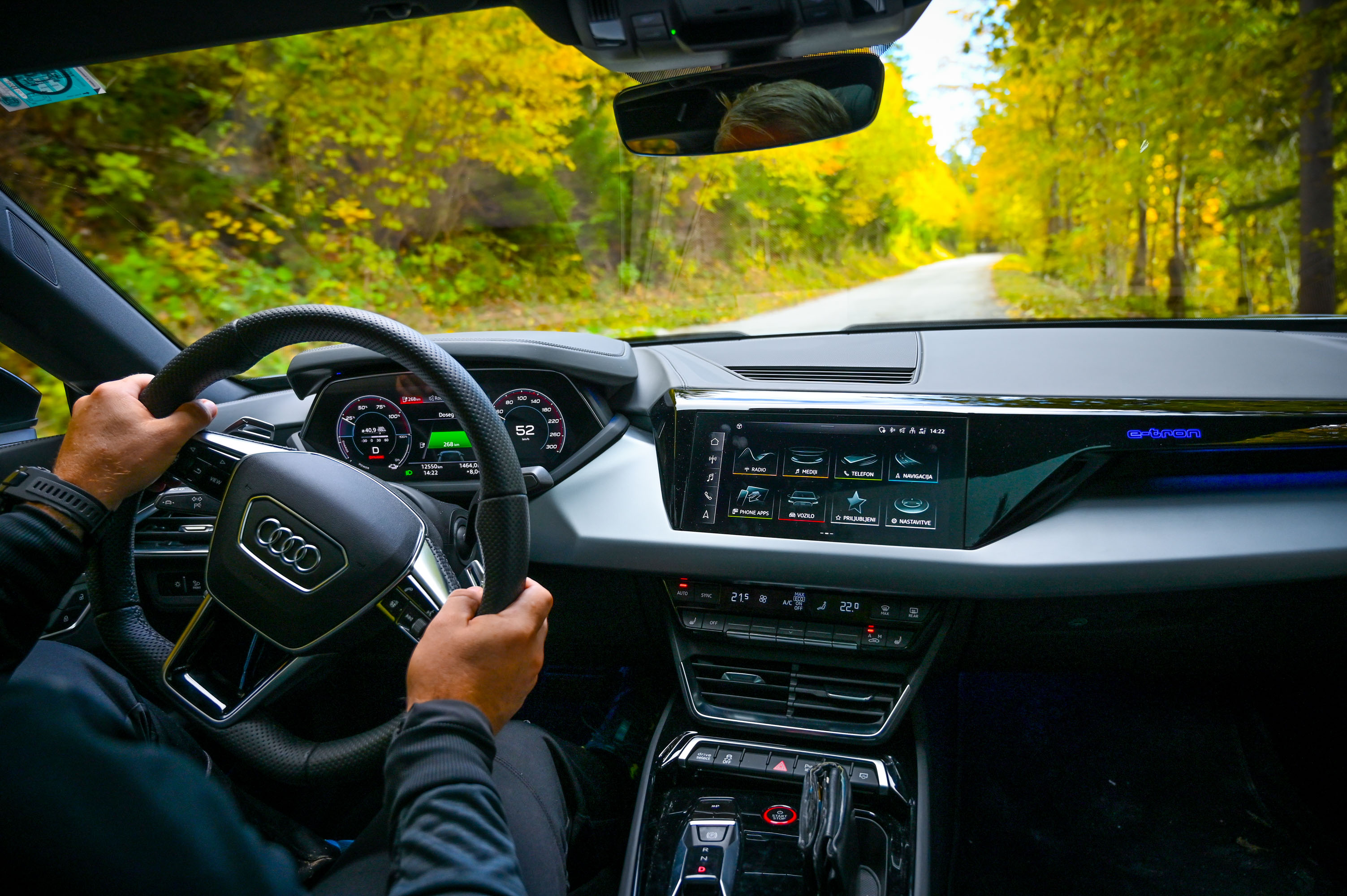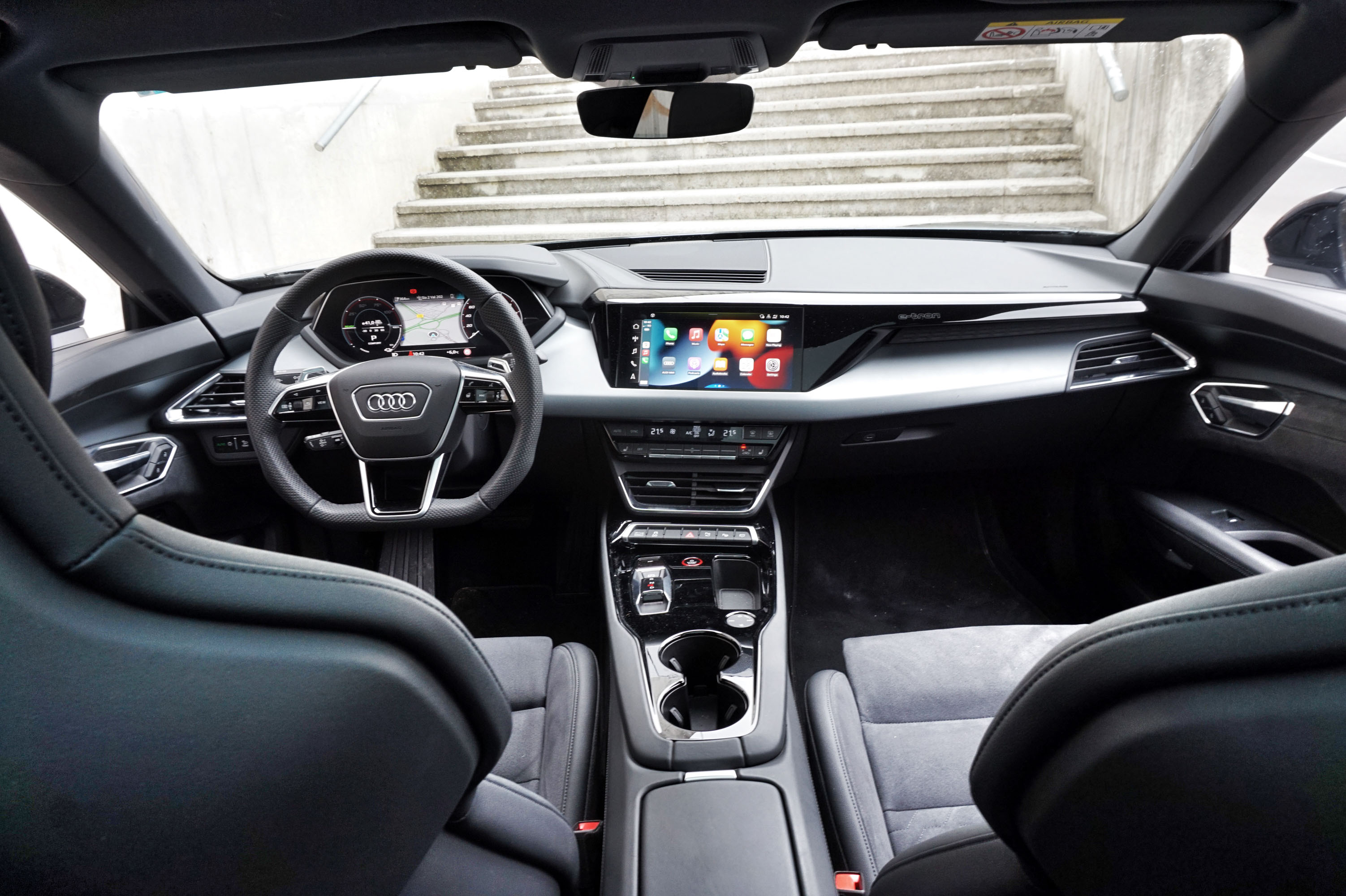 Za volanom voznika pričaka značilna Audijeva brezhibnost. Kljub digitalnosti in povezljivosti je v trenutku, ko se sprednji del potopi v ovinek, vse to nepomembno. Zaradi prvovrstnega oprijema, vrhunsko uravnoteženega podvozja, natančnega volana, zmogljivih zavor in varnostne elektronike je vožnja varna, a hkrati osupljivo doživeta. Zaprti ovinki dajo vedeti, da je največji izziv oziroma najšibkejši člen zmogljivega električnega avtomobila velika masa, ki je posledica neprepričljivega razmerja med močjo in energijsko gostoto shranjevanja energije. V tem pogledu ima električna mobilnost ob učinkovitosti pogona največje rezerve in s tem vpliv na vozniško svobodo.