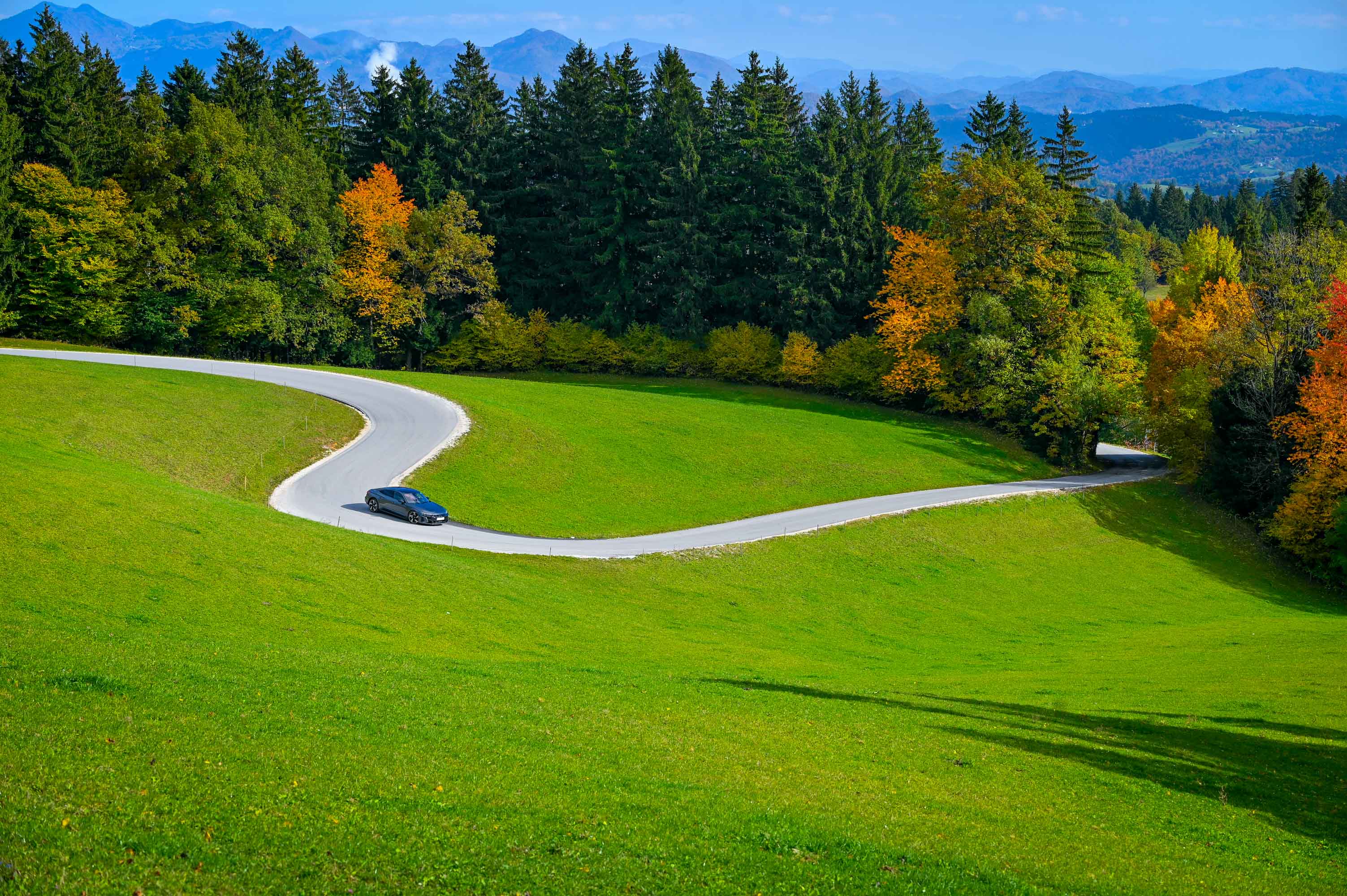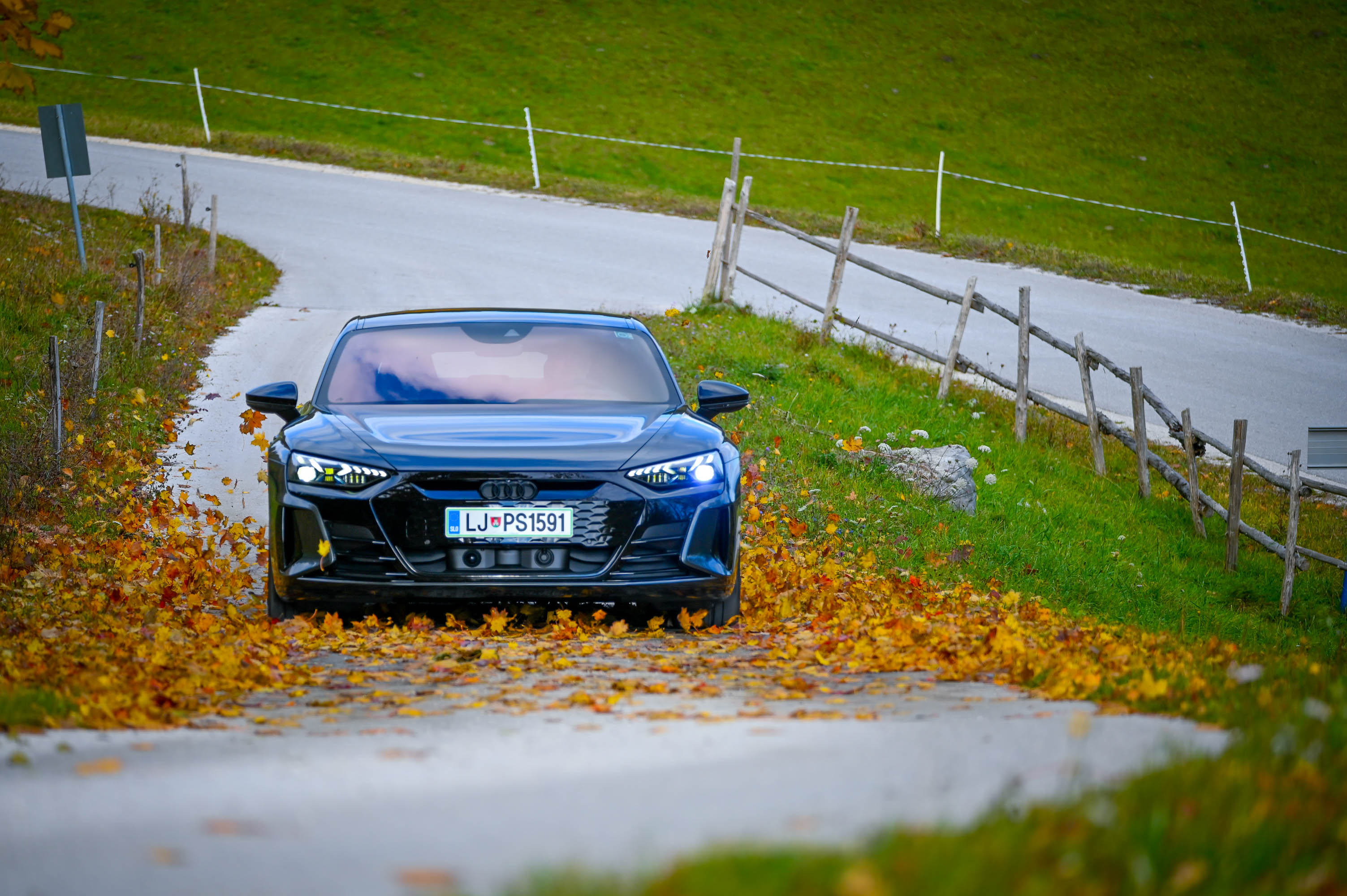 Naj tokratno avtomobilsko-tehnološko doživetje najprej izkoristimo zato, da vas ob objavljenih fotografijah spomnimo, v kako čudoviti deželi živimo. Smo narod tehniške kulture in imamo izjemno raznoliko deželo, v kateri je nešteto ovinkov, ki voznika pripeljejo do nebeških razgledov in občutkov. Odgovore na to, kaj na hladnih, deloma mokrih in z listjem prekritih cestah ponuja Audijev električni štirikolesni pogon, smo iskali na gorski cesti na Golte. Zanimalo nas je tudi, kako učinkovit je velik in težak športni električni potovalni avto, če njegov voznik po daljši avtocestni etapi želi še z užitkom pripeljati na gorski cilj.