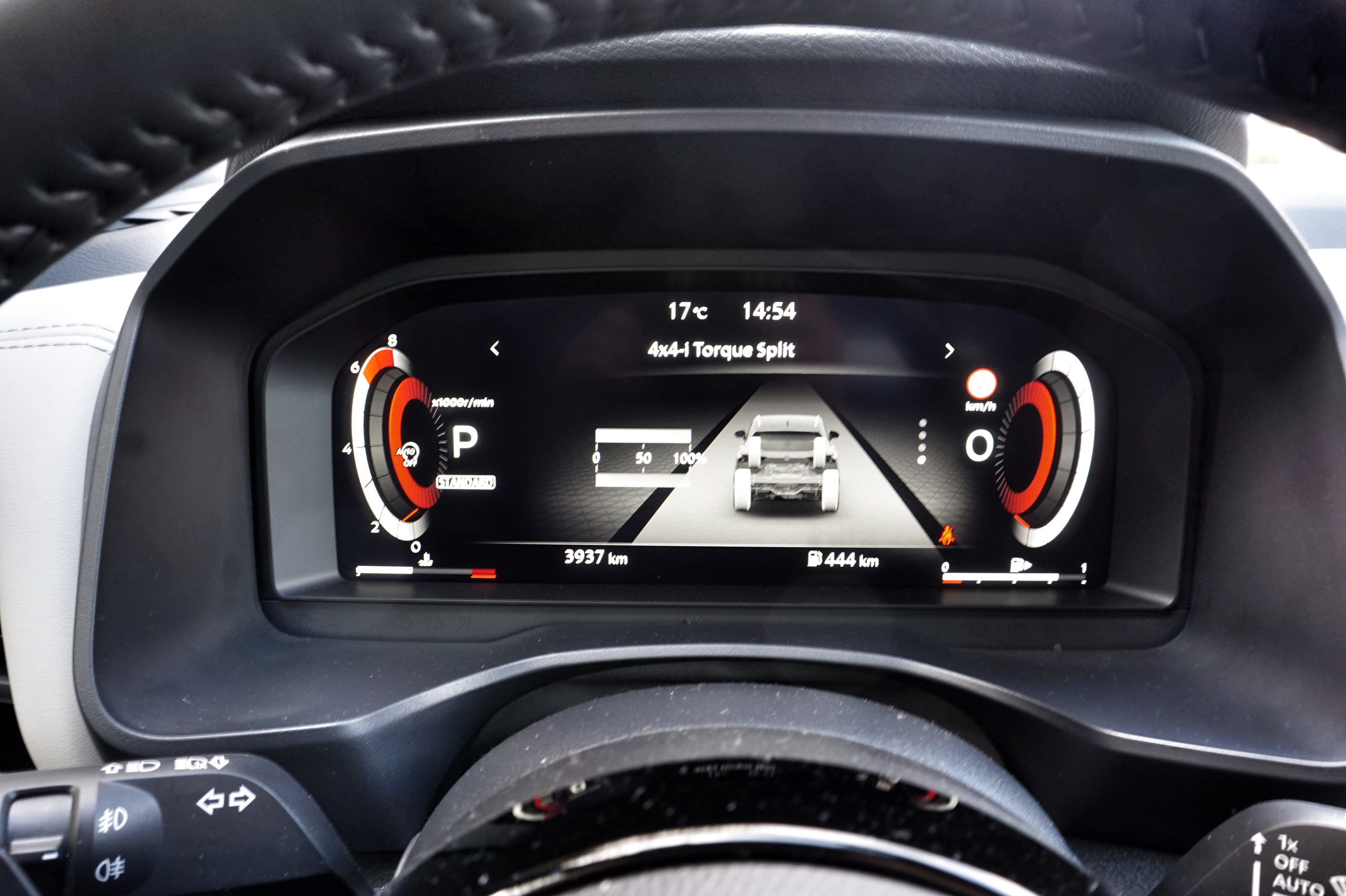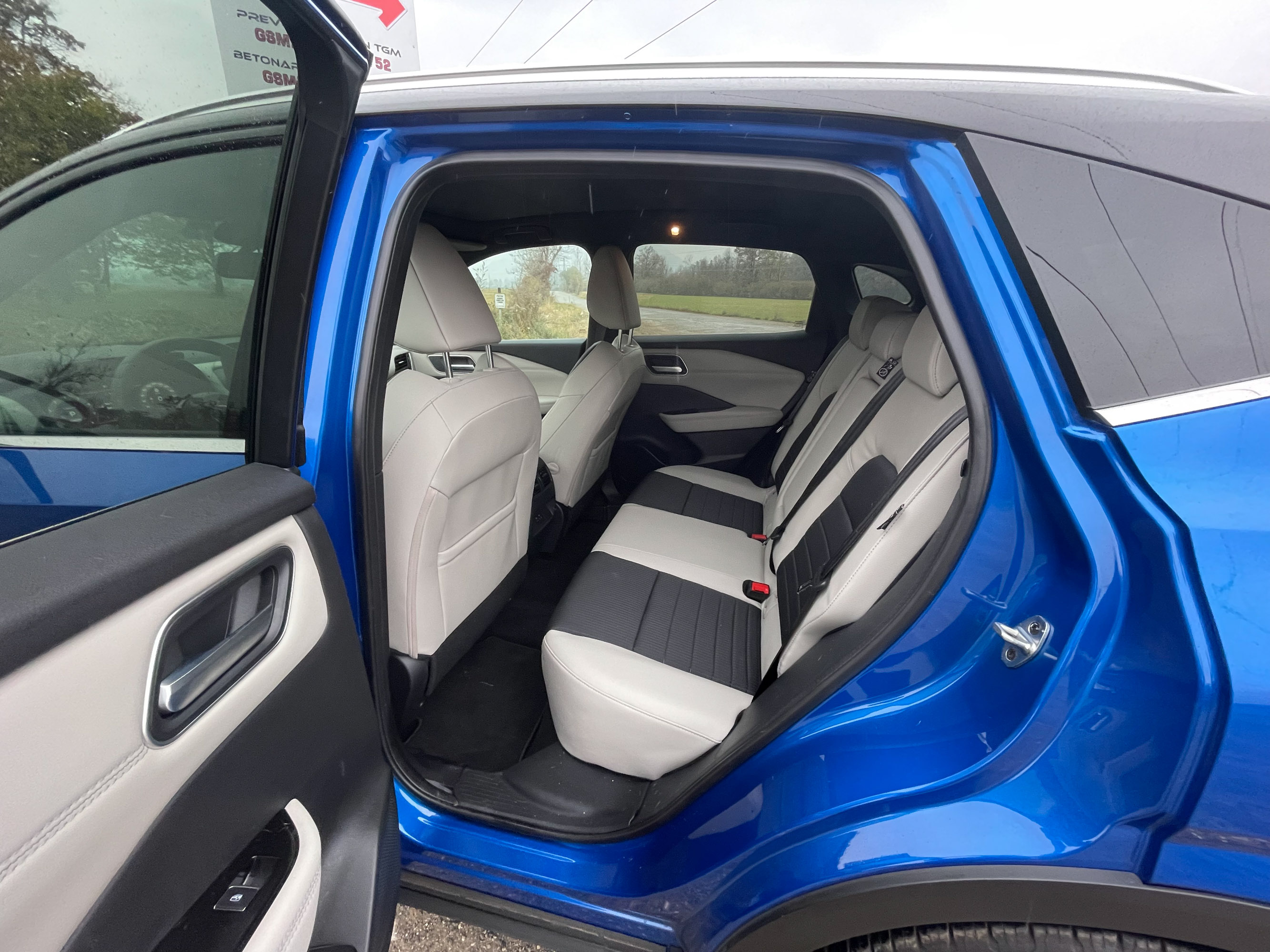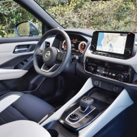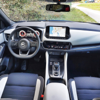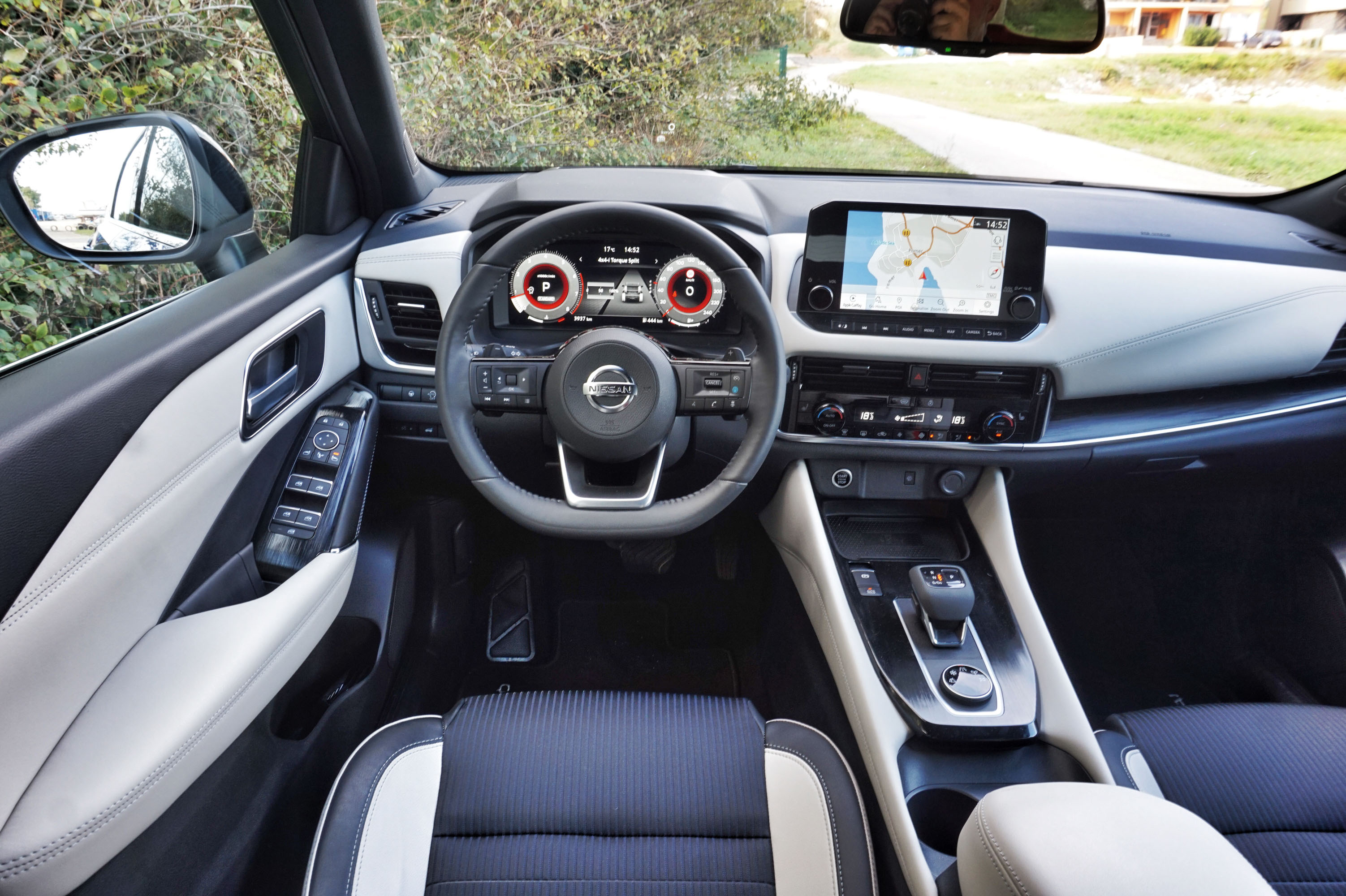 Velik korak naprej - ali vstran - so Nissanovi oblikovalci naredili pri obliki in zasnovi armaturne plošče; prostostoječ zaslon multimedijske naprave so pomaknili v gornji del armaturne plošče, pod njega vstavili gumbe in stikala klimatske naprave, merilnike zamenjali z zaslonom, vse skupaj pa obdali z na pogled in na otip prijetno obliko. Multimedijski sistem je temeljito povezan s svetom (tudi z brezžičnim sistemom carplay). Vozniška ergonomija je vzorna, digitalizacija je narejena na pravilen način in ne pleni (preveč) pozornosti. Presenečajo zelo soliden oziroma čvrst občutek kakovosti, ki smo ga vajeni iz prestižnejših avtomobilov in dobra prednja sedeža, ki sta v opremskem paketu tekna oblečena v prijetno ter všečno kombinacijo blaga in umetnega usnja. Tudi vidljivost vstran in naprej je dobra, nazaj pa jo ovira dokaj ozko steklo zadnjih vrat.