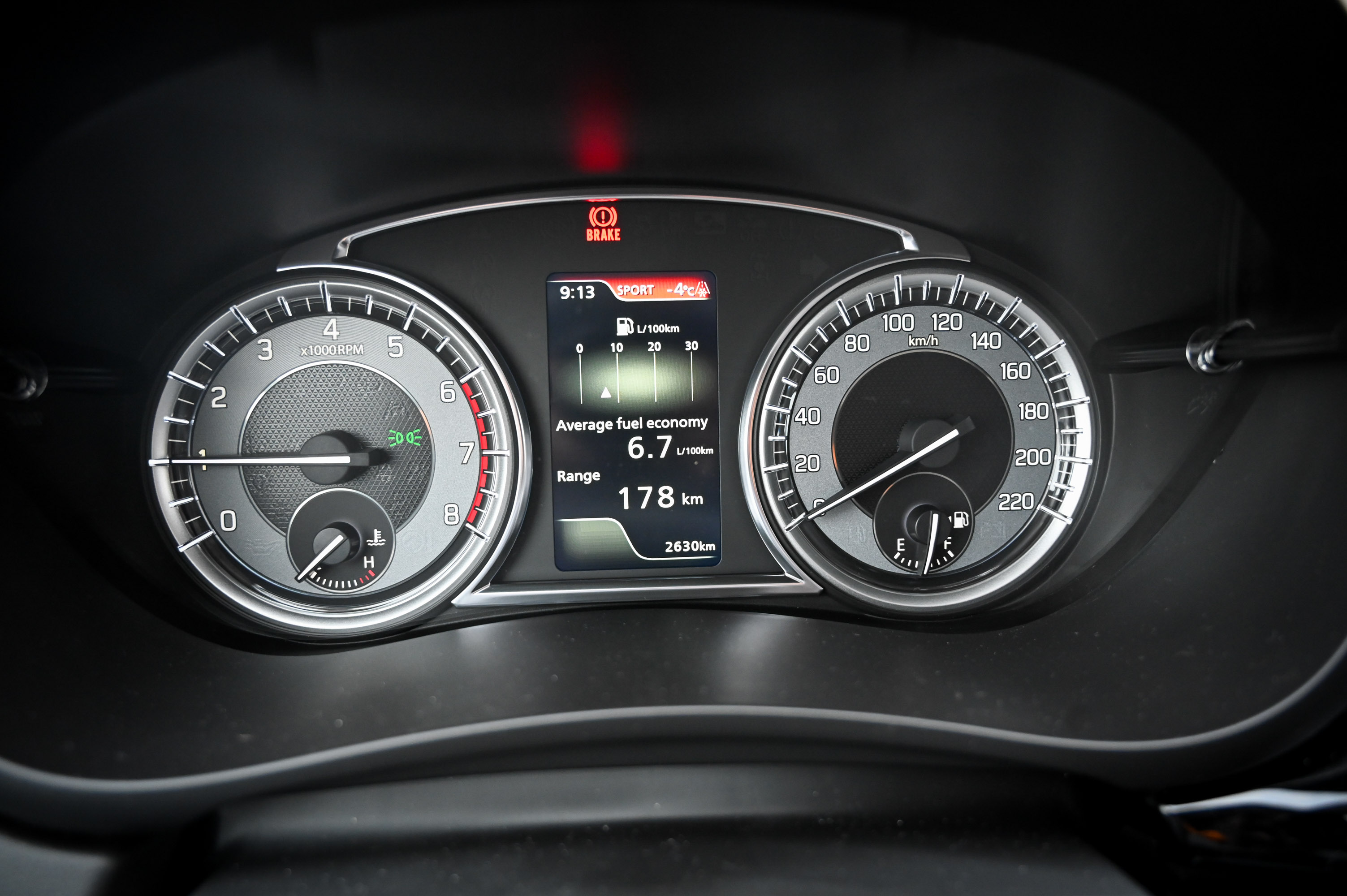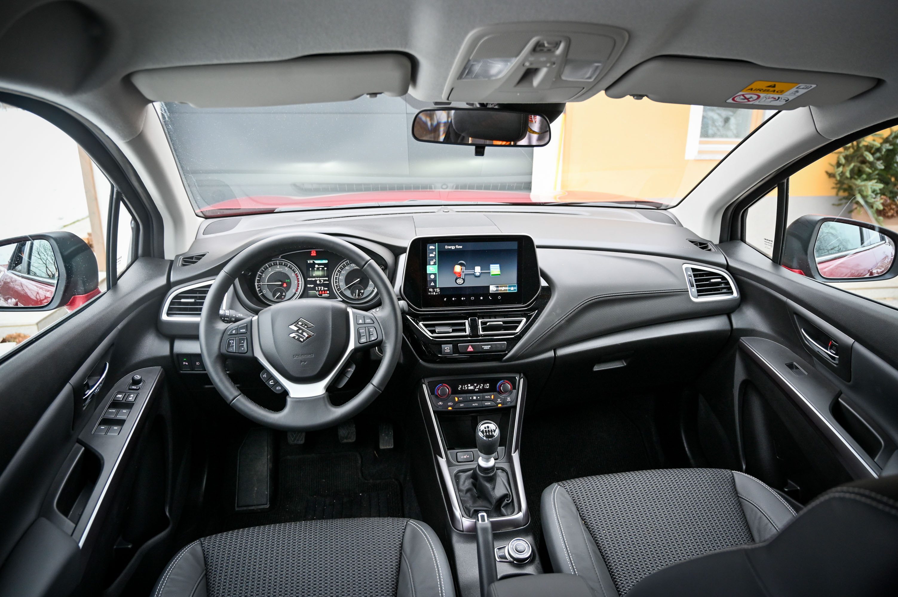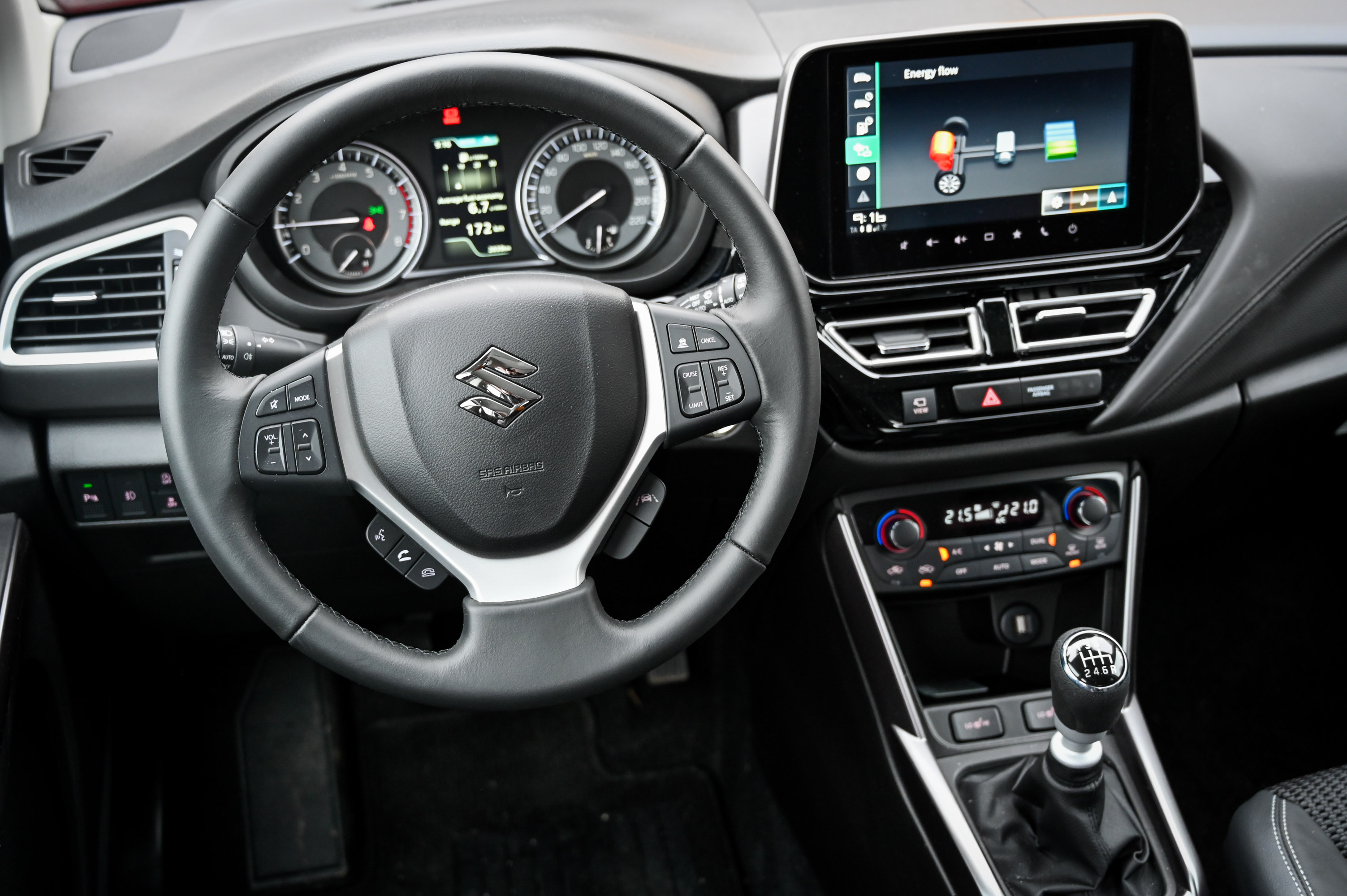 Za pogon še vedno skrbi preskušeni 1,4-litrski turbo bencinski motor, ki je iskriv, odziven in precej varčen. Z blago hibridno tehnologijo so mu v sodobnem svetu strogega preštevanja gramov v izpustih podaljšali življenjsko dobo. S kombinirano električno napravo - integriranim zaganjalnikom, ki je hkrati tudi generator - in dodatnim 48-voltnim litij-ionskim akumulatorjem je motor dobil pomoč dodatnih 15 Nm navora, ki je na voljo v nižjih vrtljajih pred vklopom turbine. Ta naprava z rekuperacijo zagotavlja tudi elektriko za sekundarne porabnike. Pomoči elektrike voznik ne občuti ne na cesti in tudi v denarnici ne. Zniževanje izpustov je namreč bencinskemu izvirniku vzelo 10 “konjev” moči in dodalo blagi električni sunek navora, ki pa se ne pozna v vožnji. Poraba goriva glede na zmogljivosti in stalni štirikolesni pogon ostaja zelo zmerna: 6,5 litra na 100 kilometrov smo v povprečju porabili na testu. Smo pa pri japonskih izdelovalcih vajeni svilnato uglajenih in natančnih pomikov ročice pri ročnem menjalniku. No, v S-crossu je menjalnik za odtenek bolj robusten …
