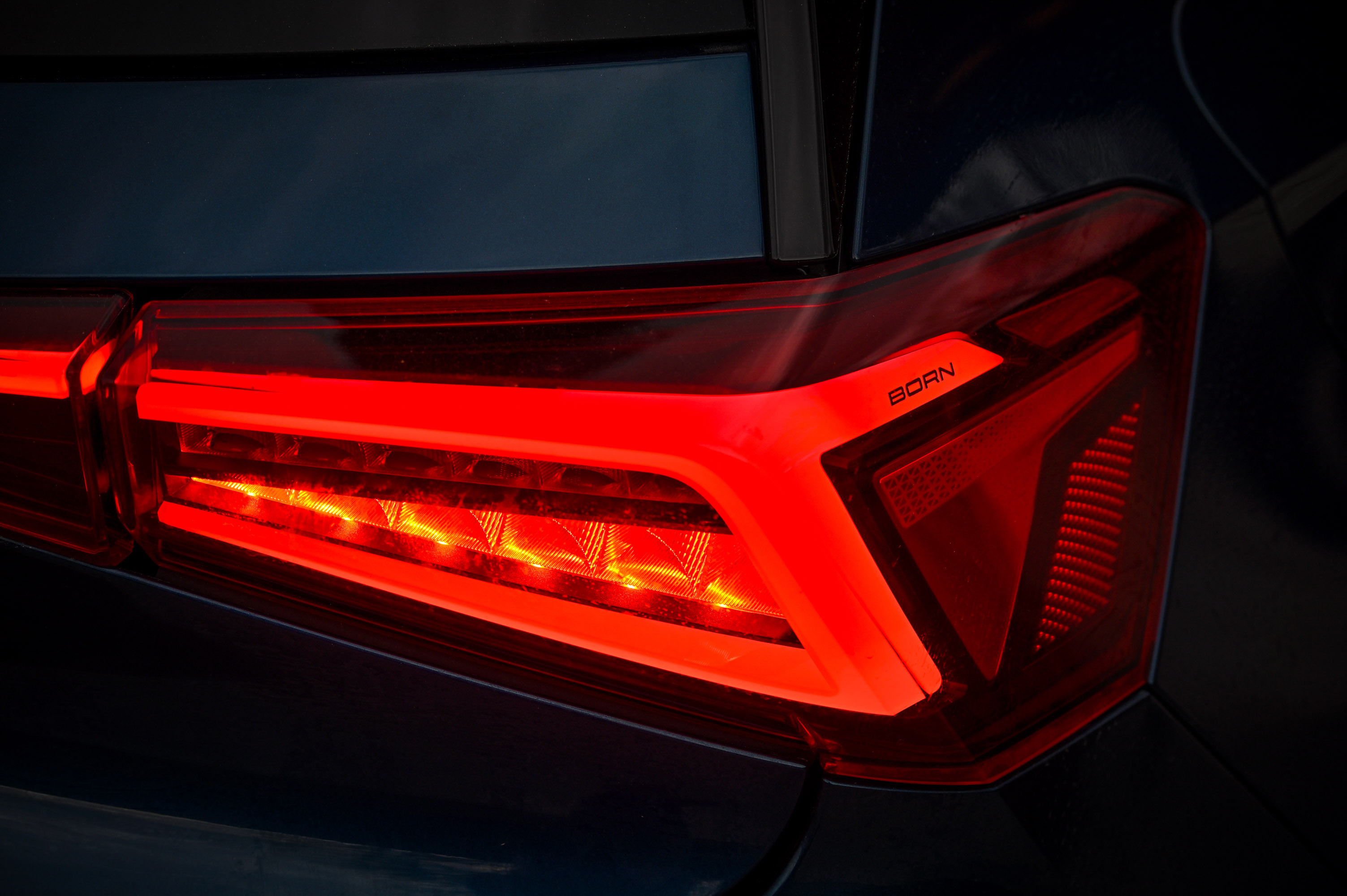 Pri oblikovanju izstopajo zelo športna maska, aerodinamični pragovi in luči zadaj, ki žarijo čez celotno širino avtomobila. Ostre linije krasijo še tridimenzionalni vzorci na širokem C stebričku, bakreni odtenki aerodinamičnih elementov in velik difuzor. Bornov vizualni nastop je močan. Ko ga vidiš, si ga zaželiš peljati. To je največja pohvala oblikovalcem.