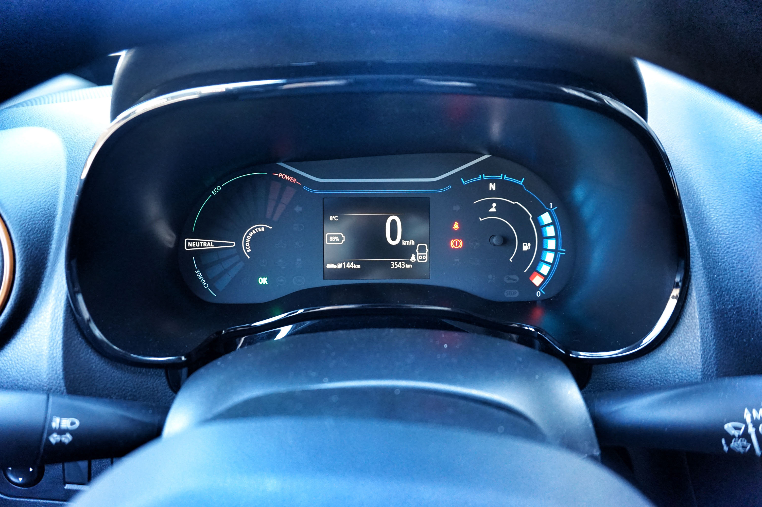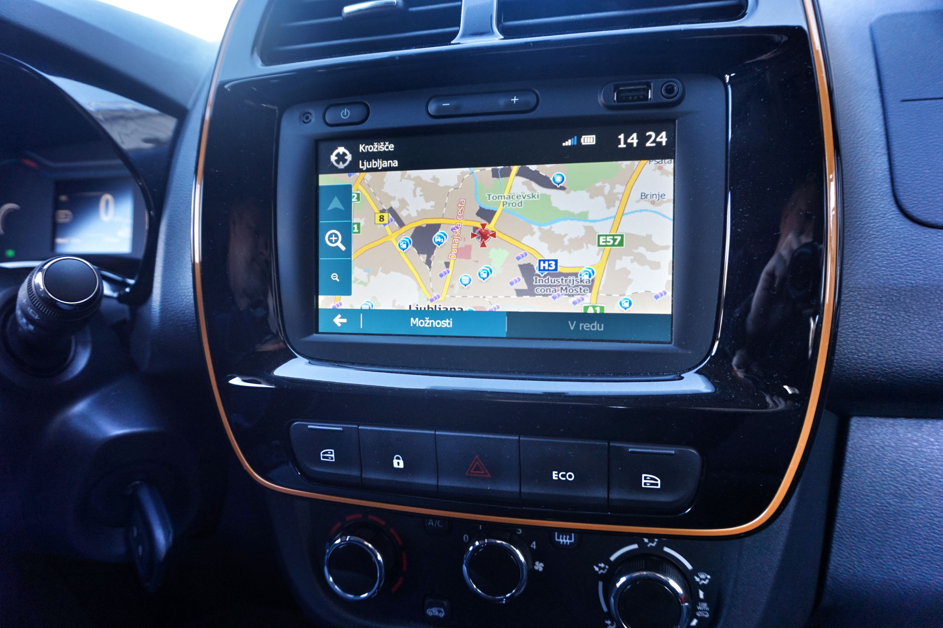 Pri upravljanju in multimedijskem sistemu spring ponuja domače Daciino in Renaultovo okolje: na sredini armaturne plošče je zaslon preproste multimedijske naprave R-link, pod njim so stikala gretja in zračenja, pod nadstreškom armaturne plošče pa je kombinacija svetlobnih prikazov in monokromatskega zaslona z vsemi za vožnjo potrebnimi podatki vključno s podatkom o napolnjenosti akumulatorskega sklopa in dokaj natančnim prikazom dosega. Zaradi majhne širine in zato ozkih vrat stikali za odpiranje stekel najdemo pod zaslonom multimedijske naprave …