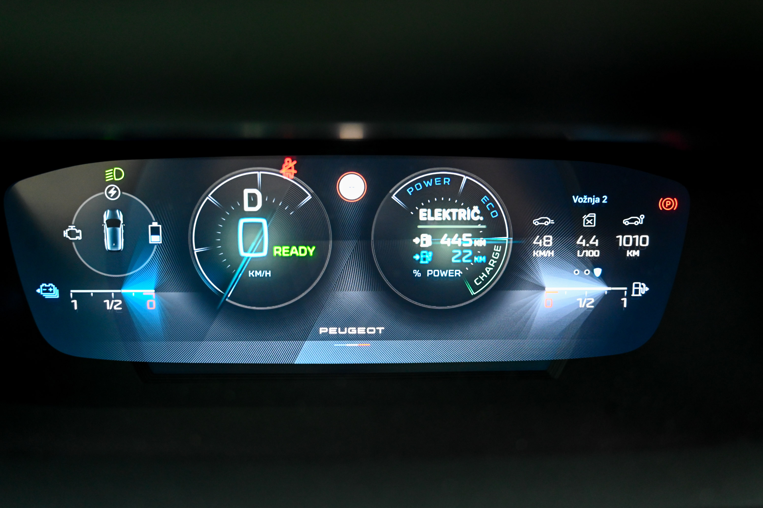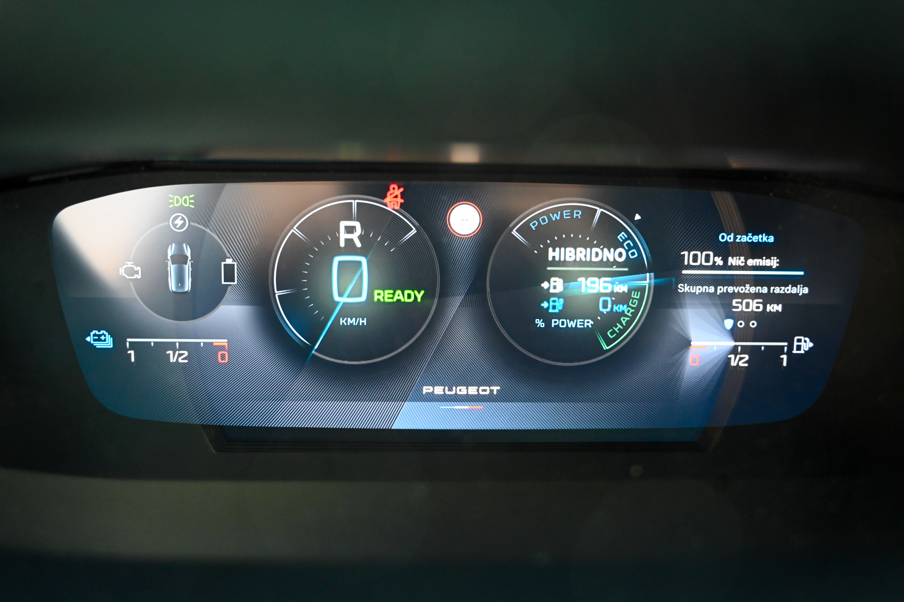 Še bolj kot z odzivnostjo hibridni pogon navduši z učinkovitostjo. Na testu smo dosledno uporabljali dodatnih 500 evrov vreden 7,4-kilovatni polnilnik, ki na polnilnici zalogo elektrike obnovi prej kot v dveh urah. Zato smo na testu v povprečju porabili vsega 3,8-litra goriva na 100 kilometrov, ob tem pa naj povemo, da tudi pri dinamičnem uživanju med ovinki in veliko avtocestnimi kilometri poraba bencina nikoli ni presegla 4,5 litra na 100 km. Ta pogon predstavlja dober kompromis tudi za vse, ki živijo v stolpnicah in razmišljajo o električnem avtomobilu. S polno zalogo elektrike smo prevozili 51 kilometrov, kar pomeni, da je v tišini in uglajenosti električnega pogona mogoče opraviti vse dnevne kilometre povprečne slovenske družine. Upoštevajoč popuste, ki jih zastopnik ponuja pri nakupu s financiranjem, je za tako opremljenega peugeota treba odšteti 38.596 evrov. Ni malo, a za ta denar avto ponuja veliko opreme, varnosti, lepote in uporabnosti. Nenazadnje v njem voznik dobi družinski električni avto in športno zmogljivo kombilumuzino, ki porabi manj goriva kot najbolj varčen dizel.