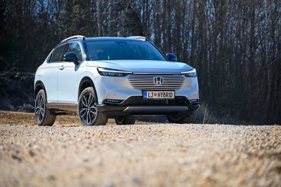 Hibridno hondo HR-V poganja zmogljivejša različica električno samooskrbnega hibridnega pogona, ki smo ga že preskusili v crosstarju. V pogonski sestavi sodelujejo 1,5-litrski bencinski štirivaljni motor, generator in 96-kilovatni električni motor. Bencinski motor se neposredno vključi v pogon koles le pri višjih hitrostih, sicer pa poganja generator, ki zagotavlja energijo električnemu motorju. Moč in navor se na kolesa prenašata preko brezstopenjskega e-CVT menjalnika, ki ima tudi dodatno prestavo B za okrepitev rekuperacije pri daljših spustih. Kljub razmeroma živahni odzivnosti pogona se pri pospeševanjih pozna, da je tokrat Honda učinkovitost postavila postavila pred vozniško dinamiko. V teoriji lahko HR-V pri nižjih mestnih hitrostih do 90 odstotkov razdalje prevozi na elektriko, ko bencinski motor deluje v najbolj učinkovitem območju vrtljajev za pogon generatorja. Poraba goriva se v gostem prometu brez večjih težav spusti pod 4,5 litra na 100 prevoženih kilometrov. Na testu smo v povprečju na 100 km porabili le deciliter več (5,5 l) kot WLTP meritev povprečne porabe oziroma dva decilitra manj, kot smo porabili na testu honde HR-V druge generacije z 1,6-litrskim dizelskim motorjem. Ob tem velja poudariti, da smo dobršen del voženj opravili po avtocestah.