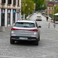 Na pogled, po občutkih za volanom in na cesti je električni EQA pravi mercedes, ki z odlično uravnoteženim podvozjem suvereno obvladuje cesto in tudi pri dinamični vožnji prepričljivo skriva dobri dve toni teže. Hipna dostava 375 Nm navora na prednji kolesi omogoča suvereno in zelo zvezno pospeševanje. Na mokri cesti ima z brzdanjem navora kar nekaj dela sistem za nadzor zdrsa.