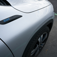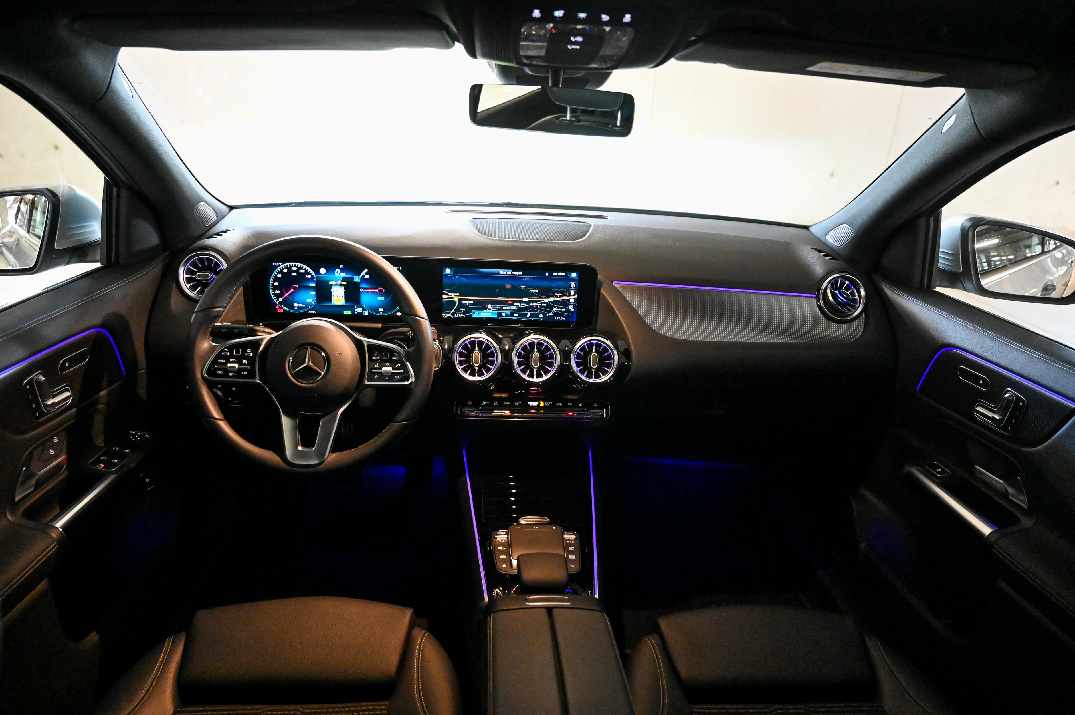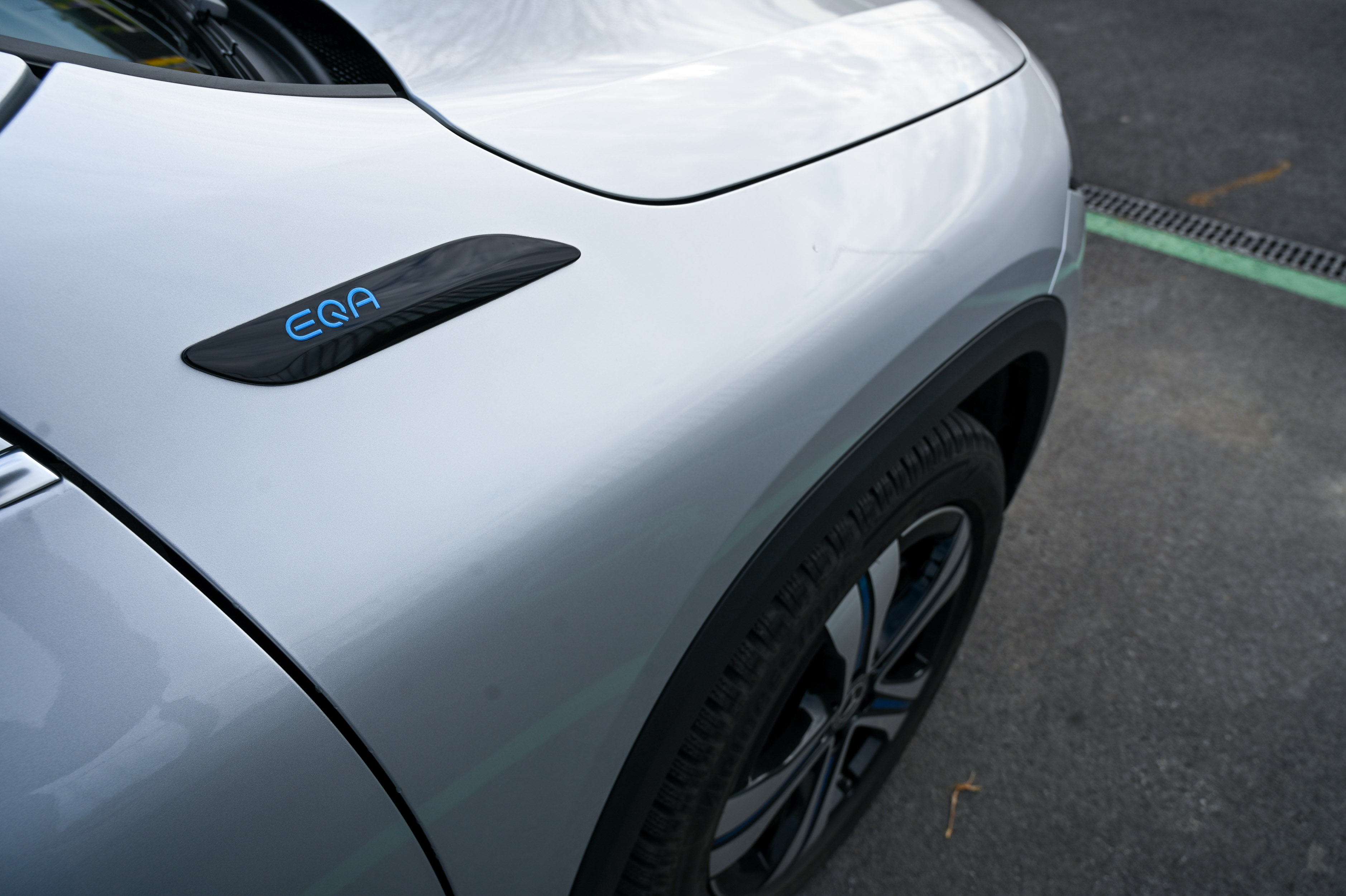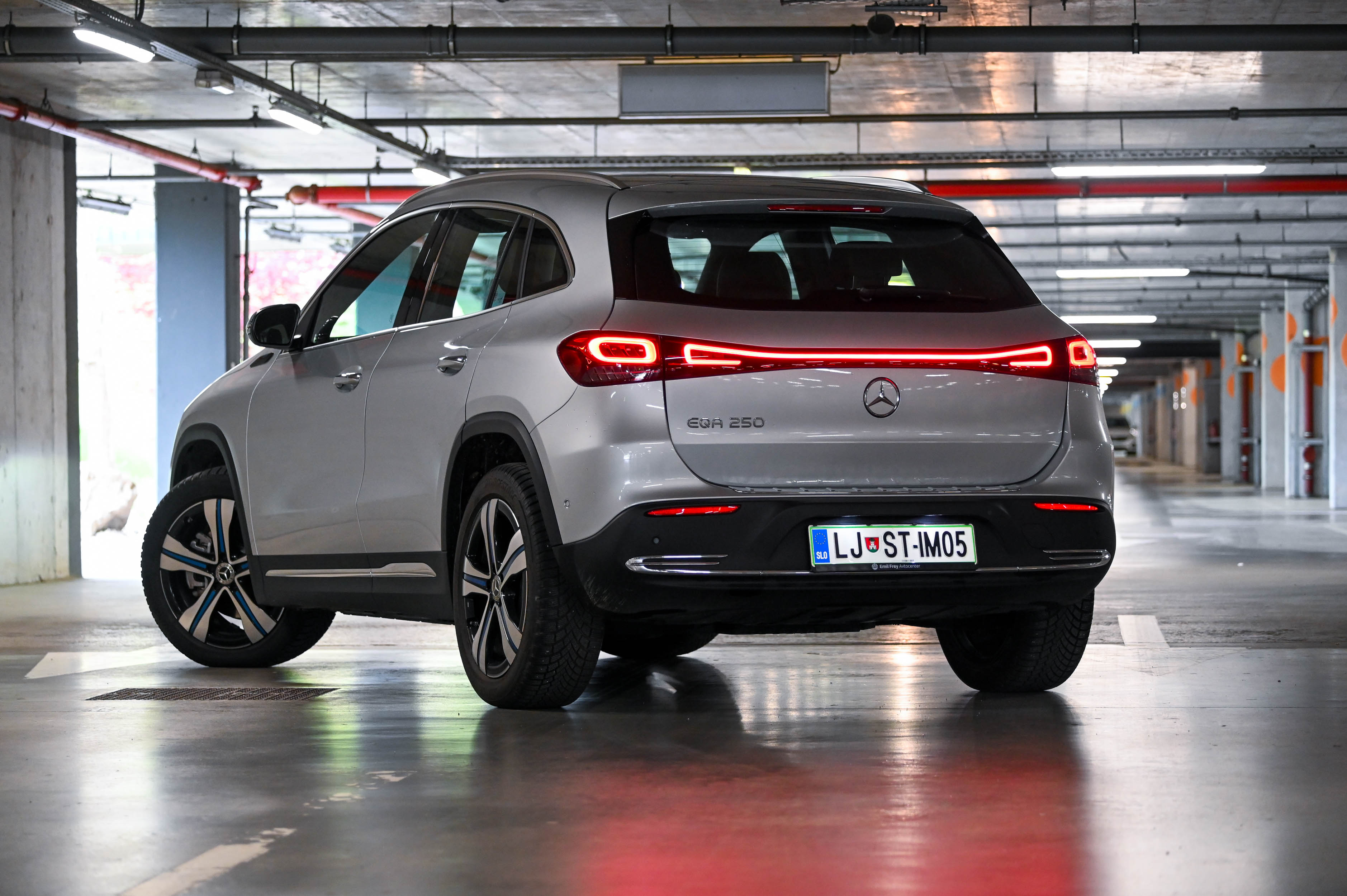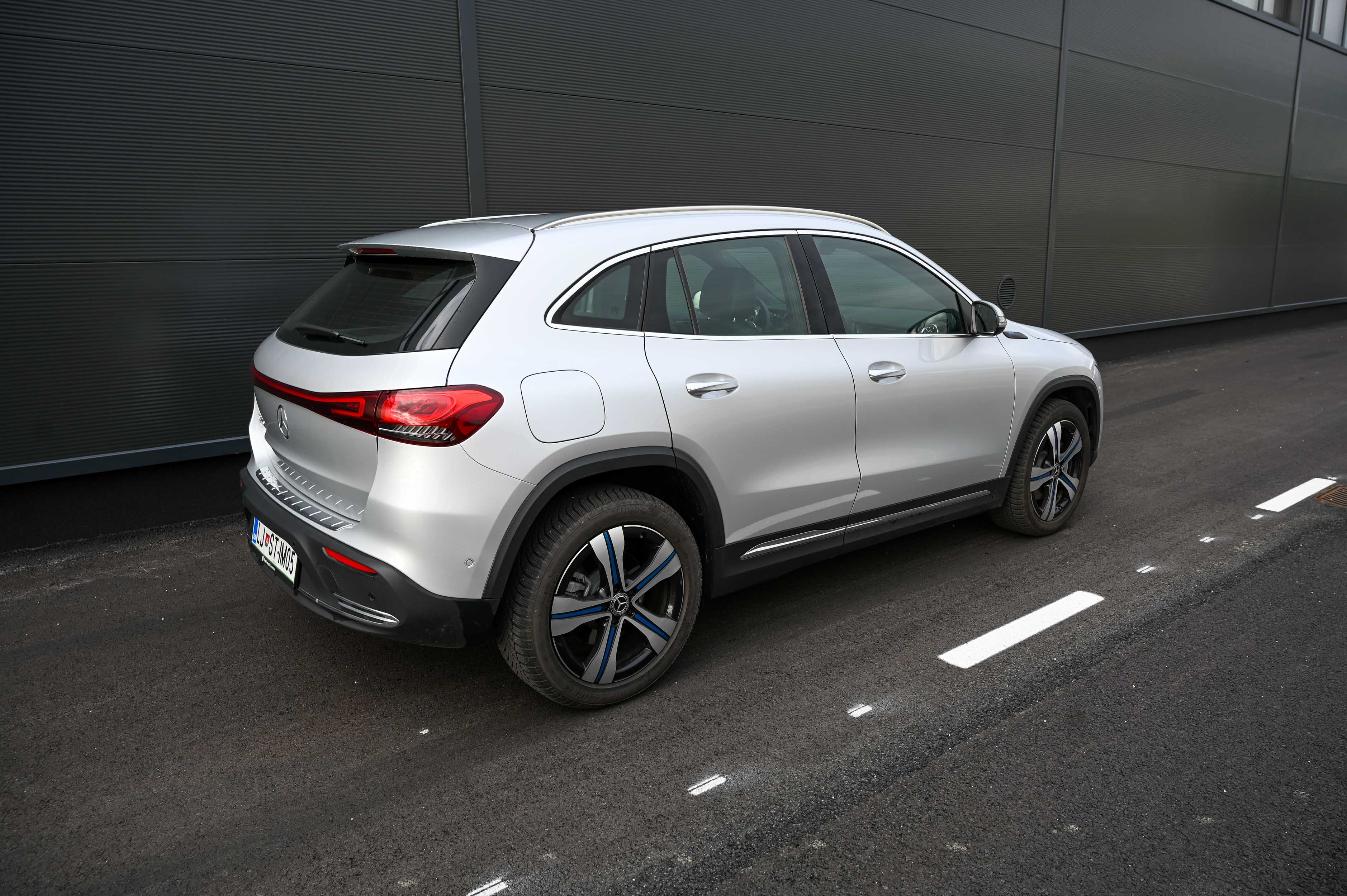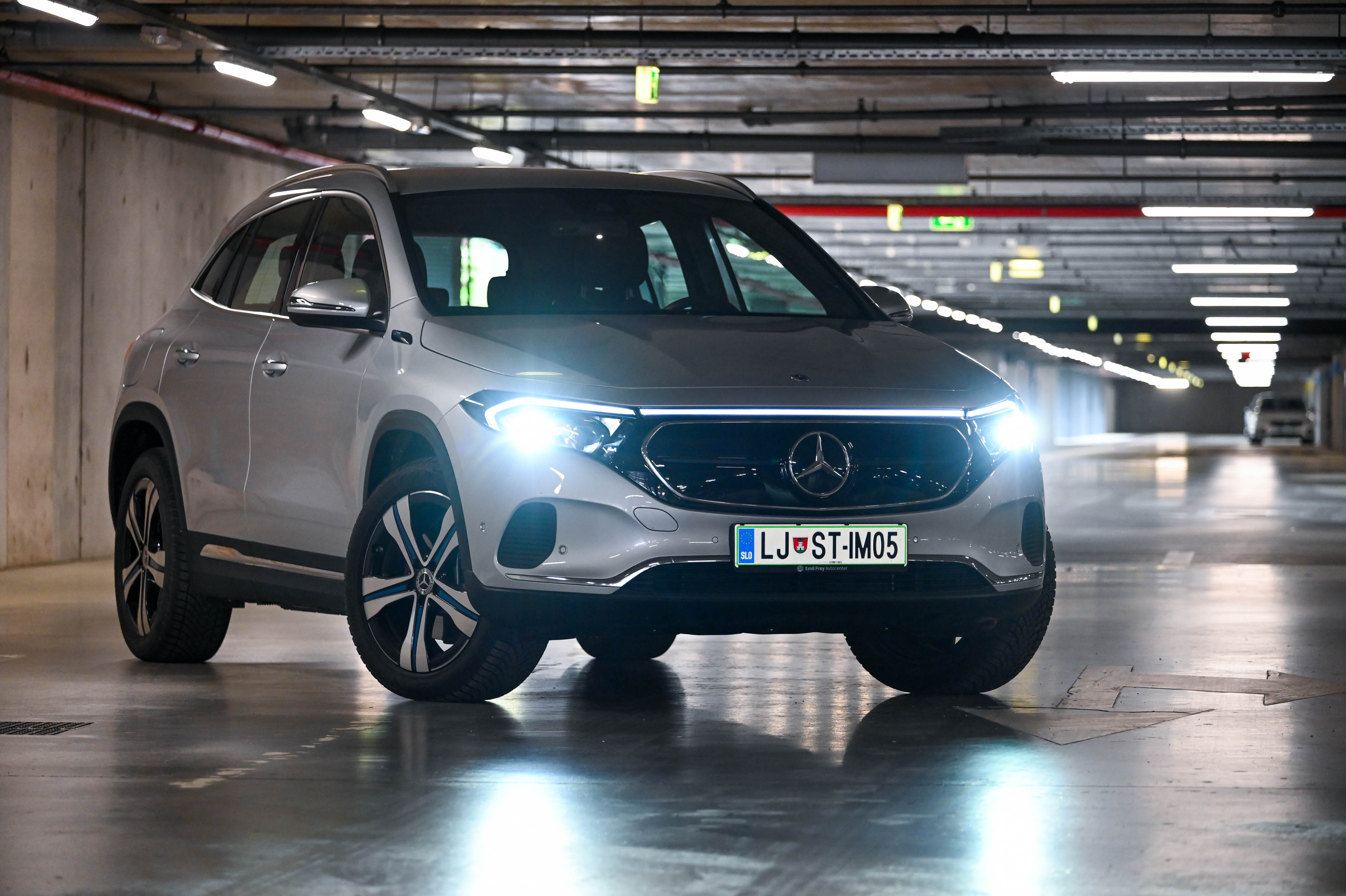EQA eleganco električnega pogona dopolnjuje tudi s podobo. Karoserija je povsem brez ostrih robov, maska je zgoraj obrobljena s svetlobnim LED trakom, ki povezuje odlično prilagodljiva žarometa. Eleganten svetlobni podpis, ki se razteza skozi celotno širino električno pomičnih prtljažnih vrat, oblikovno plemeniti tudi zadnji del avtomobila in daje vedeti, da spada v električno družino EQ. Svetloba pomembno vlogo igra tudi v notranjosti, kjer diskretna prostorska osvetlitev s sprotnim prilagajanjem barvnih odtenkov sporoča izbrani vozni program in celo nastavljeno temperaturo - ob vklopu gretja zračniki zažarijo v rdeči svetlobi oziroma modri ob hlajenju. Pohvalimo tudi zelo dober sedežni položaj, preglednost in udobno vstopanje v avto oziroma izstopanje iz njega. Prostora na zadnji klopi je dovolj za dva odrasla.