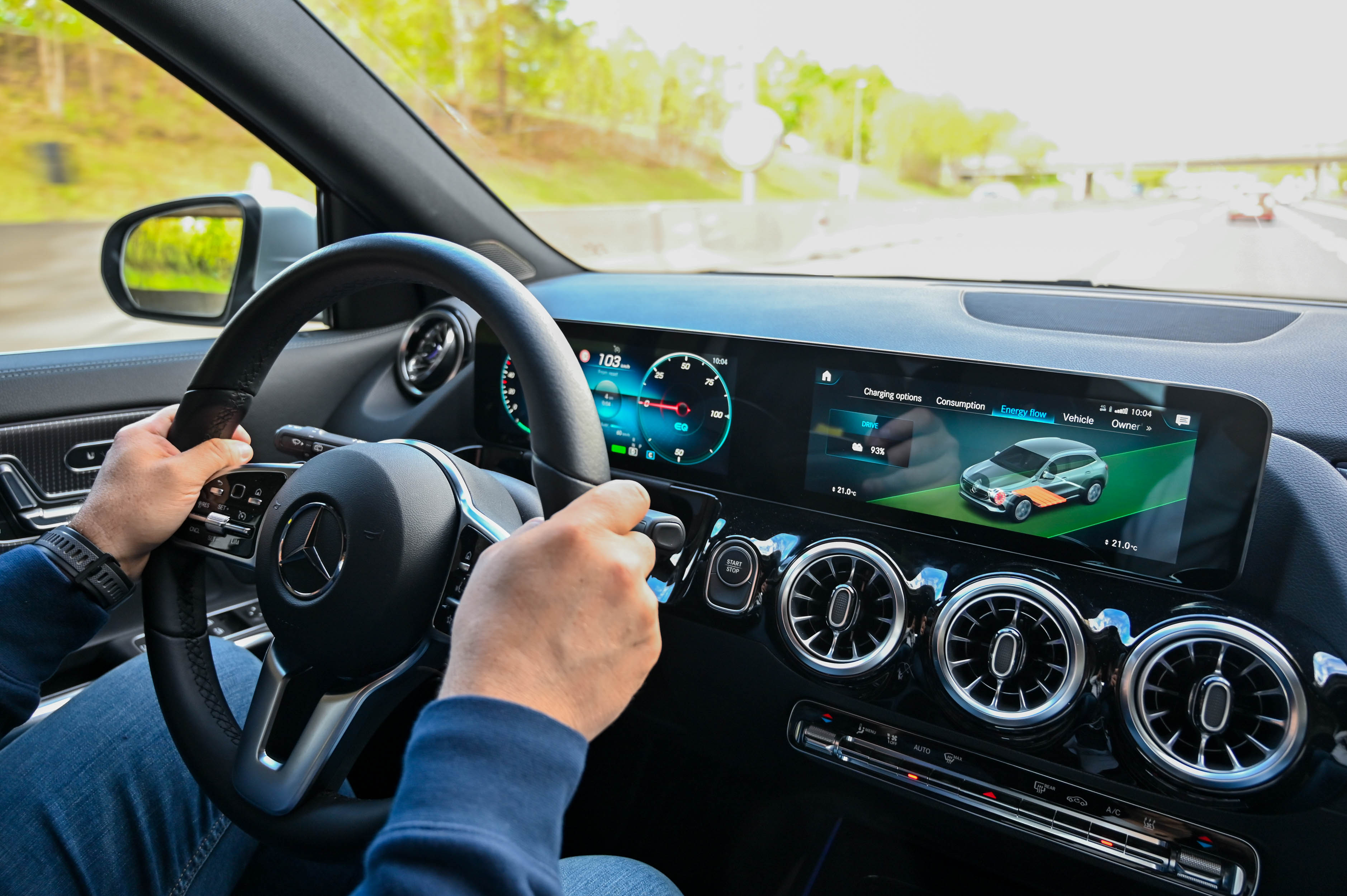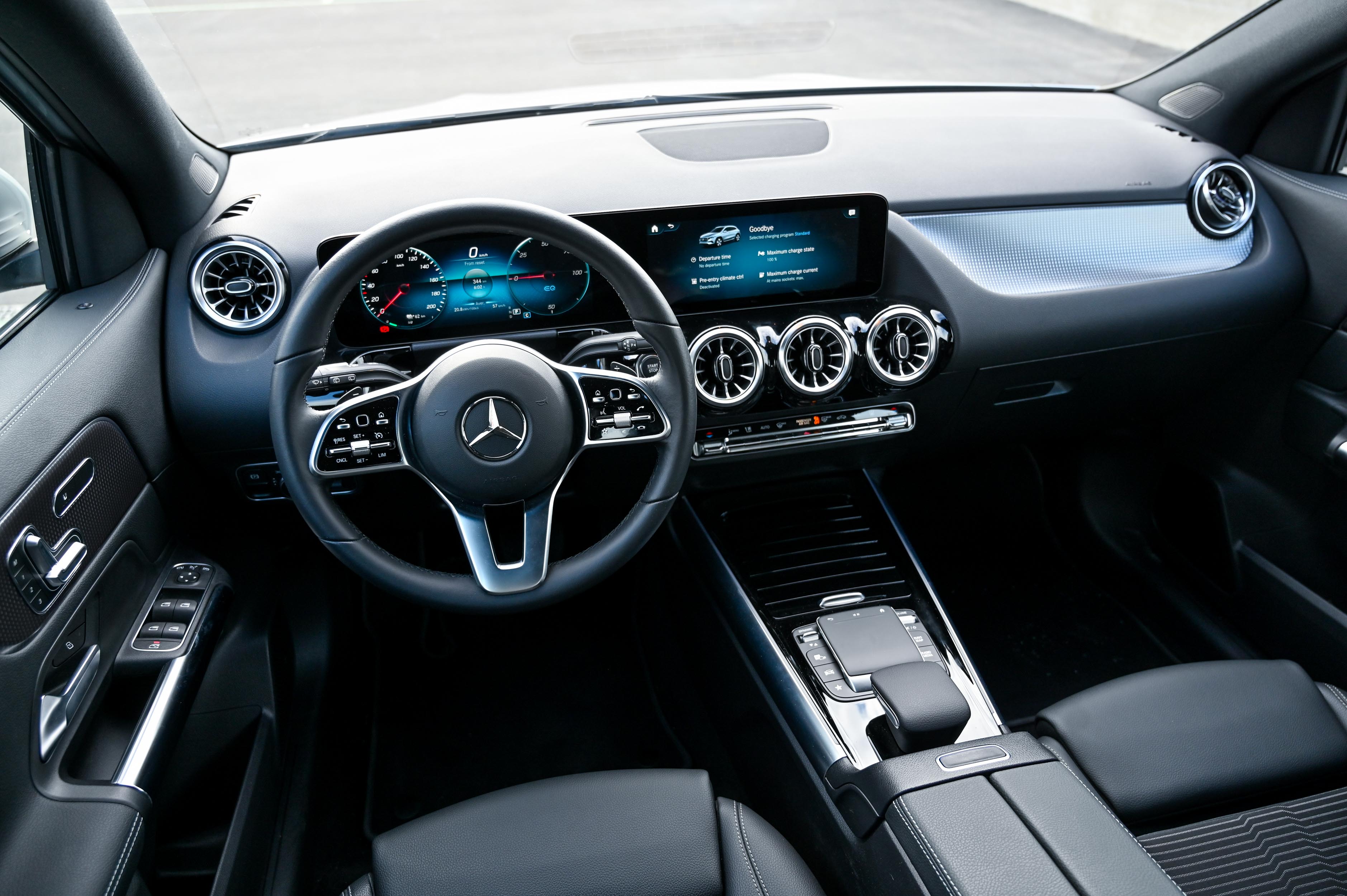 Takoj, ko voznik začne uživati v njegovi lahkotni vodljivosti, iskrivosti in natančnosti, ga na realna tla postavi doseg. Kljub razmeroma zmogljivi električni shrambi (66,5 kWh), ki smo jo z vgrajenim DC polnilnikom polnili celo s 108 kW moči, kar je celo malce več, kot navajajo (100 kW) v tehničnih podatkih, smo na testu z 90 odstotki razpoložljive elektrike prevozili le 296 km. Če bi povsem izpraznili kar 480 kilogramov težak litij-ionski akumulatorski sklop s petimi moduli, v katerih je 200 celic, bi prevozili 329 kilometrov. To je 97 kilometrov manj od obljubljenega povprečnega dosega po merilnem ciklu WLTP. Veliko smo se sicer vozili tudi po avtocesti, a ne z najvišjo dovoljeno hitrostjo, saj potem povprečna poraba hitro poskoči tja proti 25 kWh na 100 kilometrov. Ob tem velja izpostaviti, da so se oblikovalci precej potrudili z optimizacijo aerodinamike, saj EQA zračne tokove usmerja zelo učinkovito in ima za cestnega terenca zelo dober količnik zračnega upora - 0,28. To se izkazuje tudi z res zavidljivim zvočnim udobjem, saj je tudi pri višjih hitrostih avto zelo tih. (Pre)velika poraba električne energije je zagotovo najšibkejši člen tega avtomobila tudi v primerjavi z nekaterimi najsodobnejšimi tekmeci. Cenejši in večji, a tehnološko zelo napreden hyundai ioniq 5, ki smo ga testirali pri podobnih temperaturah, je v povprečju porabil 18,2 kWh na 100 kilometrov, kar nekaj manj od porabe 20,2 kWh z EQA.