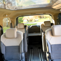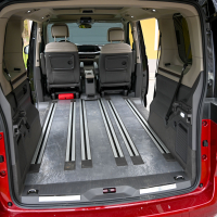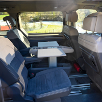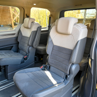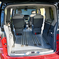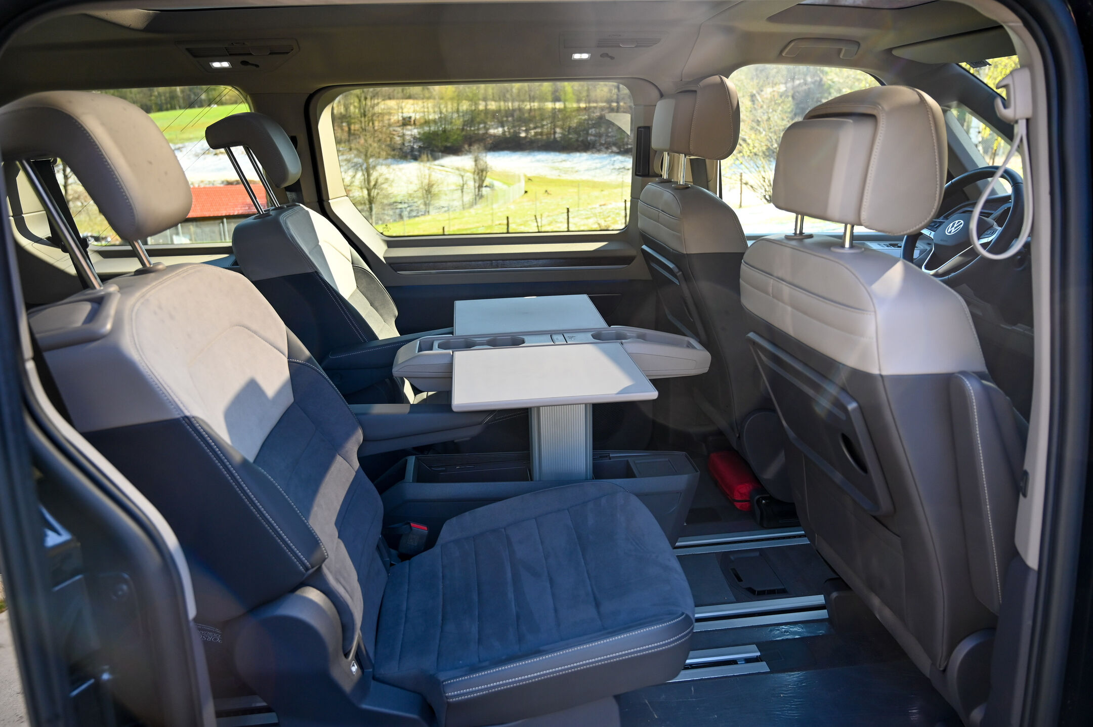 Pri praktičnosti in uporabnosti velja izpostaviti nov, precej enostavnejši sistem vpenjanja posameznih sedežev, ki bistveno poenostavi prilagajanje tlorisa glede na zahteve potnikov oziroma prtljage. Testni multivan je v osnovi 6-sedežnik s potniškim tlorisom 2-2-2 in prostim sredinskim prehodom po celotni dolžini avtomobila. Sedeža v drugi vrsti nista več vrtljiva, ju je pa mogoče hitro odstraniti in obrniti. Premikanje sedežev v treh nizih tirnic je res enostavno opravilo. Sedeže druge in tretje vrste je mogoče odstraniti ali prilagoditi njihovo postavitev v vsega petih minutah brez pomoči dodatnega para rok.